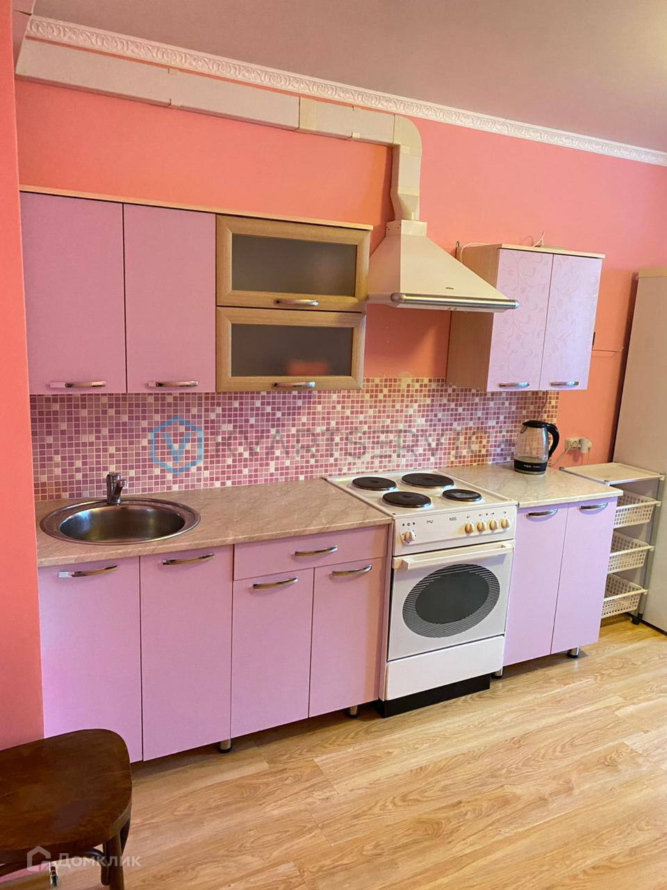 Квартира полностью оборудована для проживания. Остаётся удобная встроенная кухня, электроплита. В ванной установлена сантехника, душевая кабина.