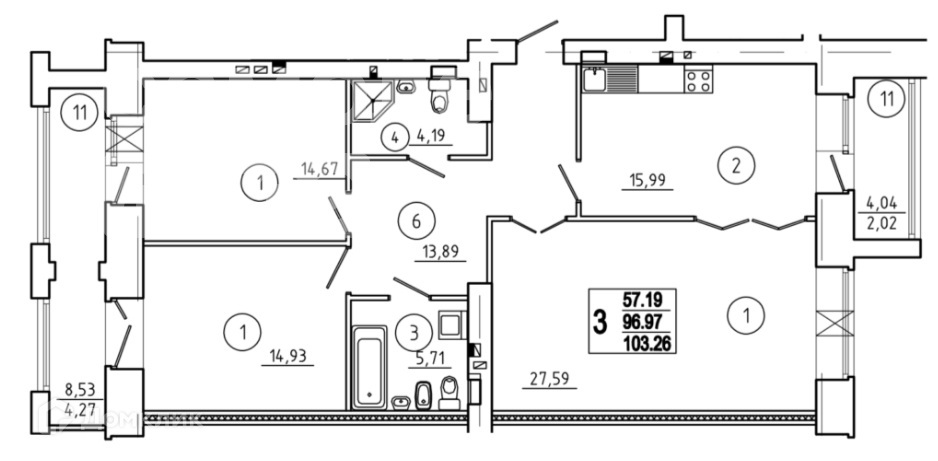 Общая площадь 102.3 м2