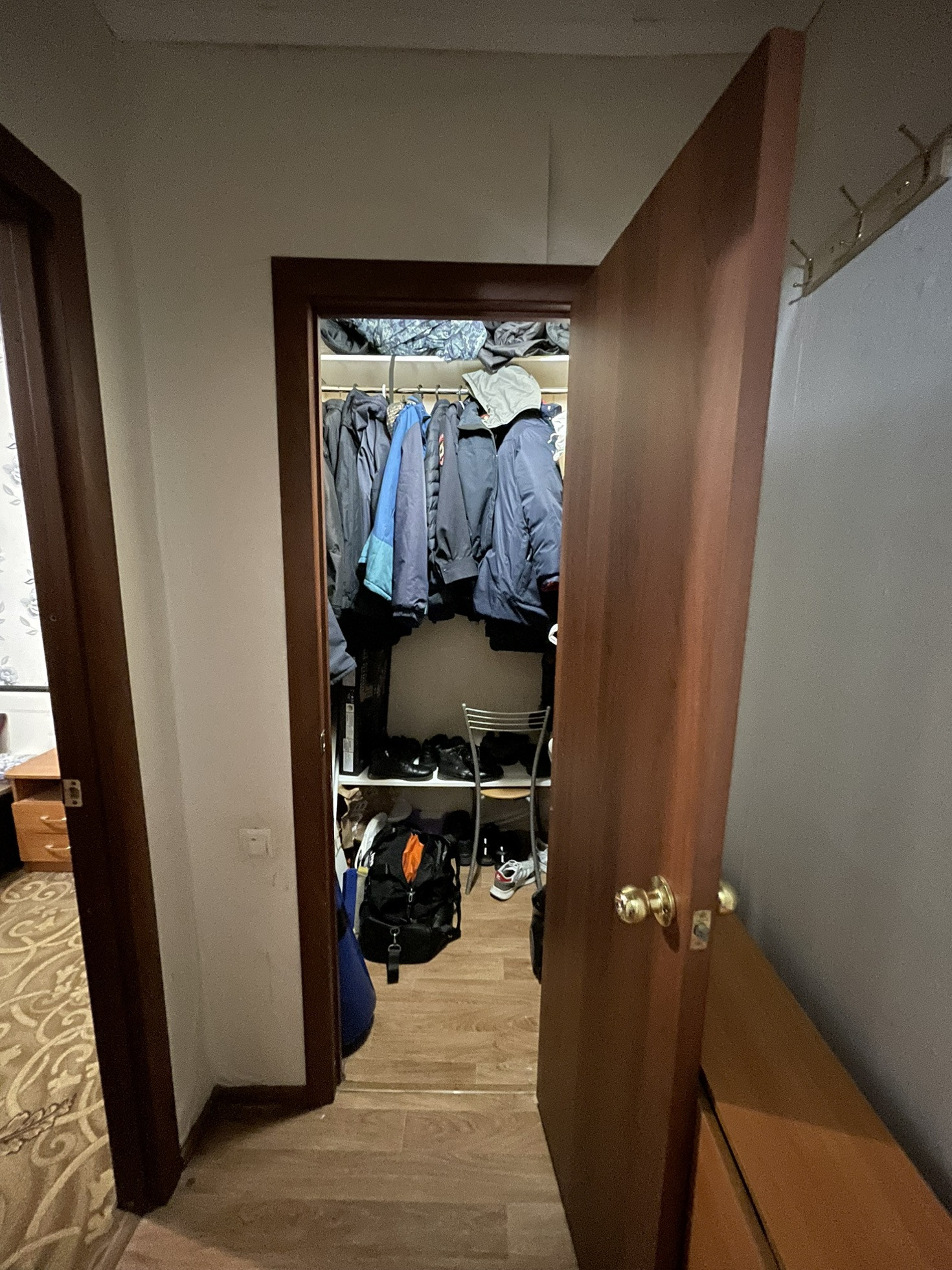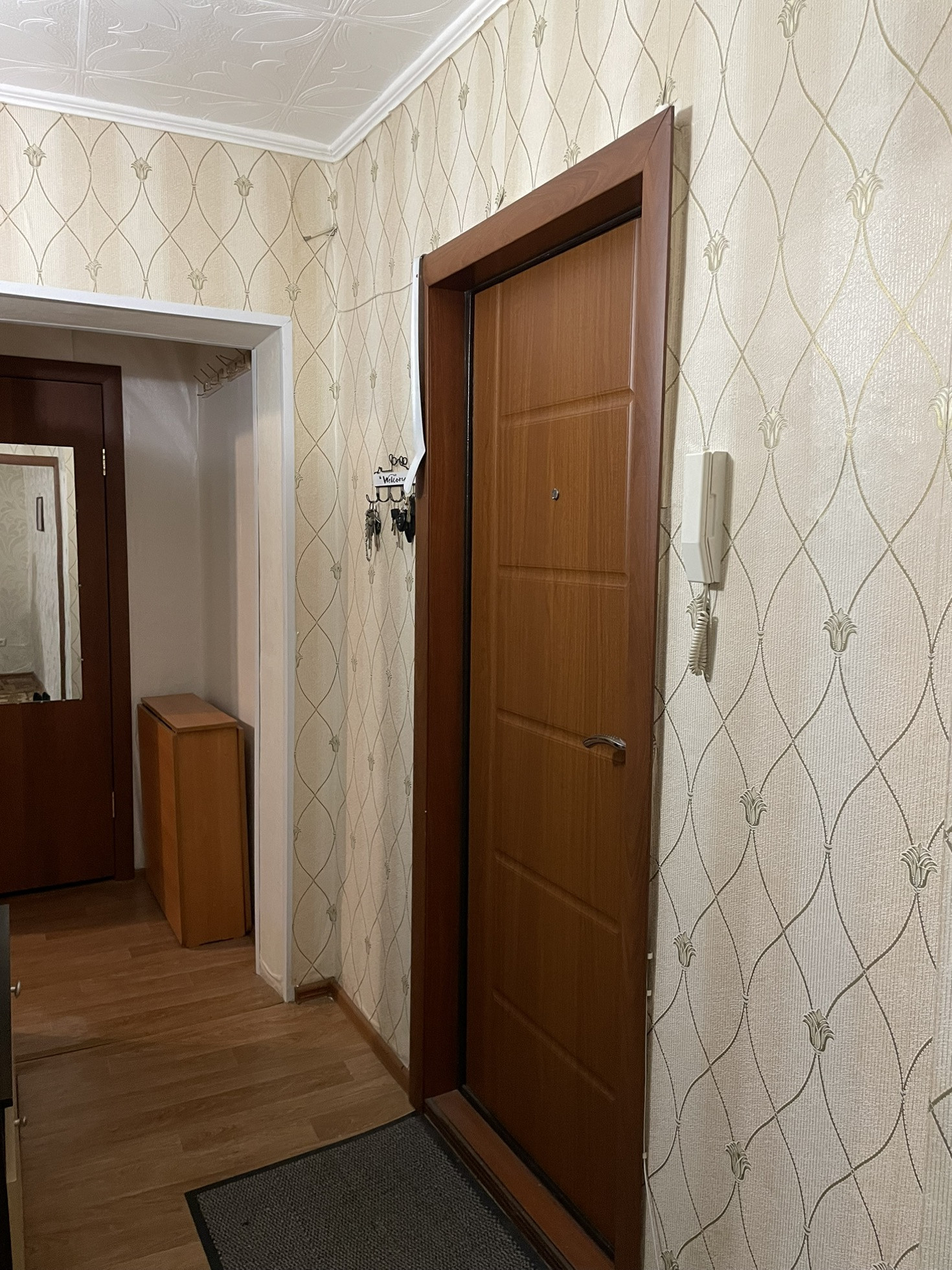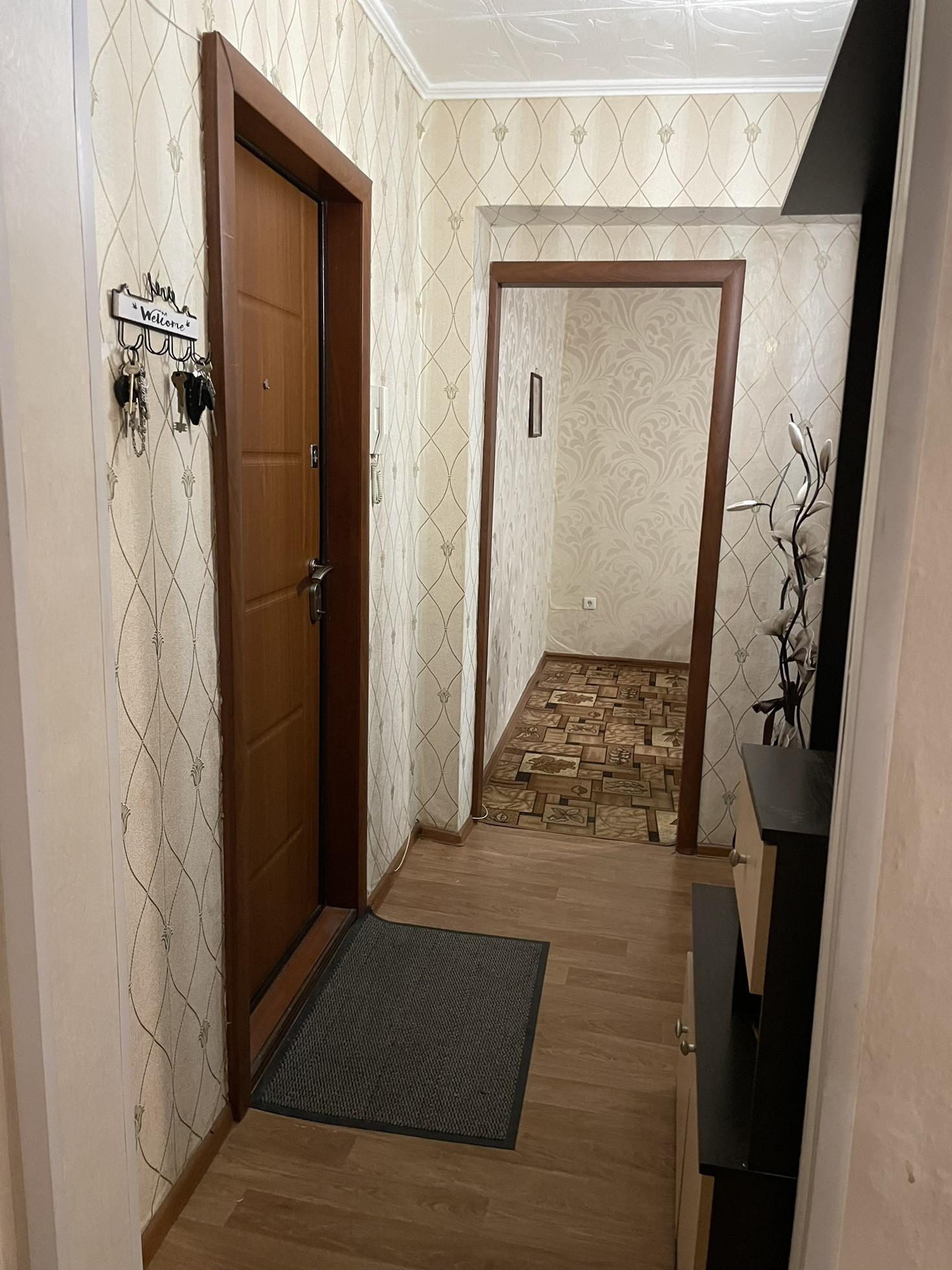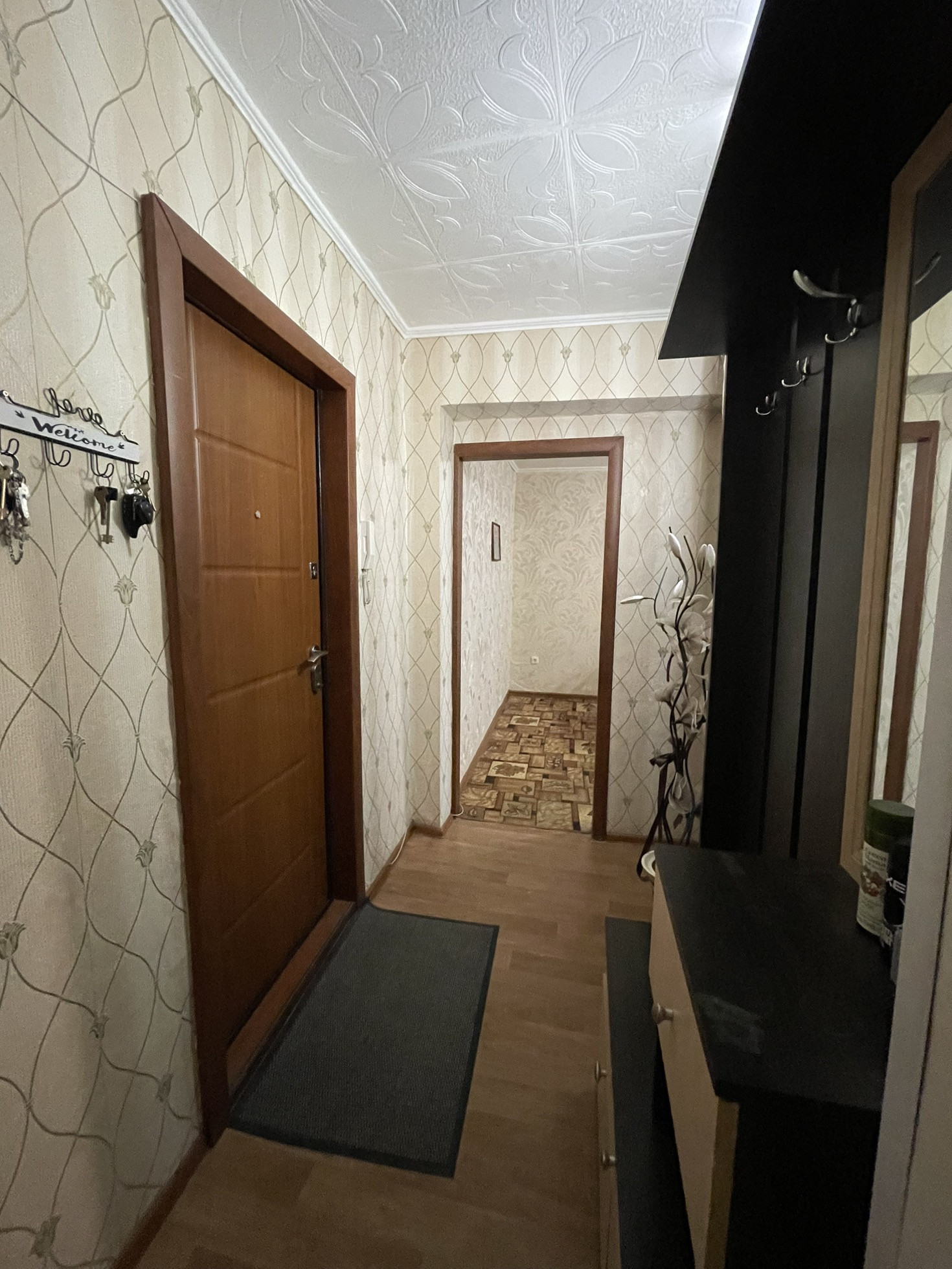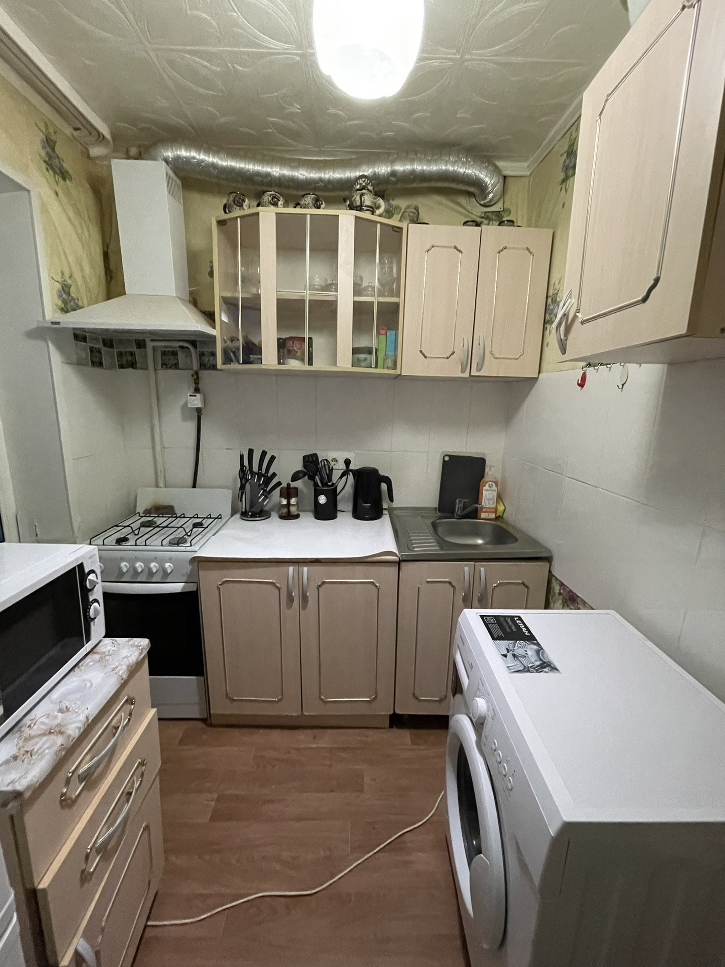 При продаже остаётся кухонный гарнитур, газовая плита, кровать, прикроватные тумбы, косметический стол, коридорный шкаф.