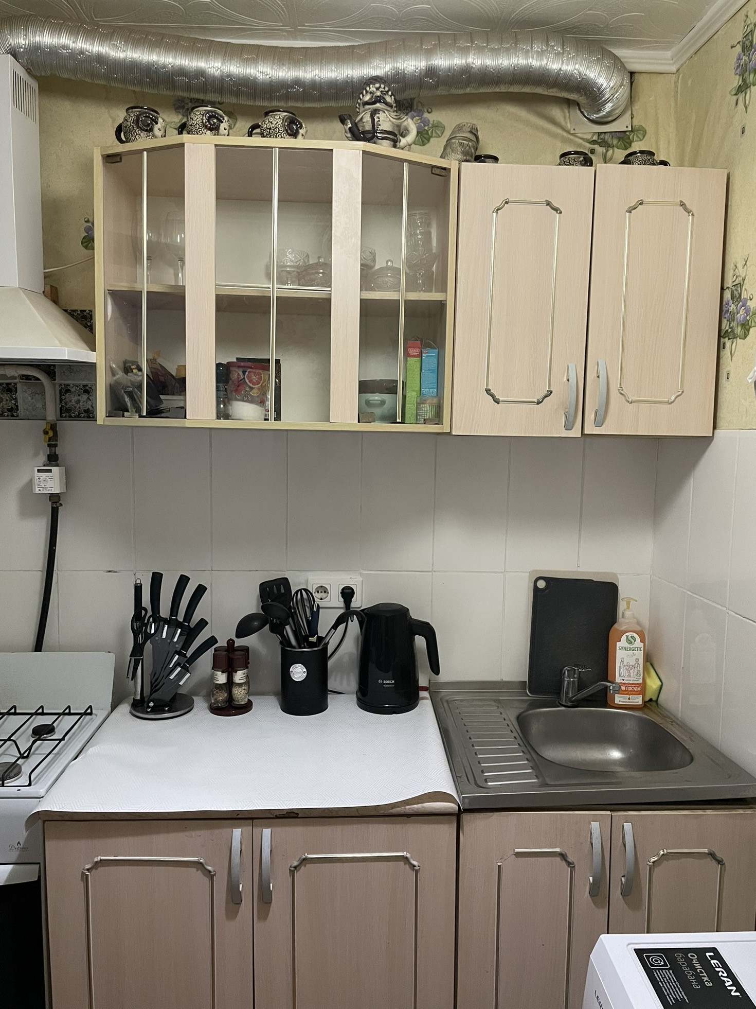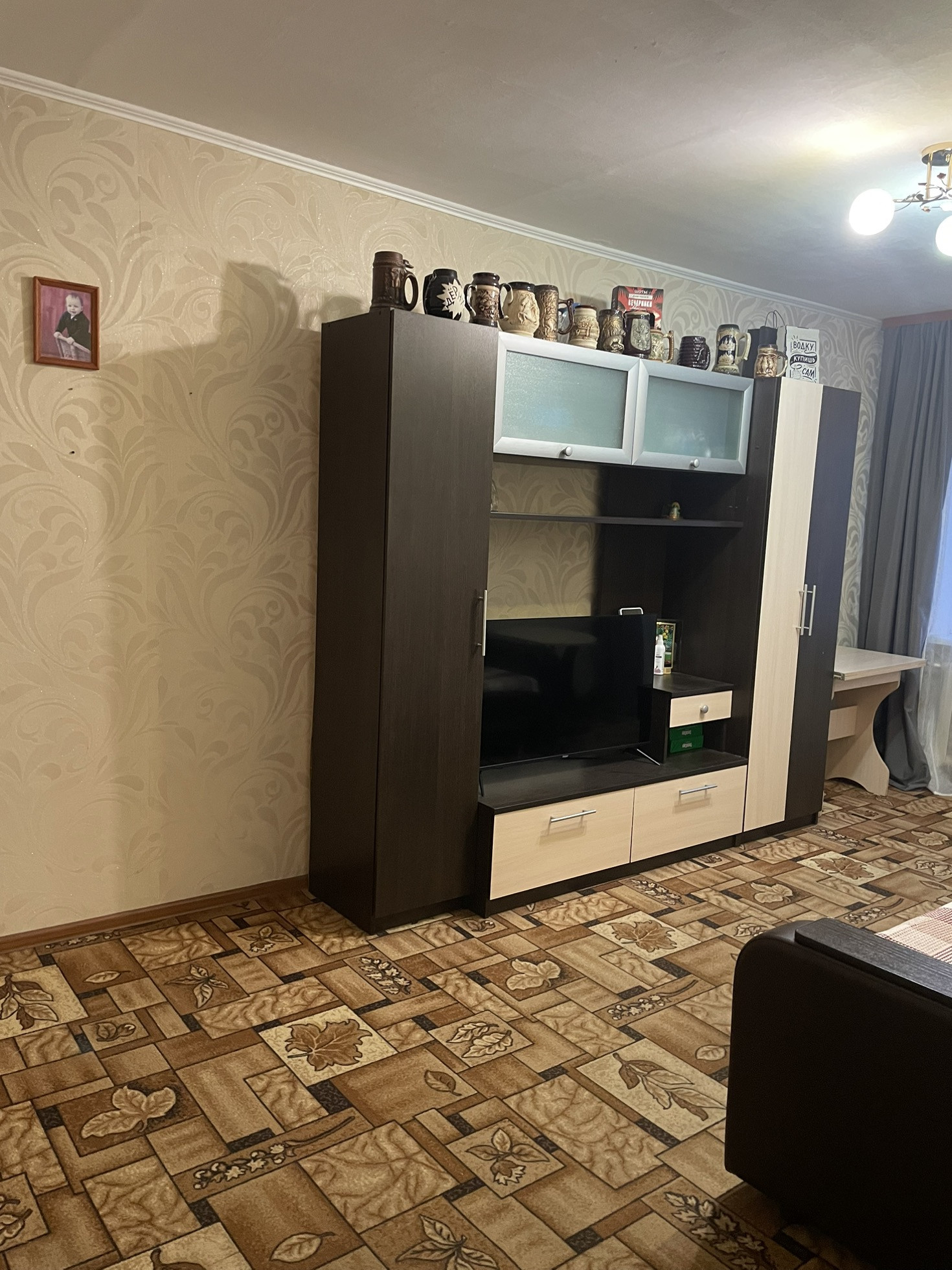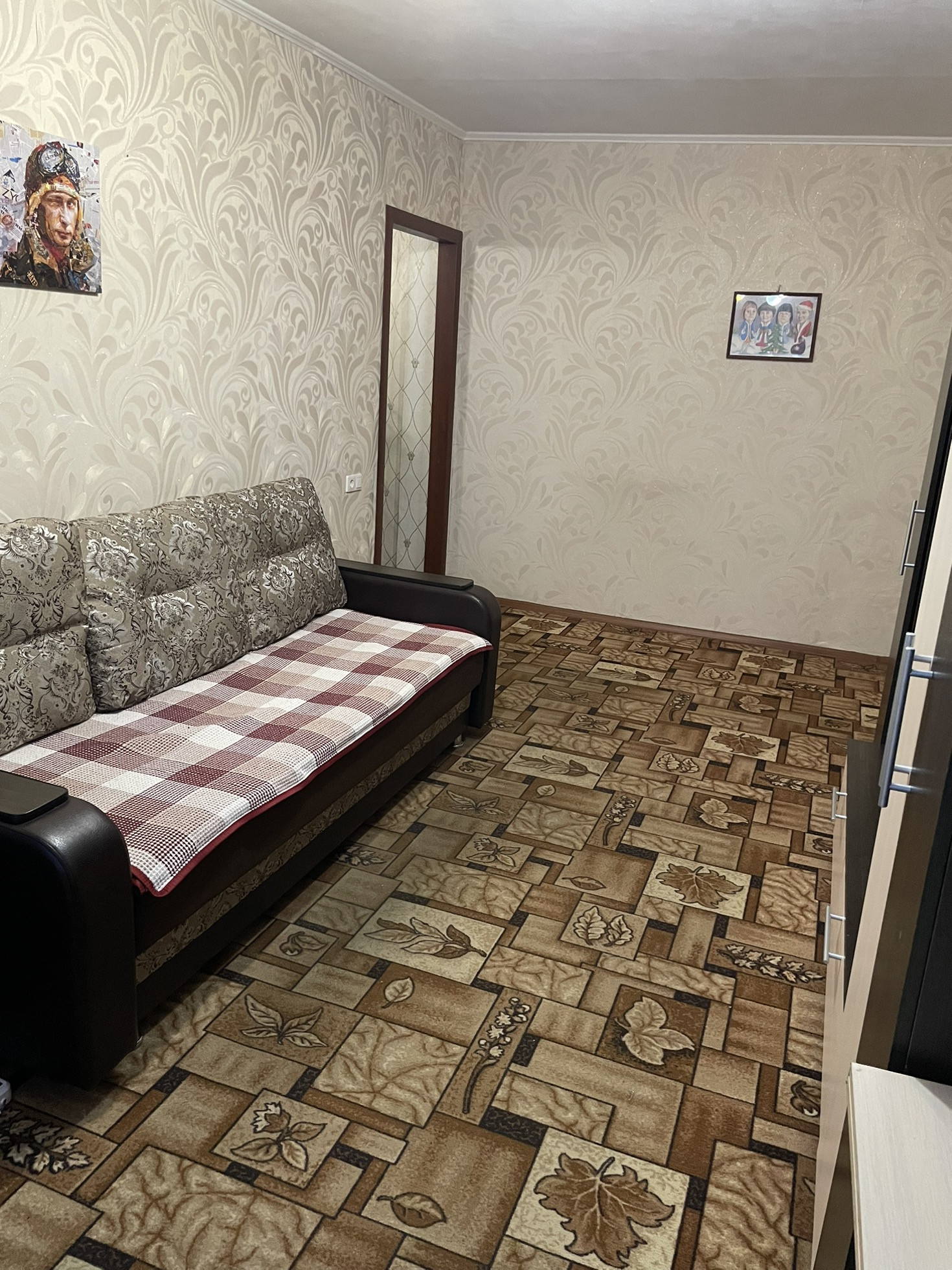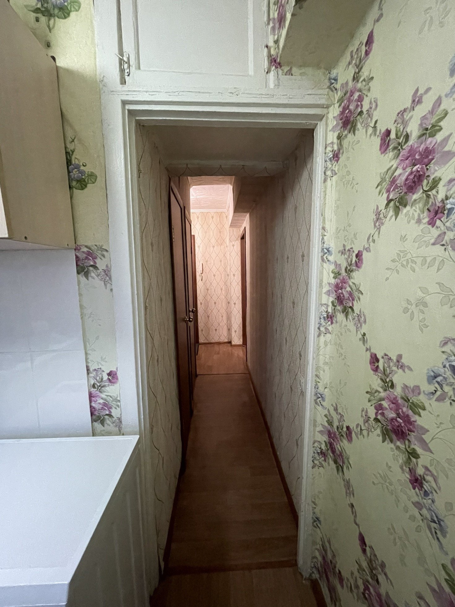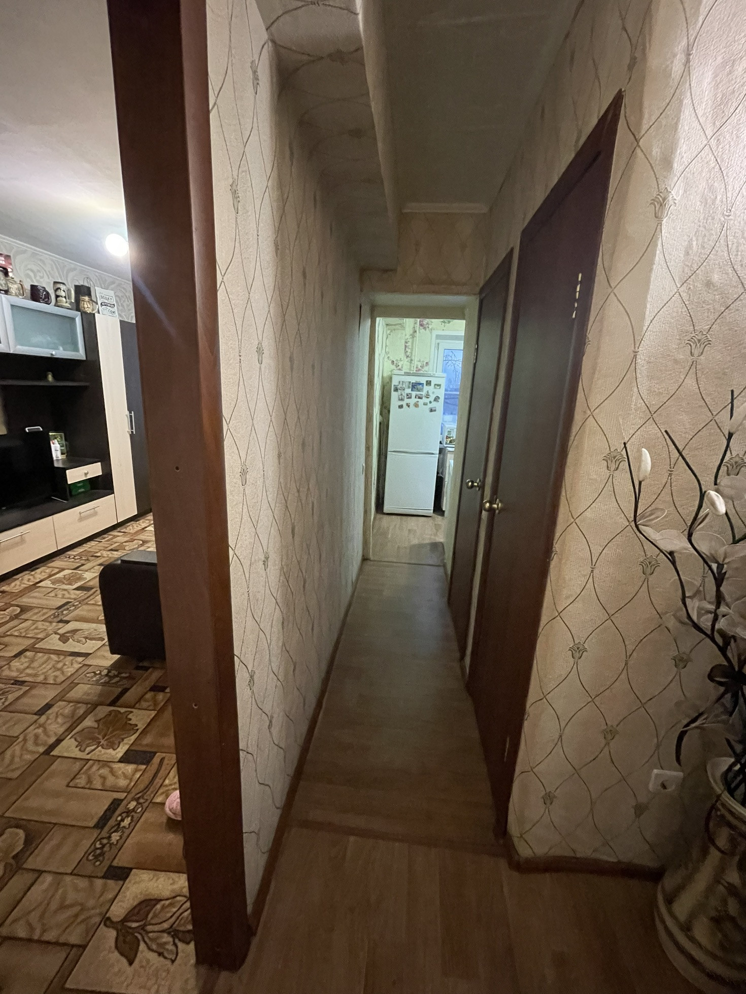 При продаже остаётся кухонный гарнитур, газовая плита, кровать, прикроватные тумбы, косметический стол, коридорный шкаф.