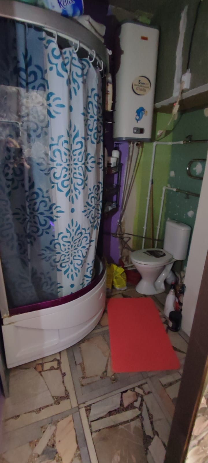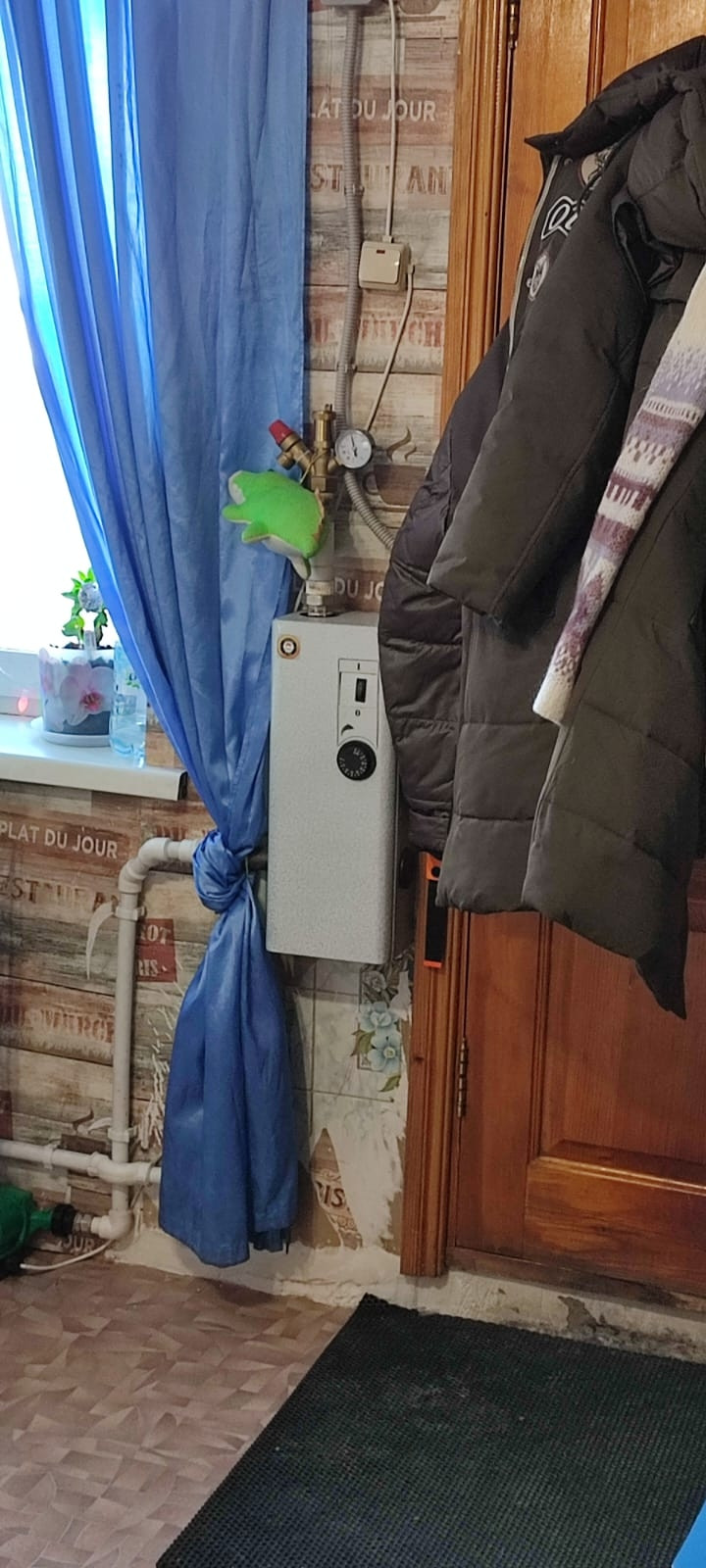 Тёплая квартиры в доме барачного типа.  Дом из кирпича. Отопление от электрокотла. Холодная вода- центральное водоснабжение. Горячая вода-бойлер на 60 литров. Канализации- выгрибная яма.