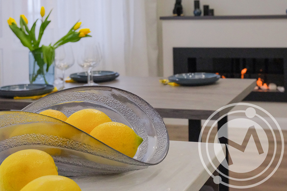 ✨ Кухня-гостиная с камином (живой огонь) и современной организацией кулинарной зоны