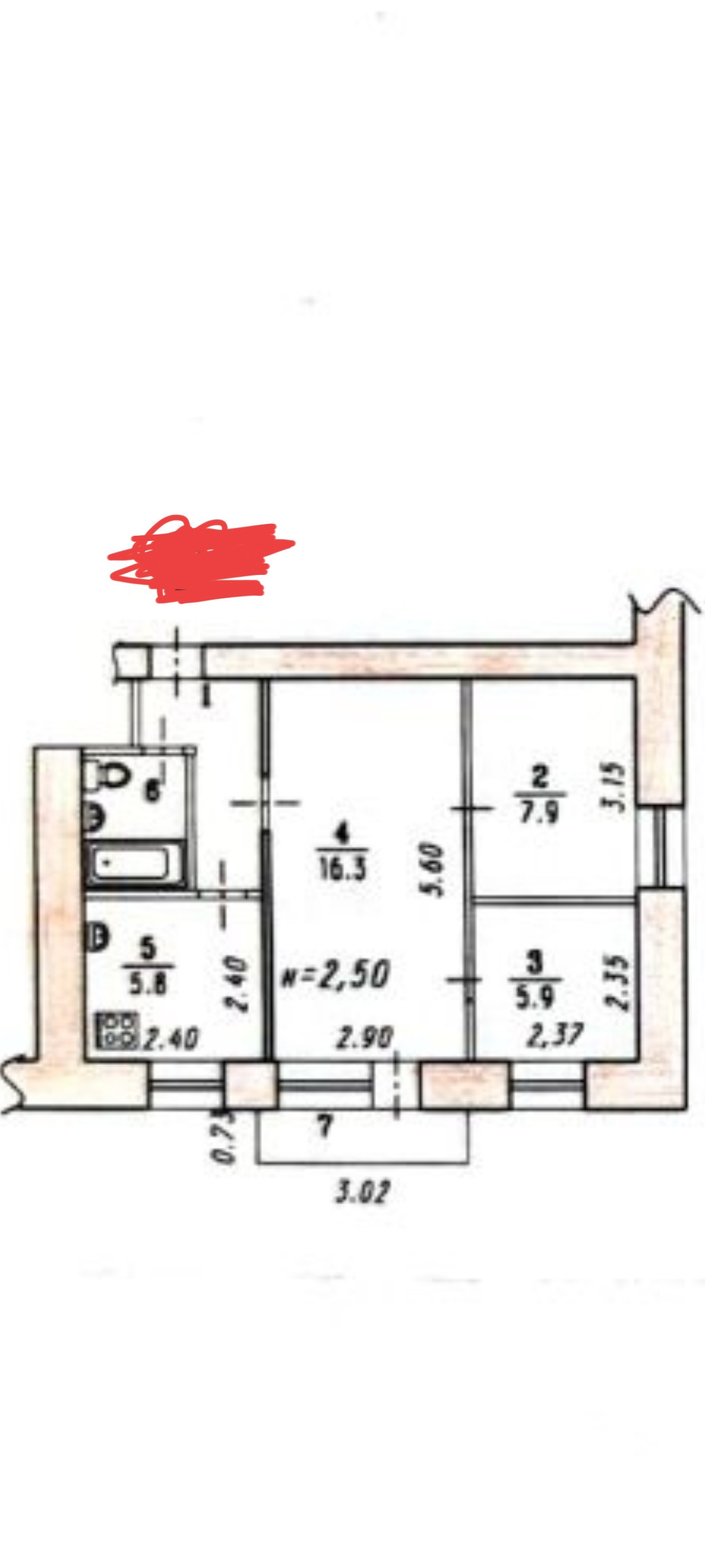 Высота потолков 2.5 м