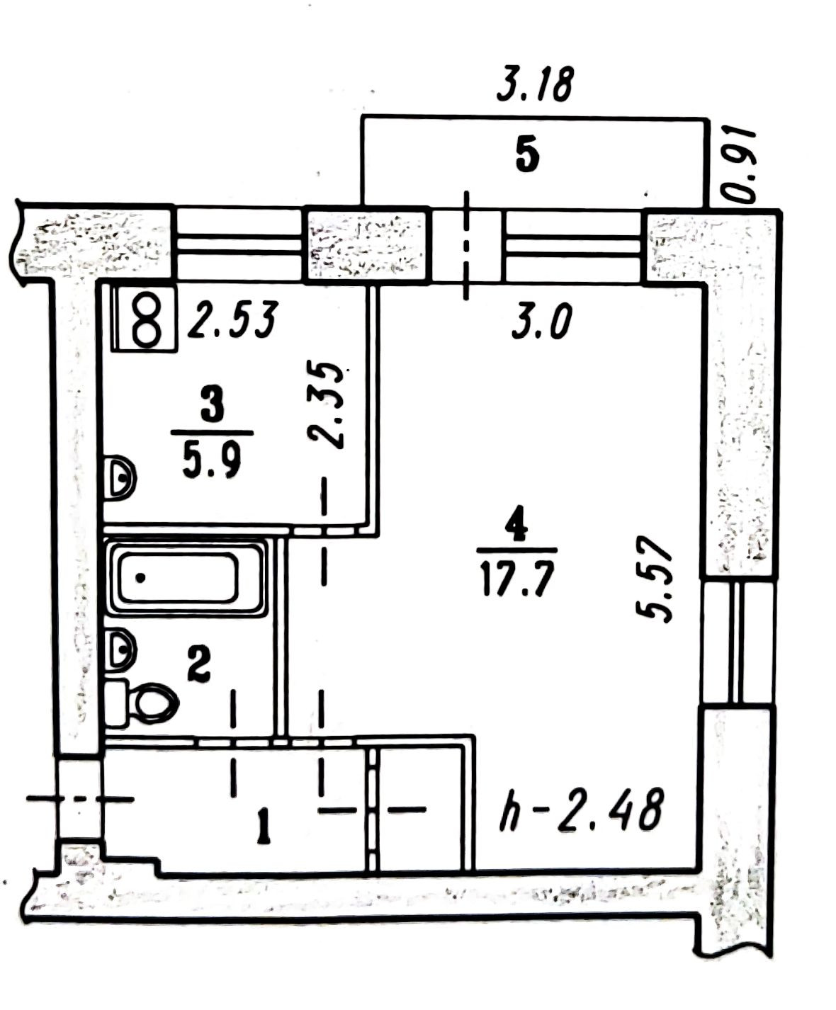 Высота потолков 2.5 м