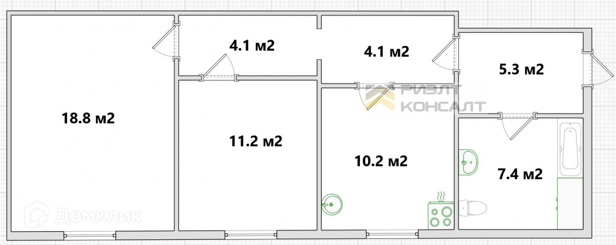 - Вместительная кухня с удобной зоной отдыха, просторные изолированные комнаты.