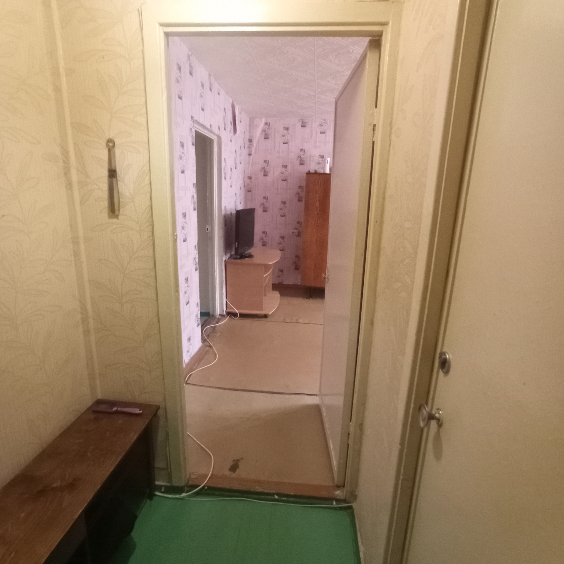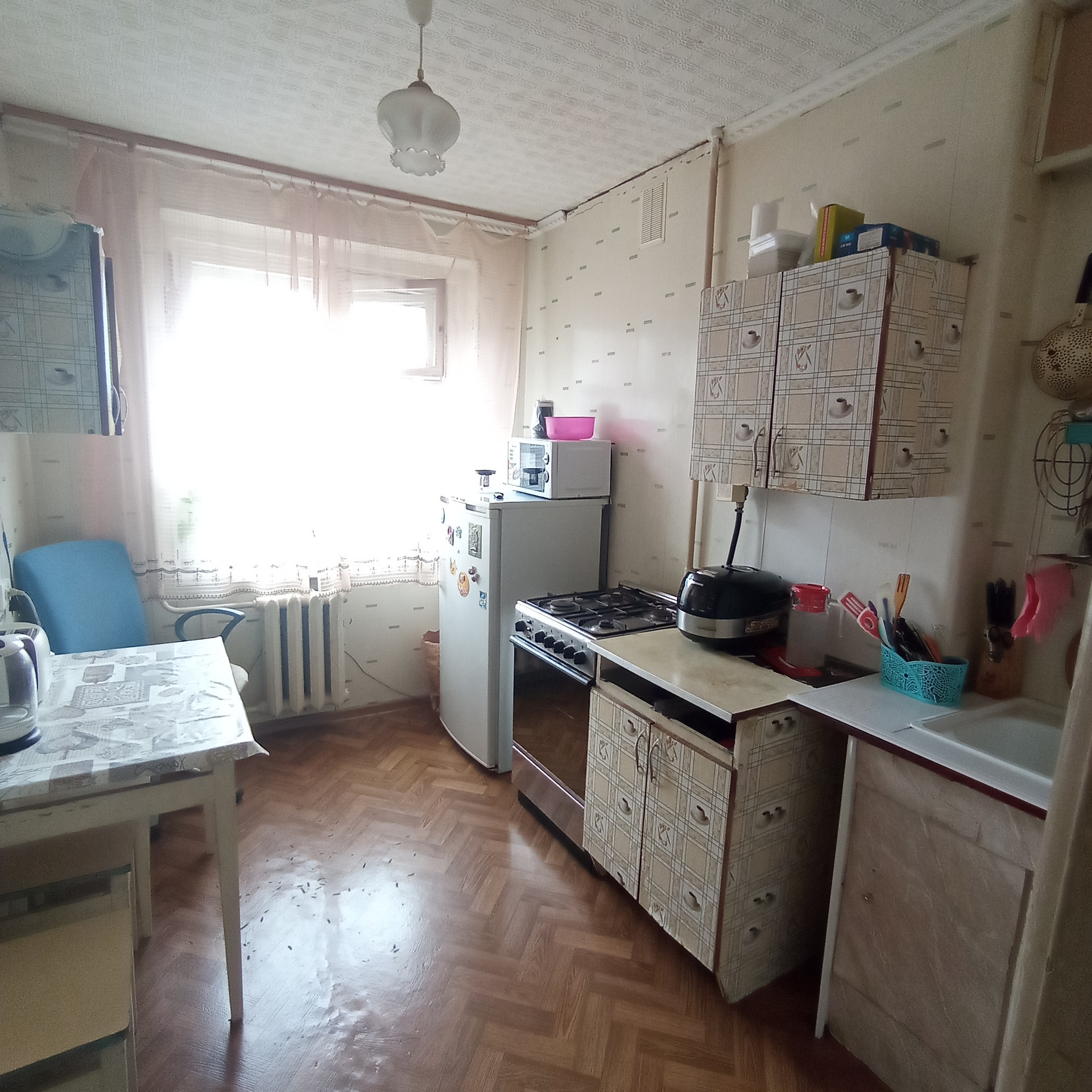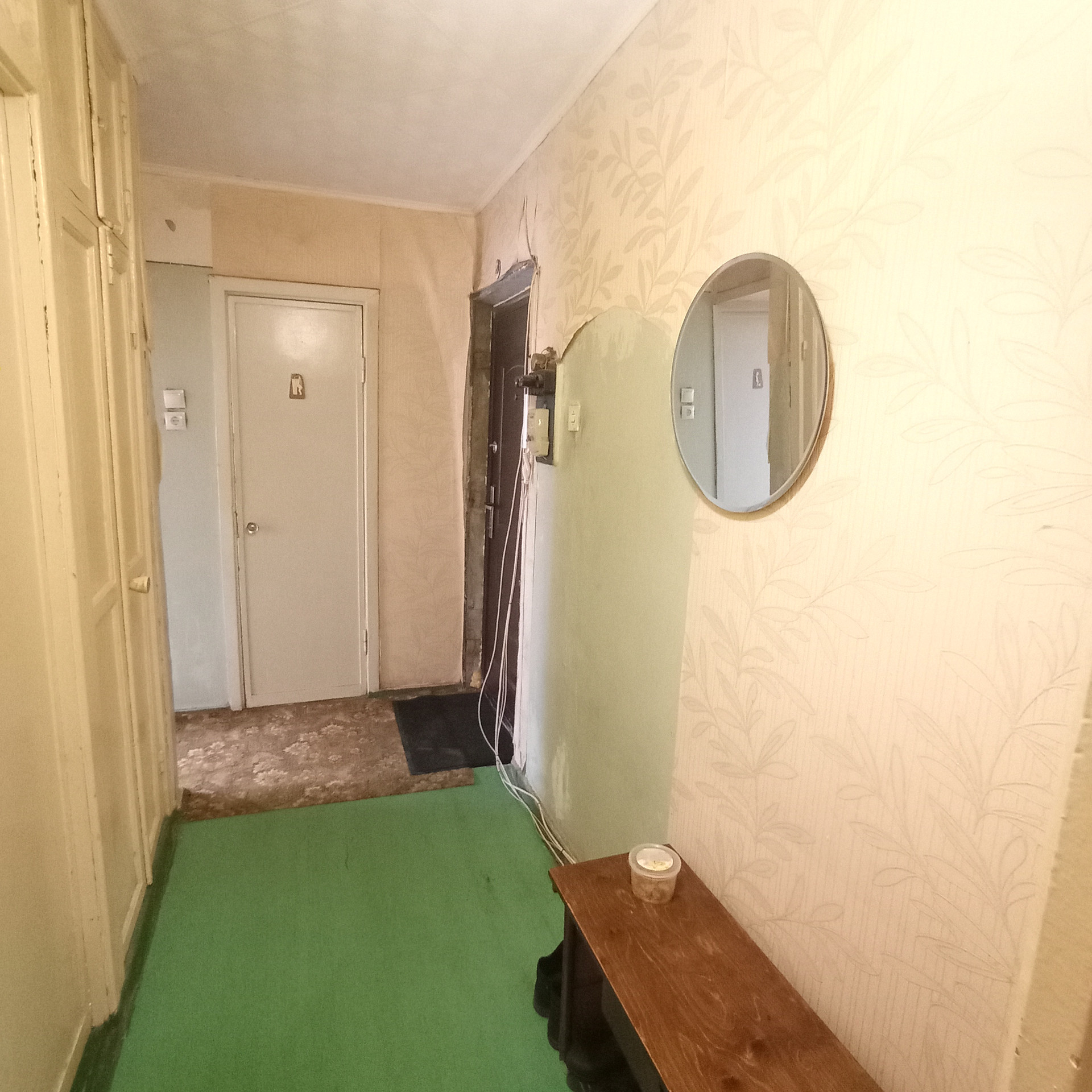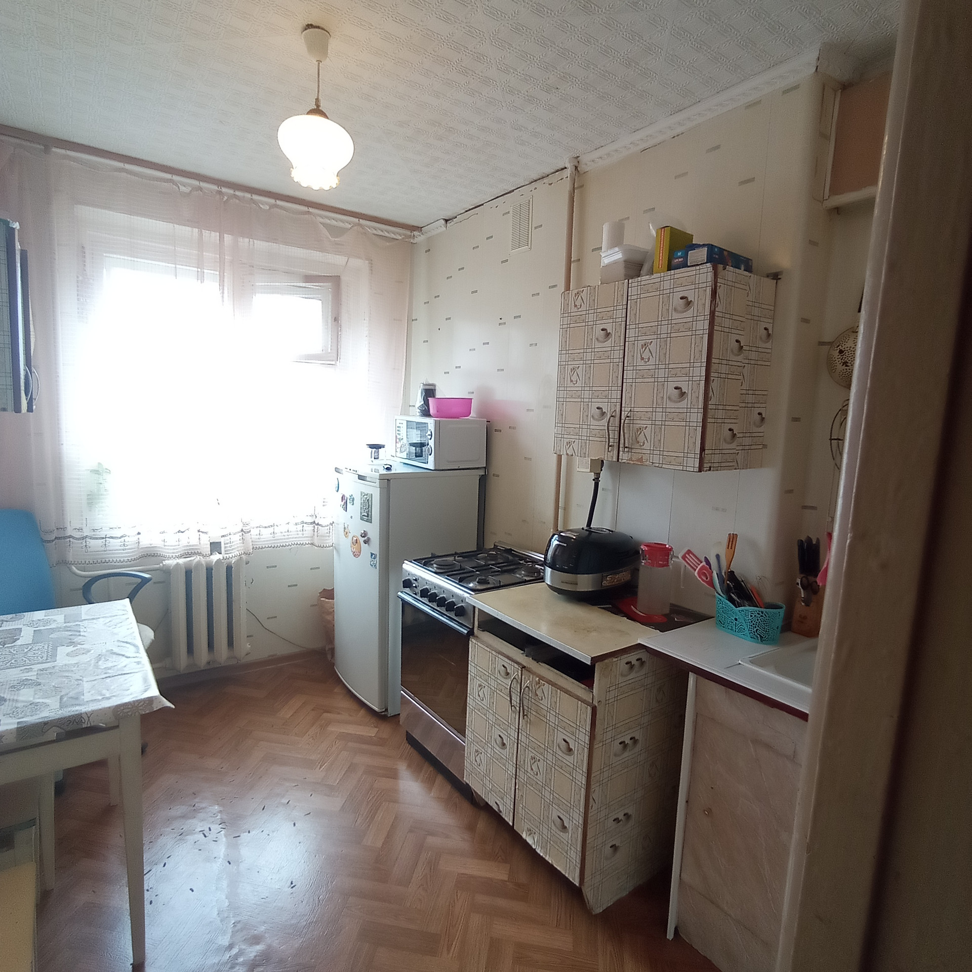 СОСТОЯНИЕ: квартира без ремонта. Окно балконное - ПВХ, остальные окна - деревянные. Пол - во всей квартире линолеум по бетону, на кухне - деревянный. Потолок- потолочная плитка. Входная дверь - металлическая.