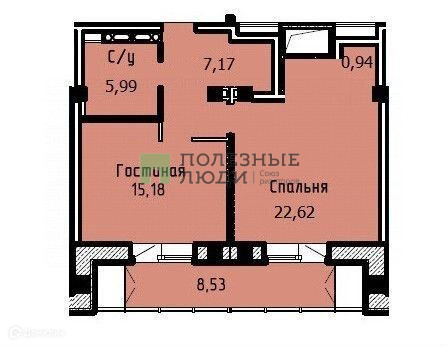 Жилая площадь 37.8 м2