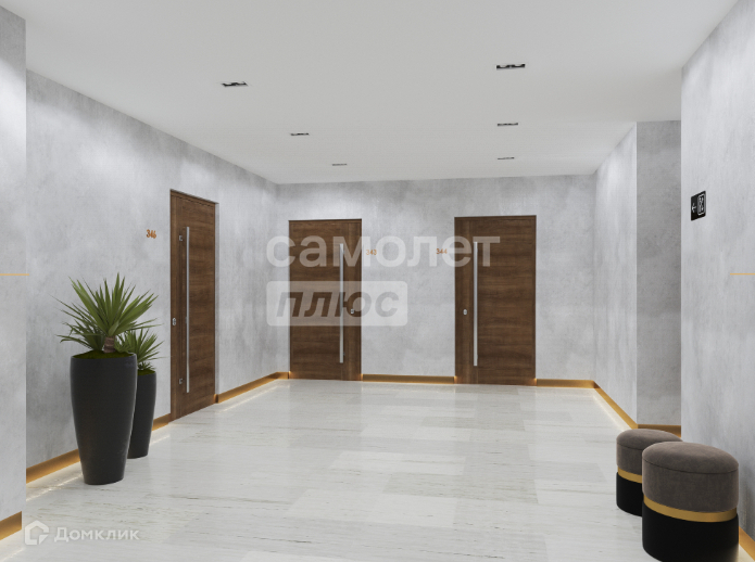 Дизайн мест общего пользования и лифтовых холлов выполнен в современном стиле с отделкой керамогранитом и декоративной штукатуркой.