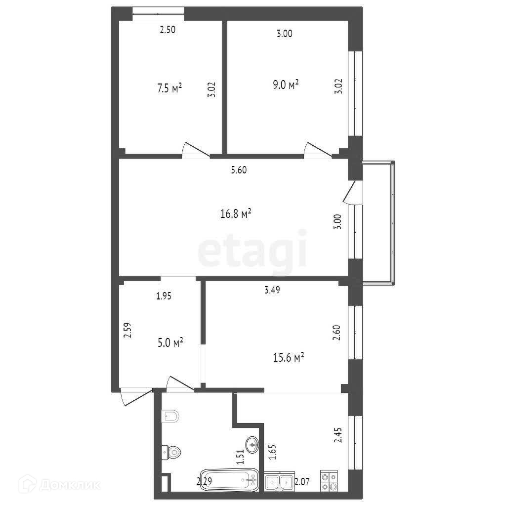 Общая площадь 59.4 м2