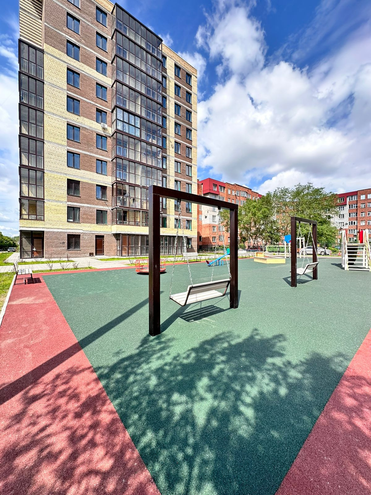 В подъезде предусмотрен консьерж, территория закрыта. В доме построен, так называемый «Безопасный подъезд». Это Прозрачный алюминиевый тамбур, который позволяет с улицы просматривать, кто находится в подъезде. Следующим летом на детской площадке будет уложено мягкое покрытие.
