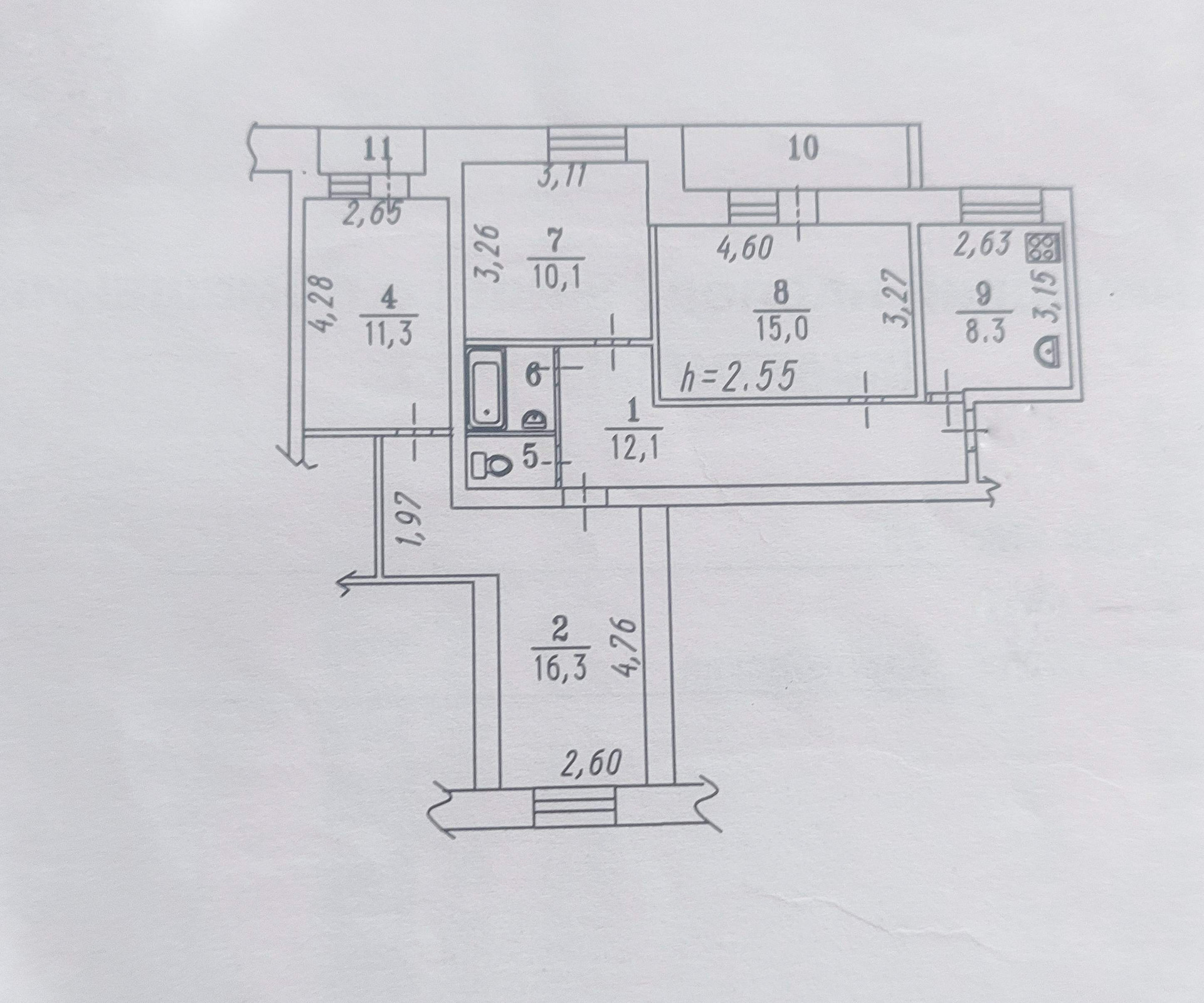 Высота потолков 2.5 м