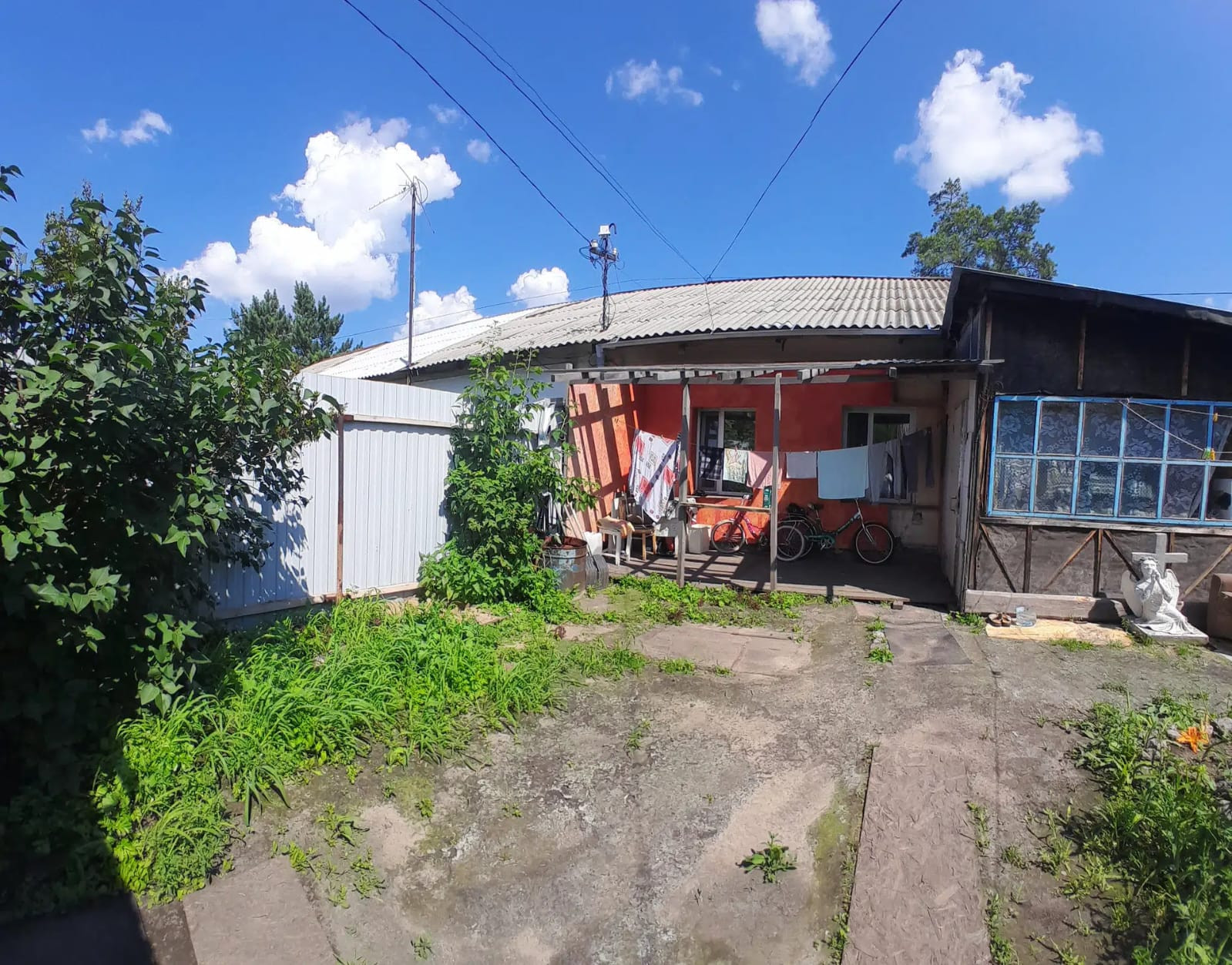 Отдельный вход , своя небольшая ограда, свежий забор из профнастила.