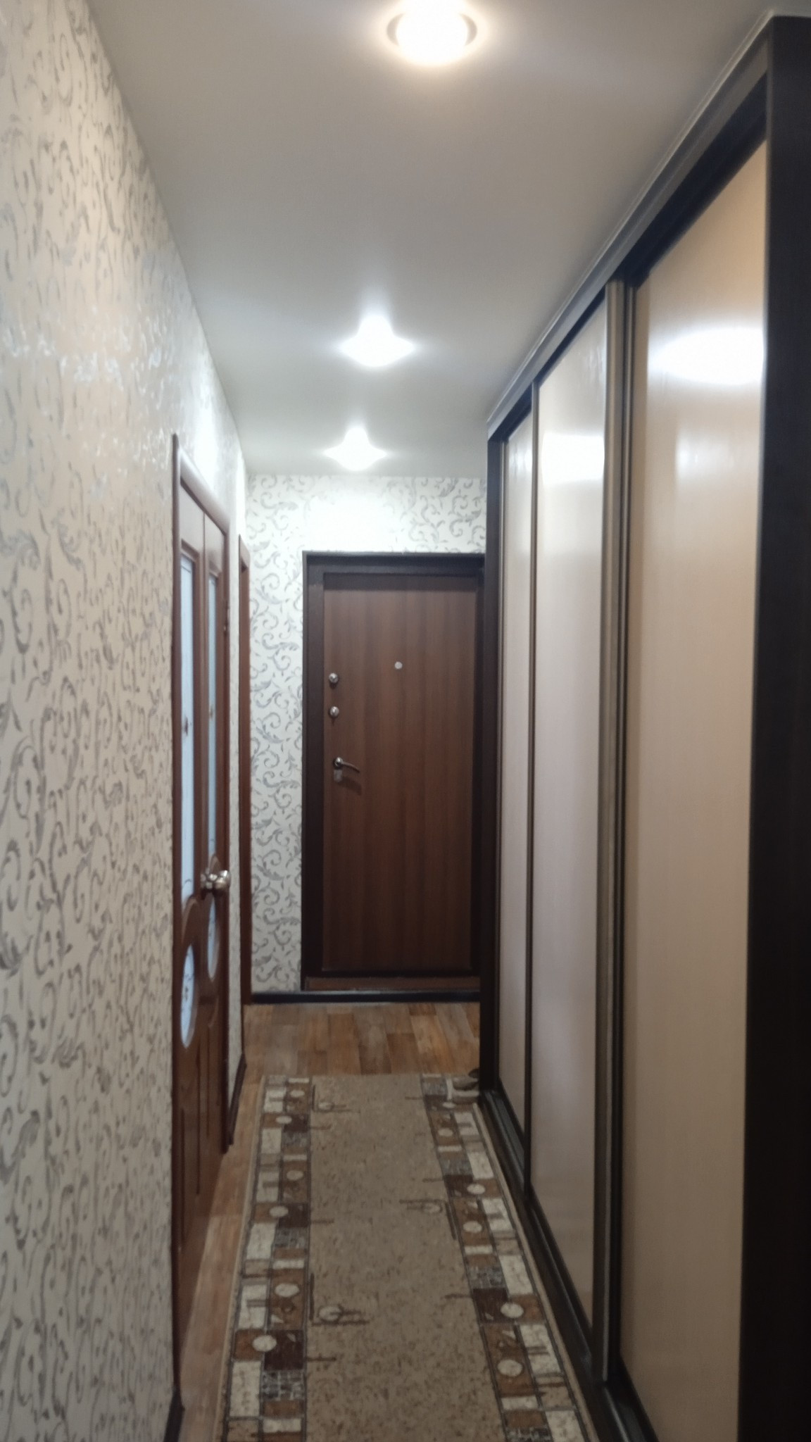 Предлагаем к продаже  четырехкомнатную квартиру в кирпичном доме 1990 года постройки  ,расположенную на комфортном  девятом этаже . Десятый этаж -технический.  Общая площадь квартиры составляет 81,8  квадратных метров, жилая площадь — 51,6  квадратных метров. В квартире четыре изолированные комнаты ,окна  которых выходят на обе стороны дома  . Кухня оборудована всей необходимой мебелью, которая при продаже остаётся новым собственникам  Под окном ПВХ оборудован зимний холодильник ПВХ.В просторном коридоре 10,5  квадратных метров ,который плавно переходит  во второй коридор 8,2 квадратных метров   установлен шкаф-купе который так-же остаётся при продаже .  Ванная комната и туалет раздельные. В квартире установлены  приборы учёта на газ, холодную и горячую воду  Во всей квартире натяжные потолки   со спотами .Окна ПВХ, современные межкомнатные и входная двери .Современные  радиаторы отопления  Обратите своё внимание на две большие  лоджии. На лестничной площадке между девятым и десятым техническим этажом  оборудована кладовая для хранения крупногабаритных вещей и запасов на зиму : овощей, картофеля.