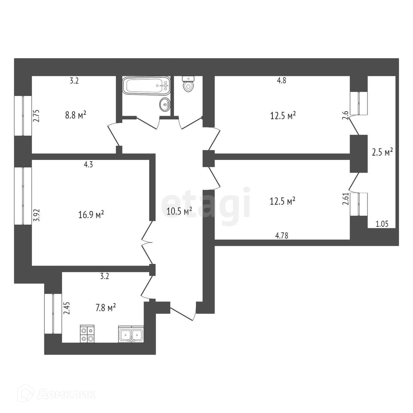 Общая площадь 75.3 м2