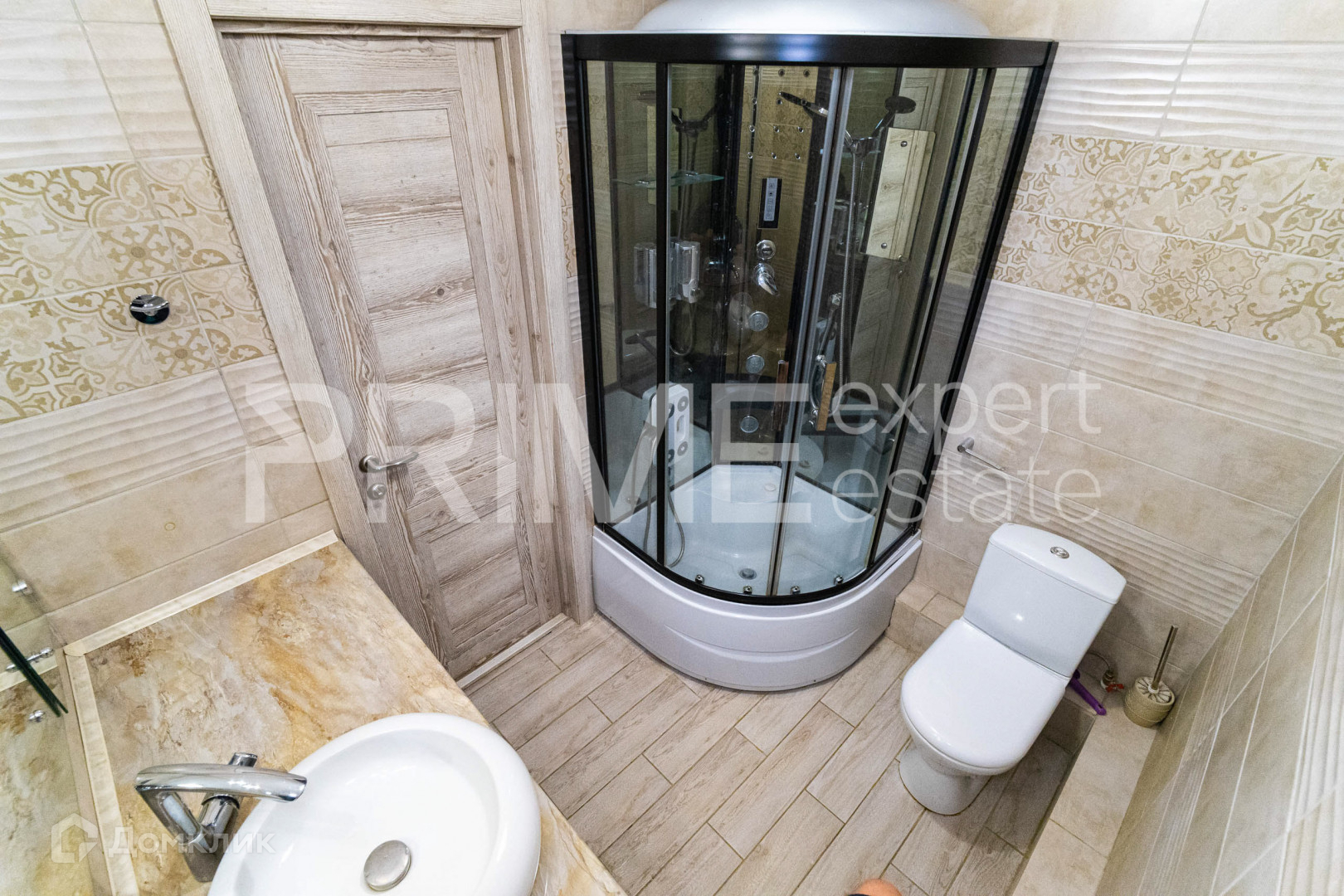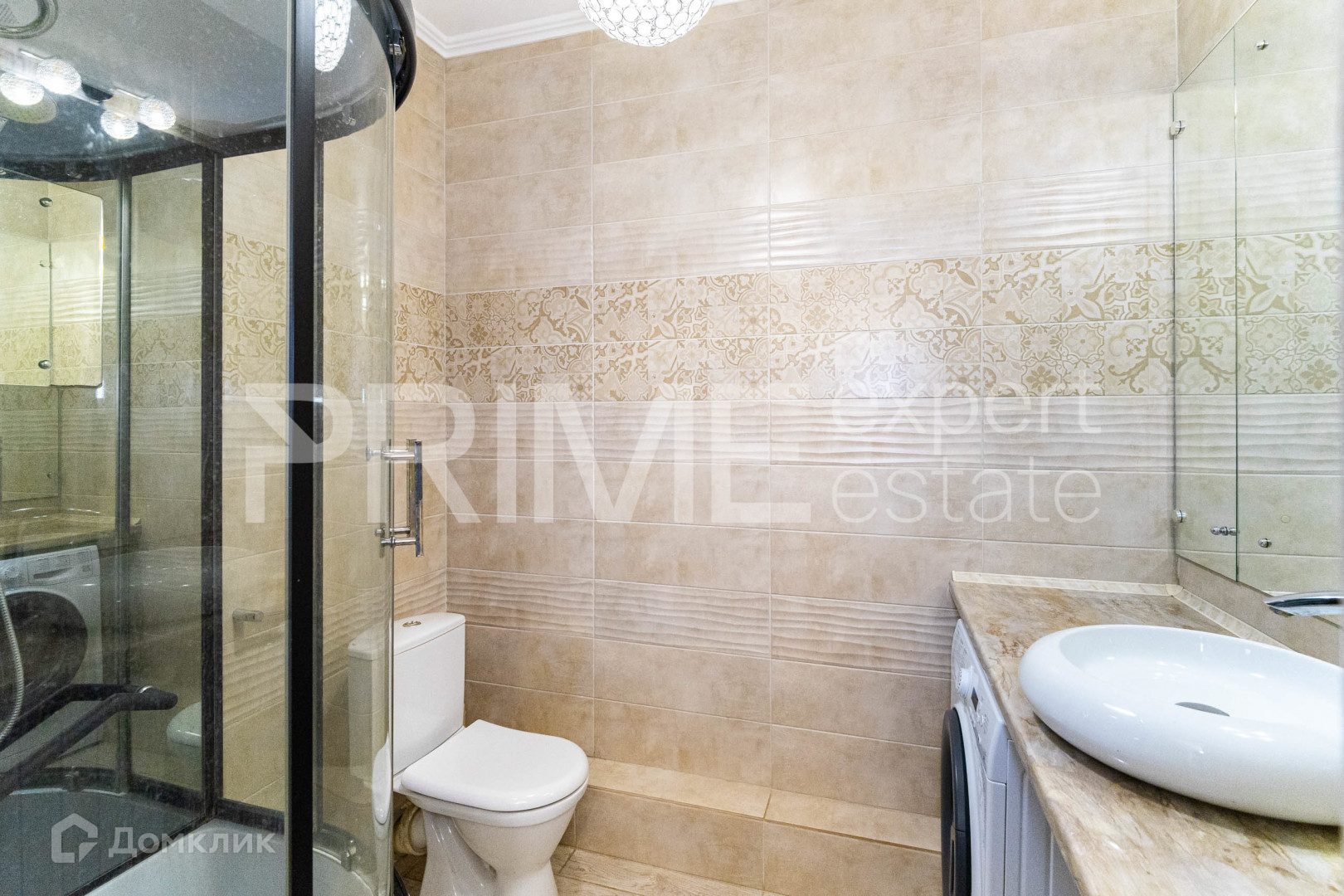 В прихожей расположен встроенный шкаф-купе для верхней одежды. Есть отдельная гардеробная с большим количеством мест хранения. Санузел совмещенный, установлена душевая кабина, накладная раковина, стиральная машина автомат. На лоджии выполнено остекление двухкамерными стеклопакетами,