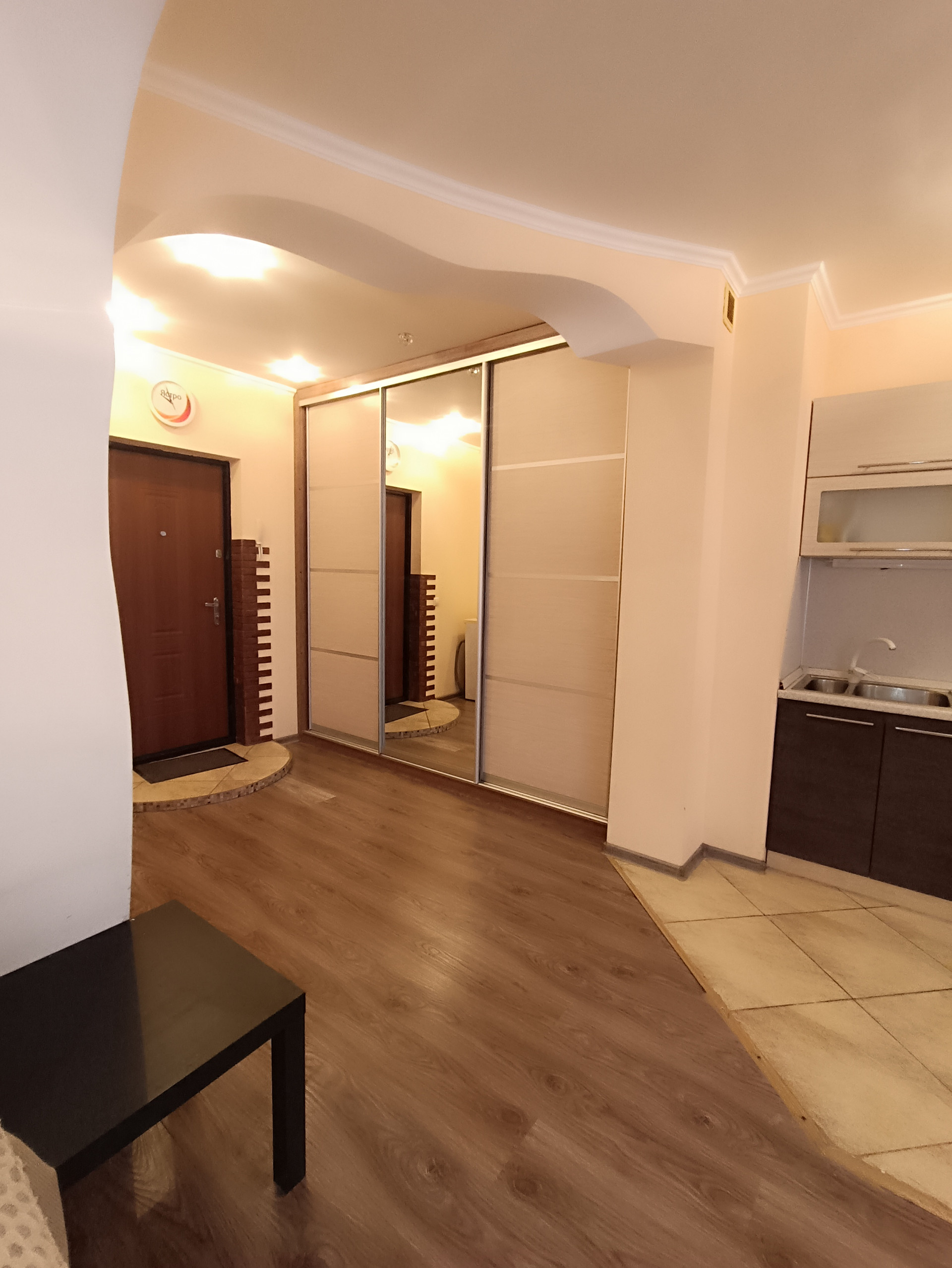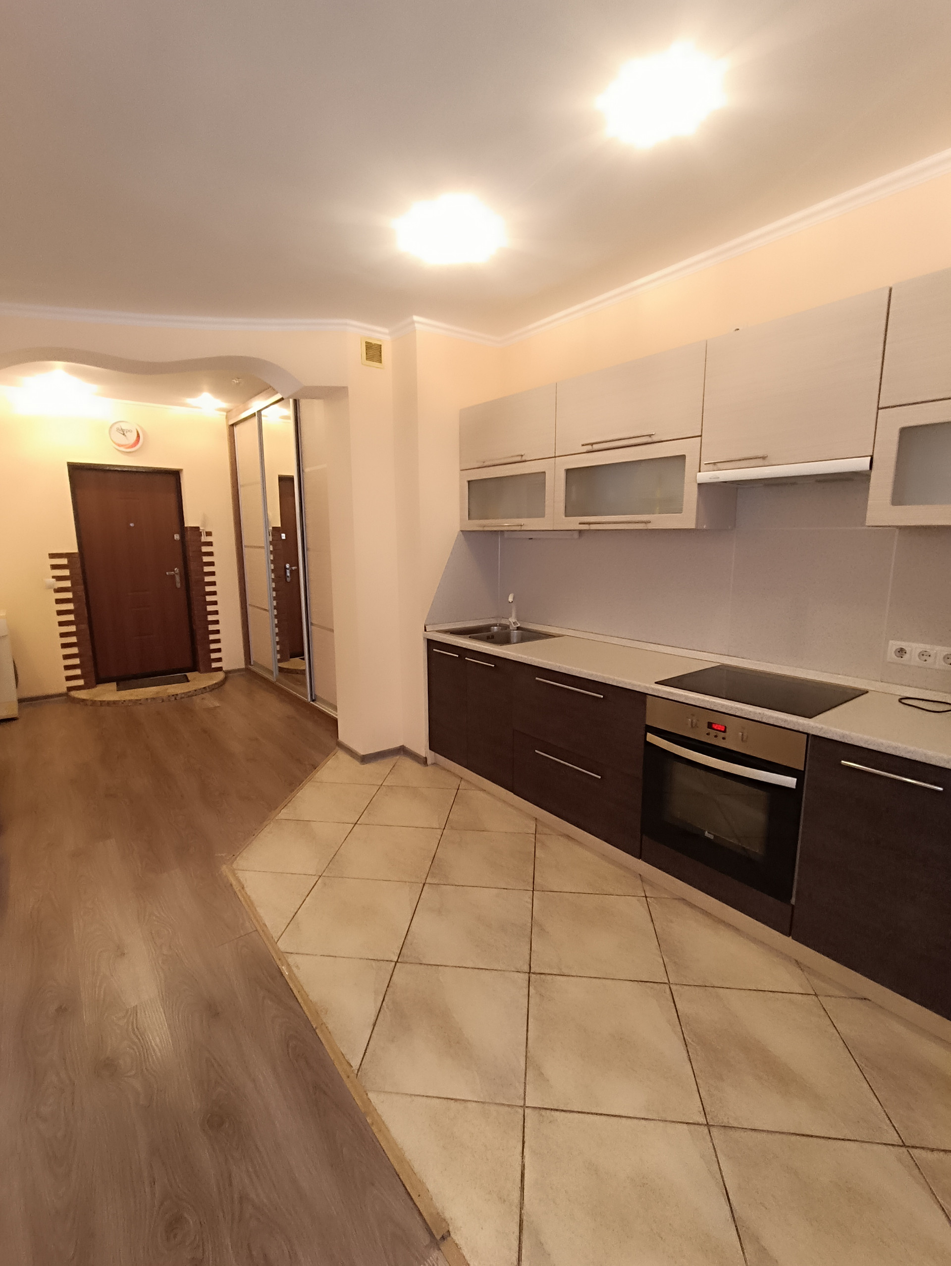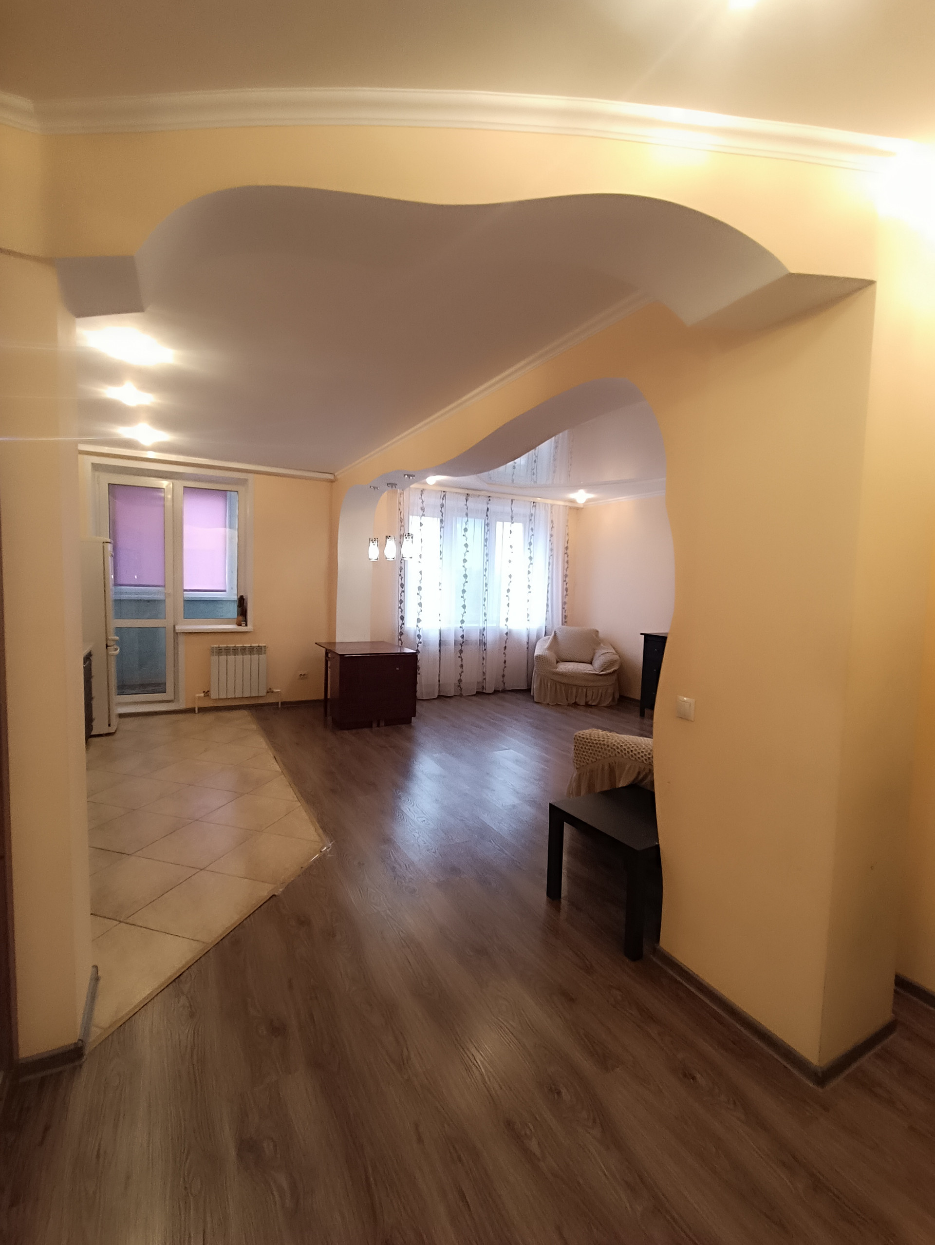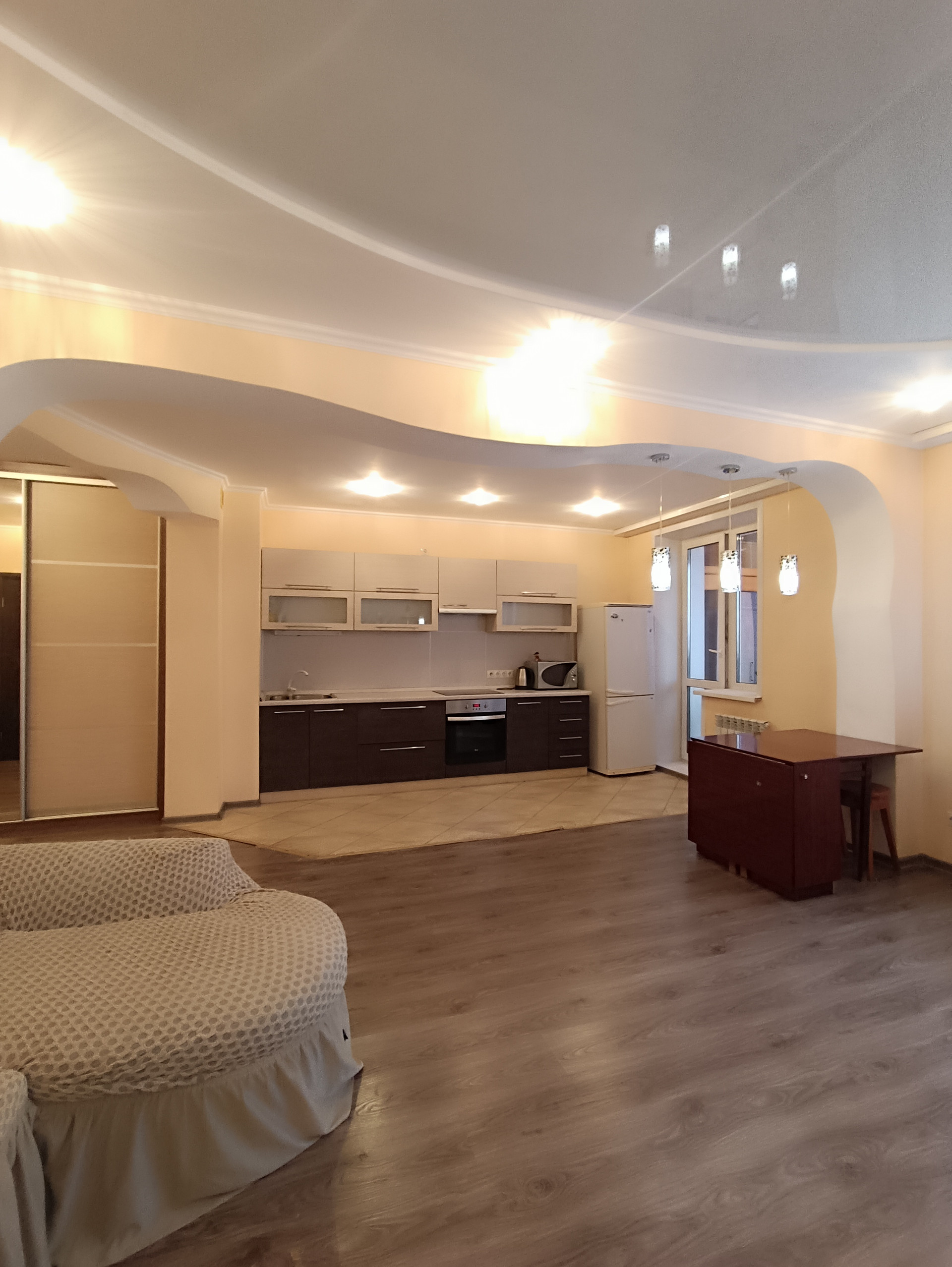 установлены все приборы учета.  На полу ламинат, в кухонной зоне и  санузле - кафель. Натяжные потолки, пластиковые окна. Просторная кухня объединена с жилой зоной, создавая комфортное пространство для жизни.