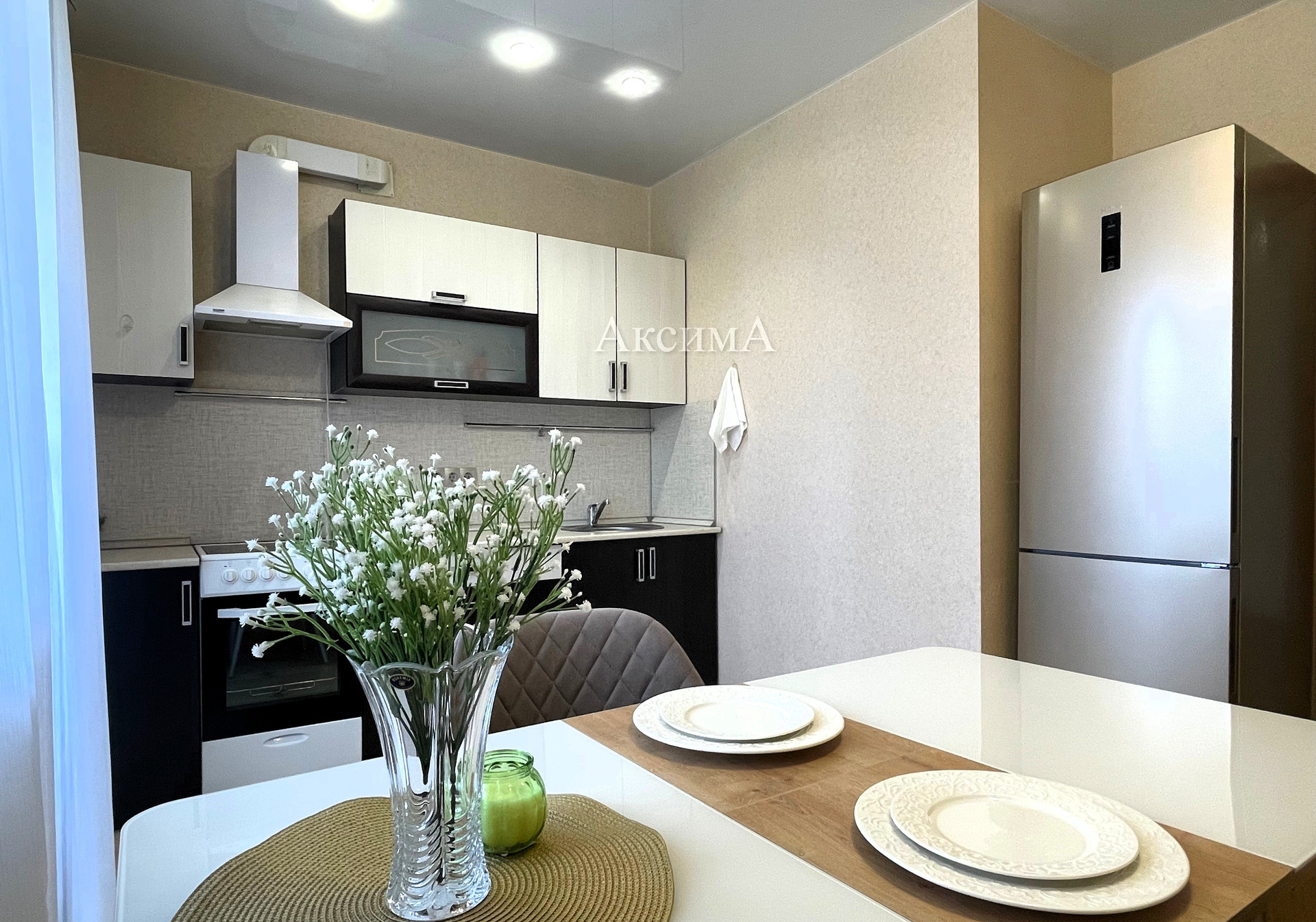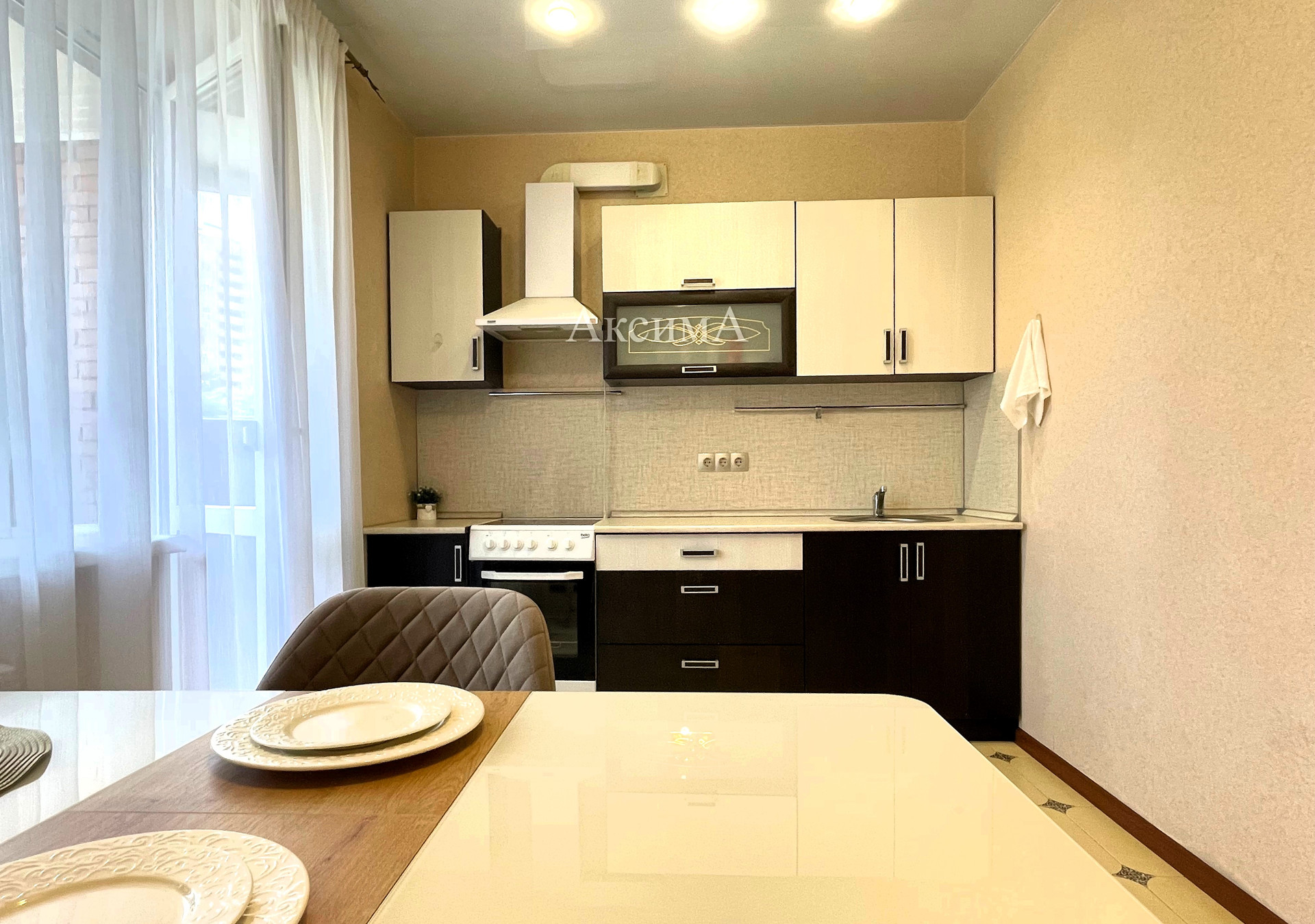 При продаже из мебели остается встроенный кухонный гарнитур, кондиционер.
