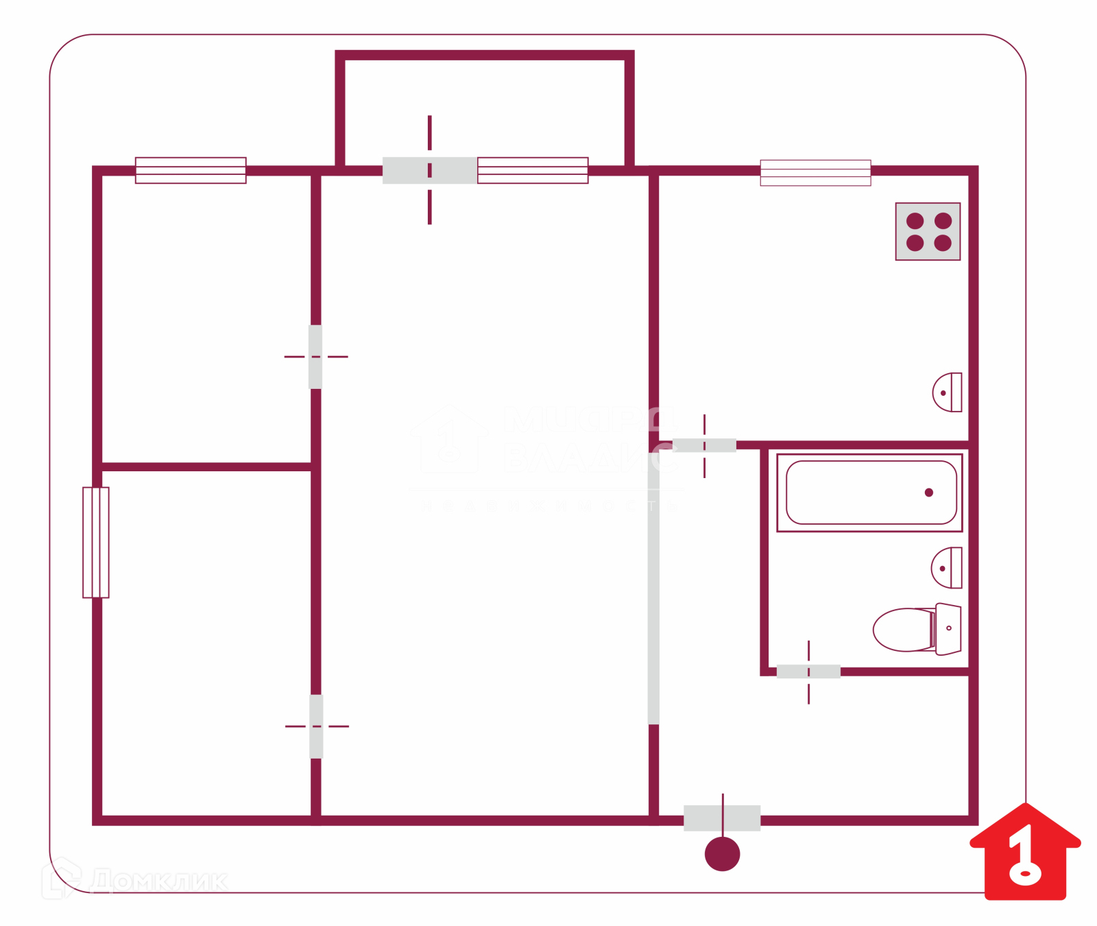Балкон, лоджия 1 балкон