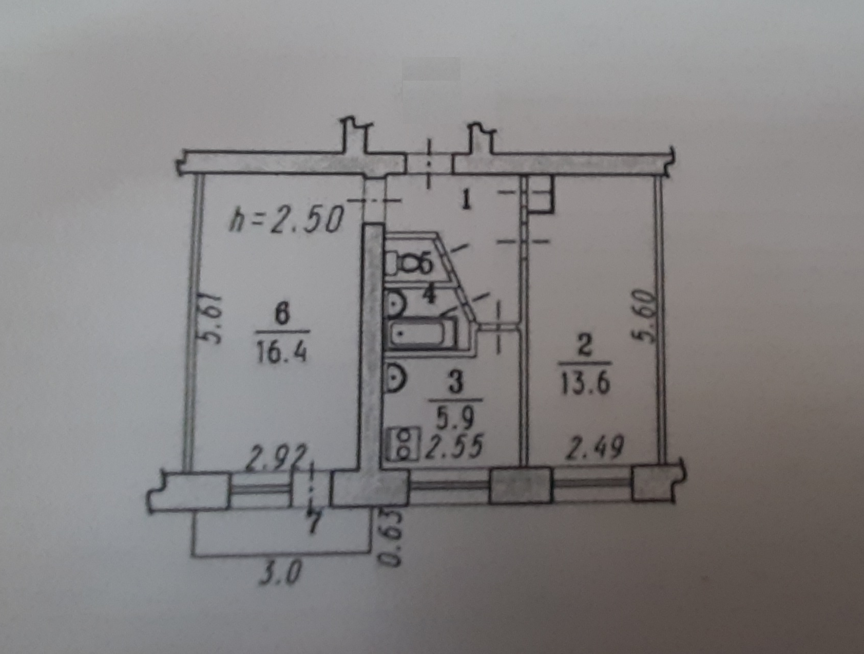 Высота потолков 2.5 м