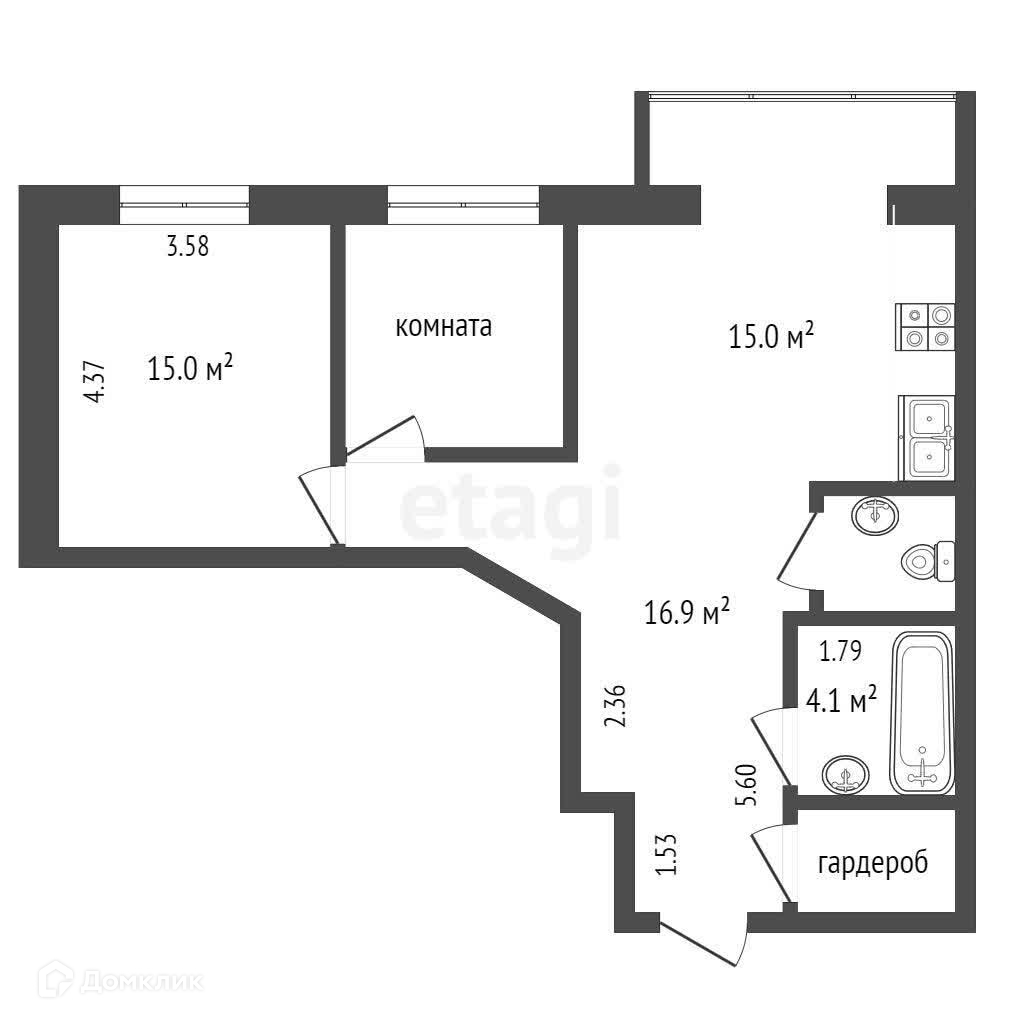 Площадь кухни 15 м2
