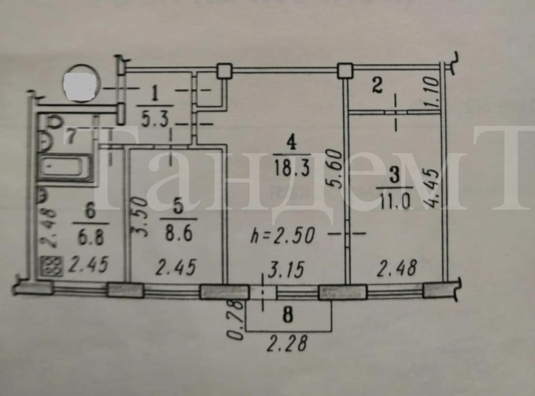 Общая площадь 55.6 м2