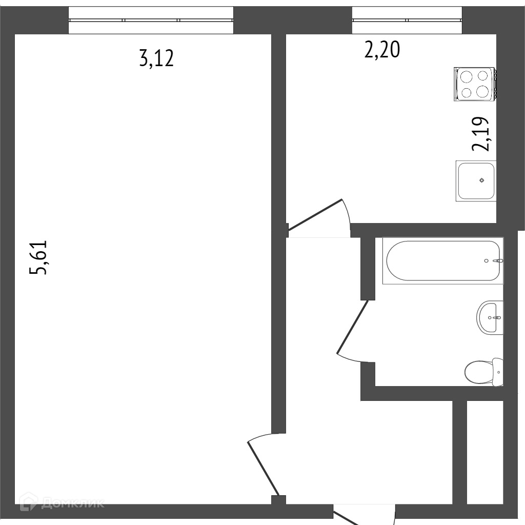 Балкон, лоджия 1 балкон
