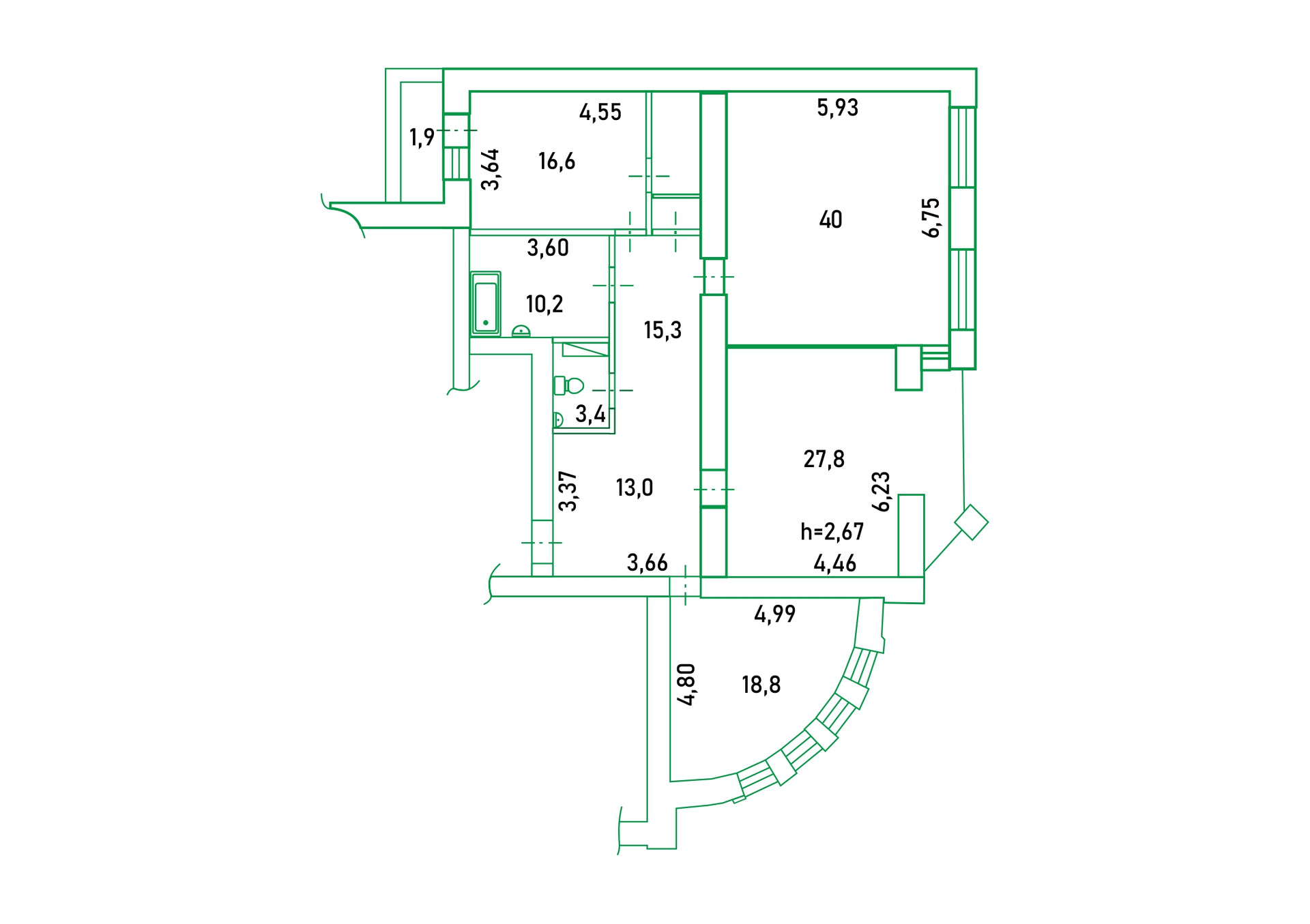 Высота потолков 2.7 м