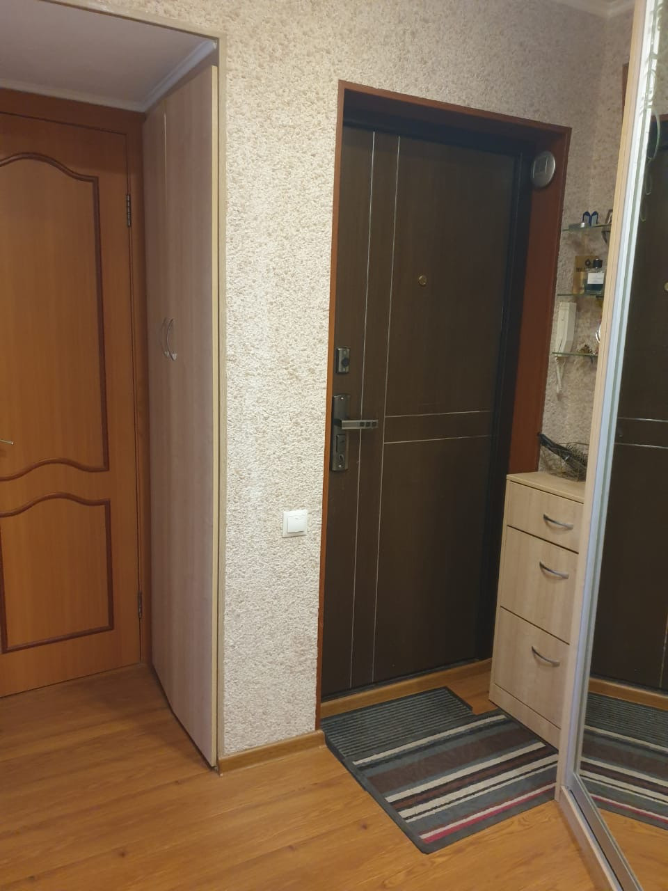 Уютная квартира с качественным ремонтом: встроенная мебель, пол - ламинат , на кухне пол - плитка. В подъезде сделан ремонт. Хорошие соседи. В шаговой доступности магазины , две школы и детский сад.