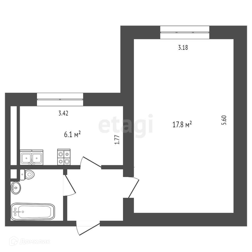 Площадь кухни 6.1 м2
