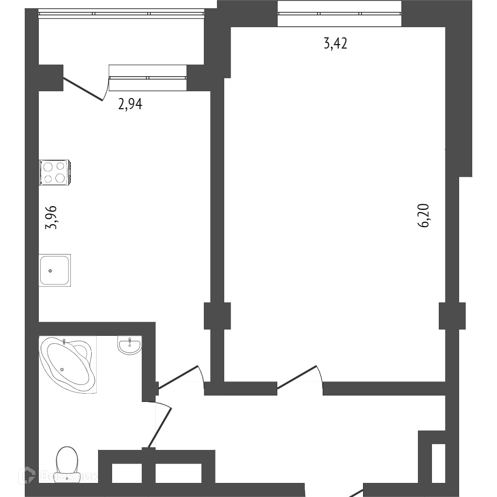 Балкон, лоджия 1 балкон