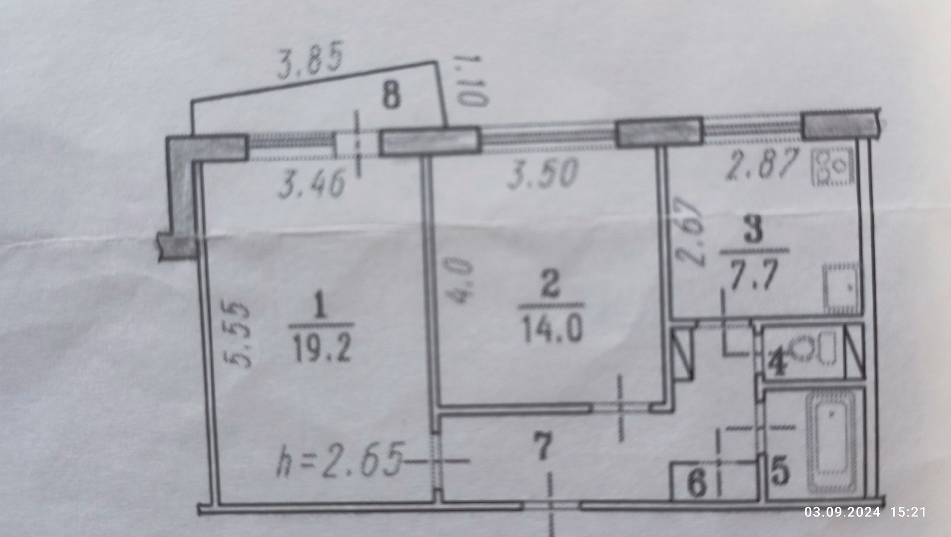 Высота потолков 2.65 м