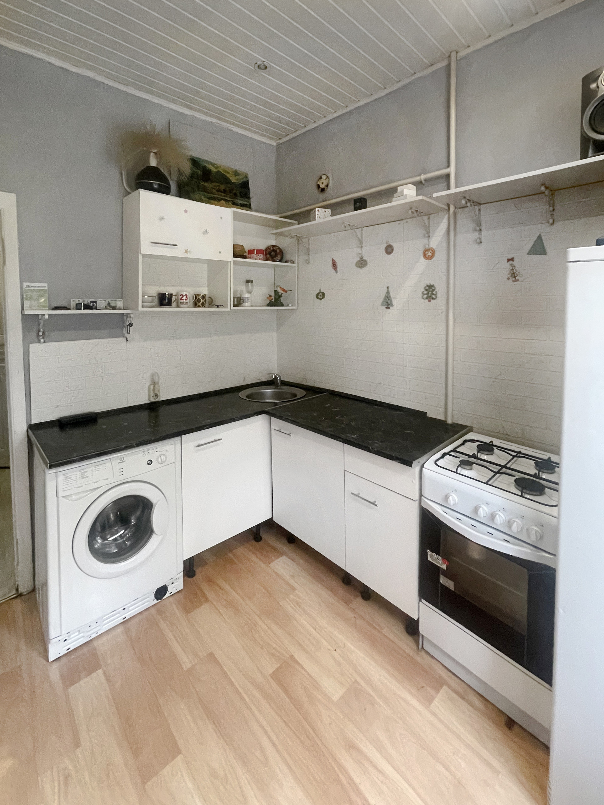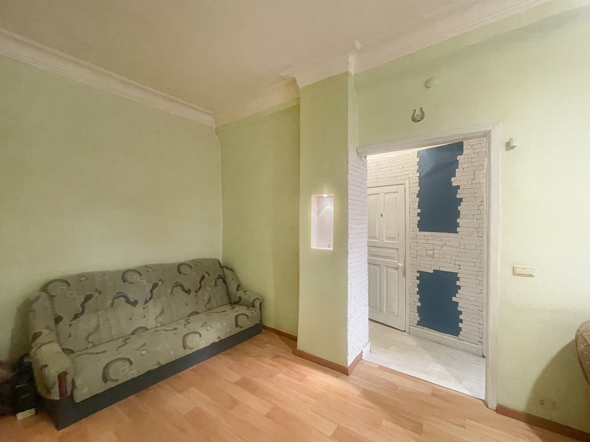 Большая уютная квартира 35,1м2, комната 18,9м2, высокие потолки (хватит высоты сделать спальное место вторым этажом или отдельную детскую комнату), на площадке 2 квартиры, тихо, толстые кирпичные стены около 1м, хорошие порядочные соседи только с 1 стороны и сверху. Окна все на юг большие новые деревянные, кухня 8м2 квадратная с оборудованным высоким сухим погребом с лестницей.