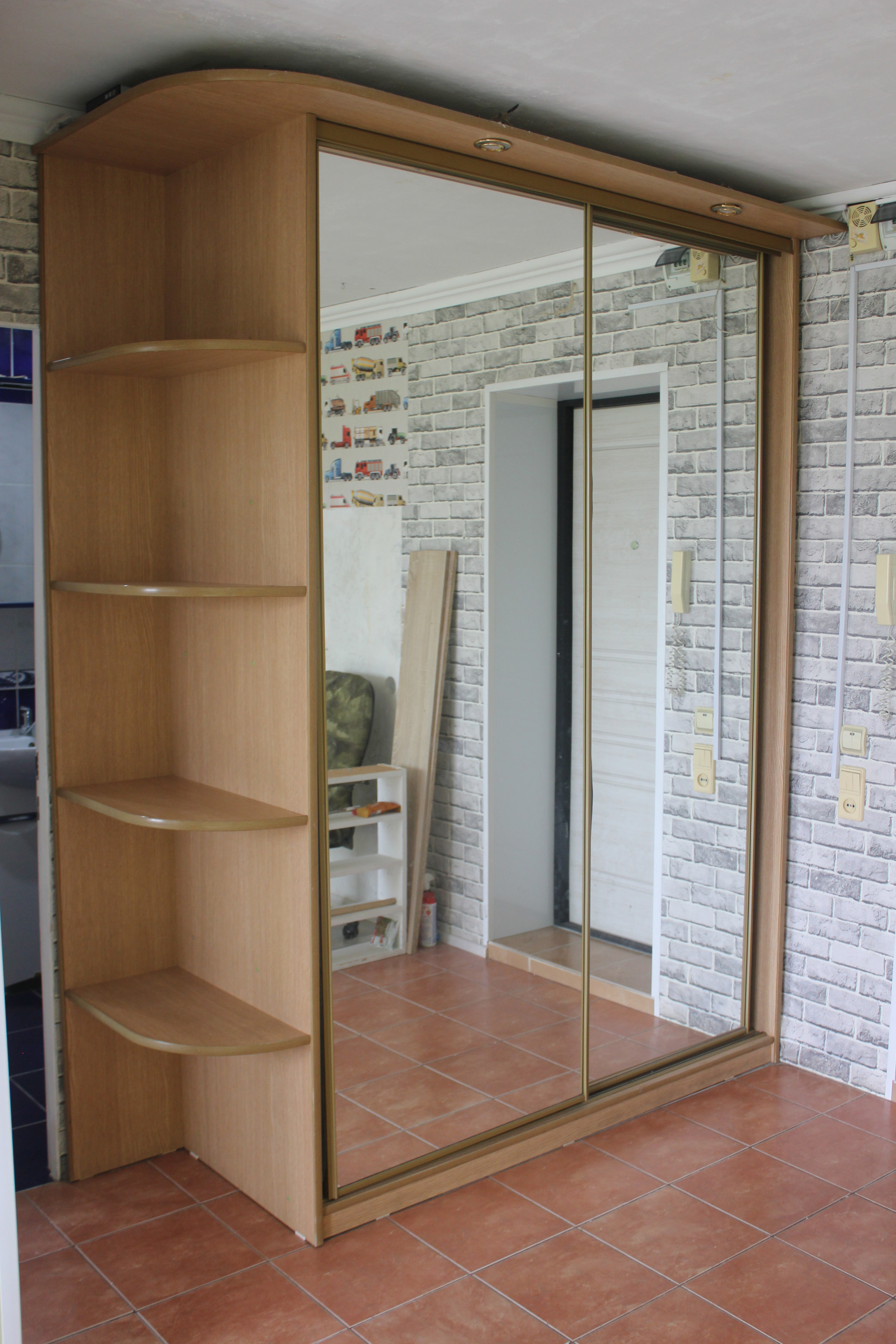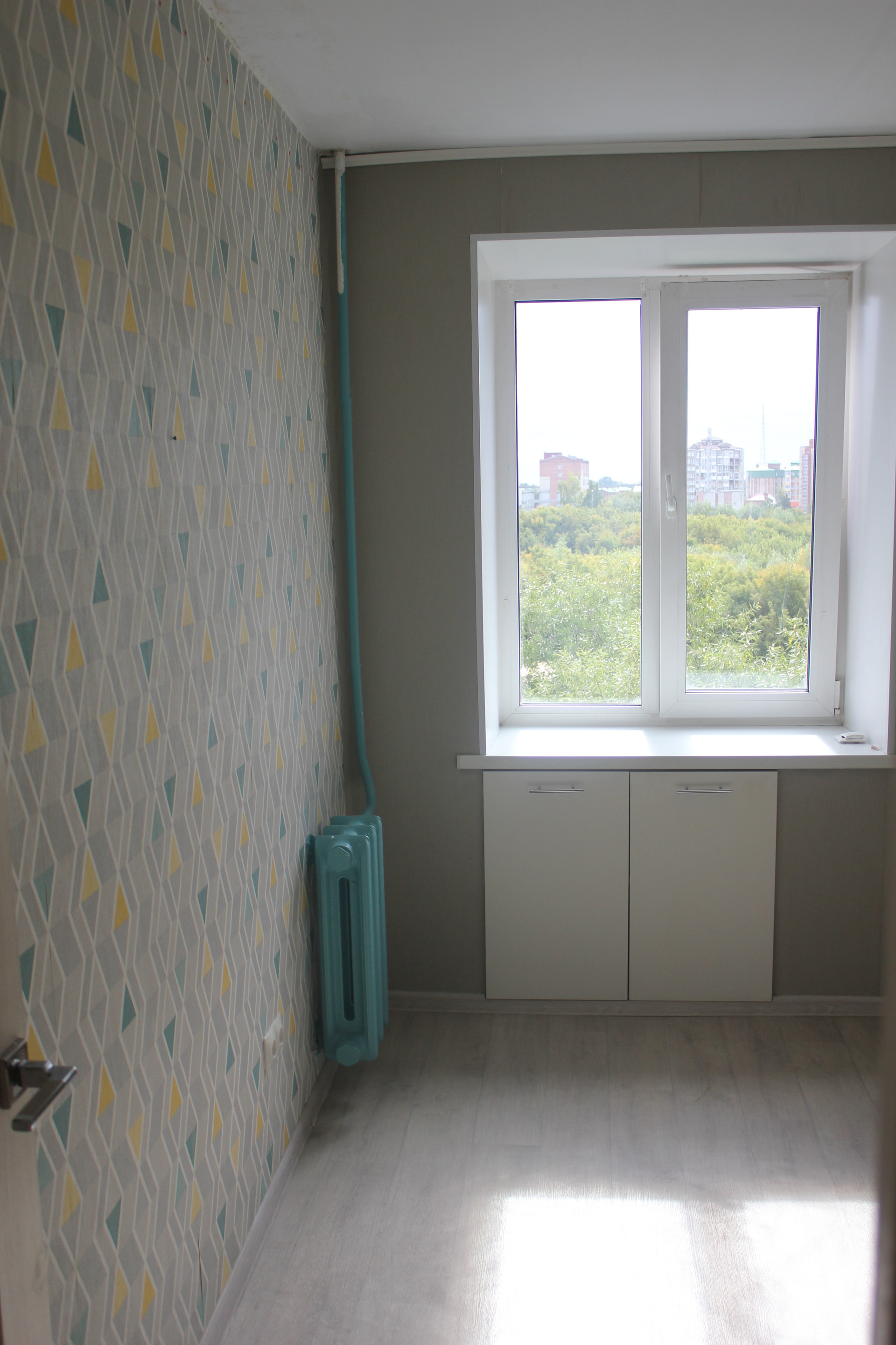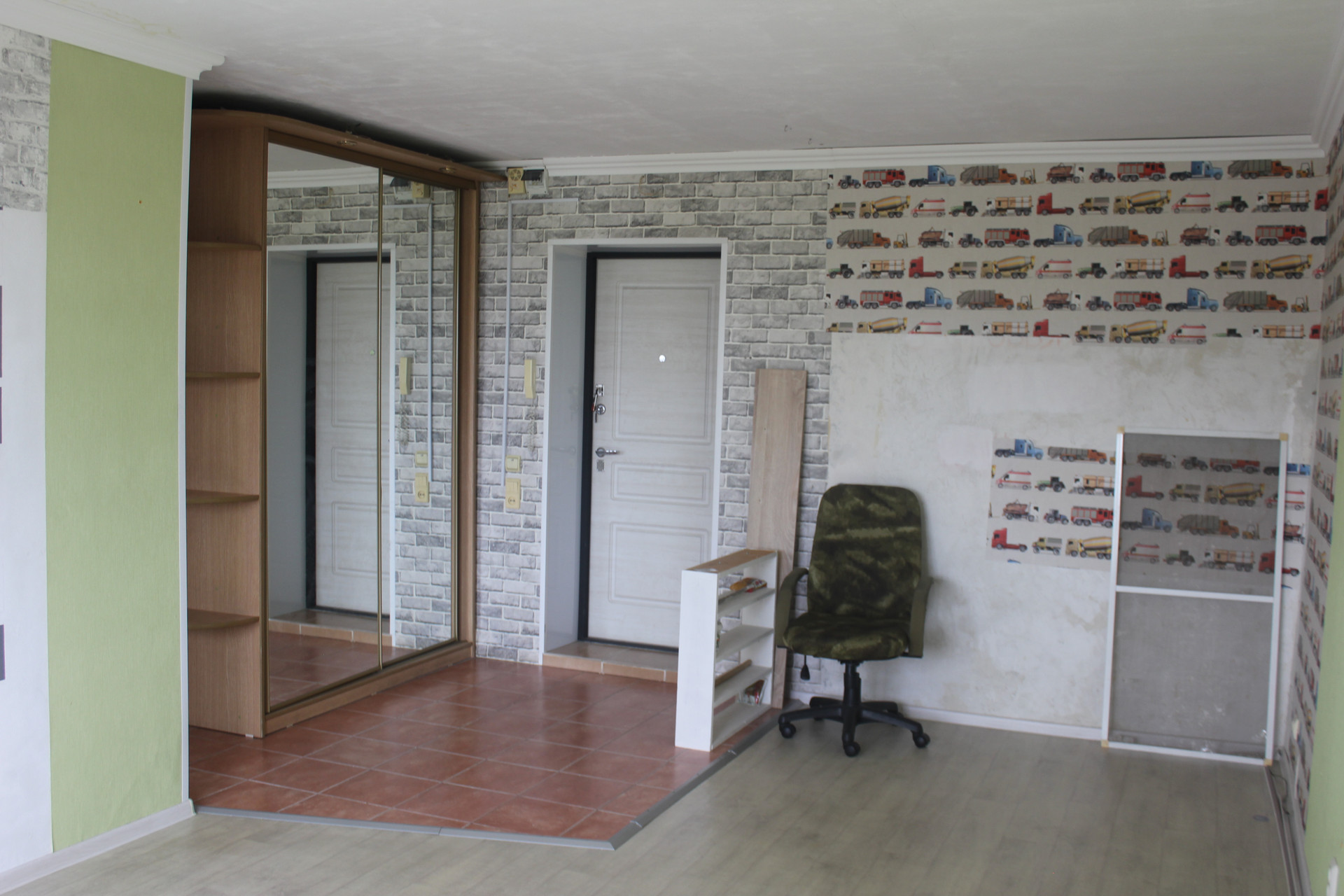 Установлены пластиковые окна, качественная входная дверь (фирмы Алмаз), на полу линолеум, санузел отделан керамической плиткой, установлена душевая кабина, унитаз, раковина. На кухне фартук облицован декоративной мозаикой. В коридоре вместительный шкаф-купе.