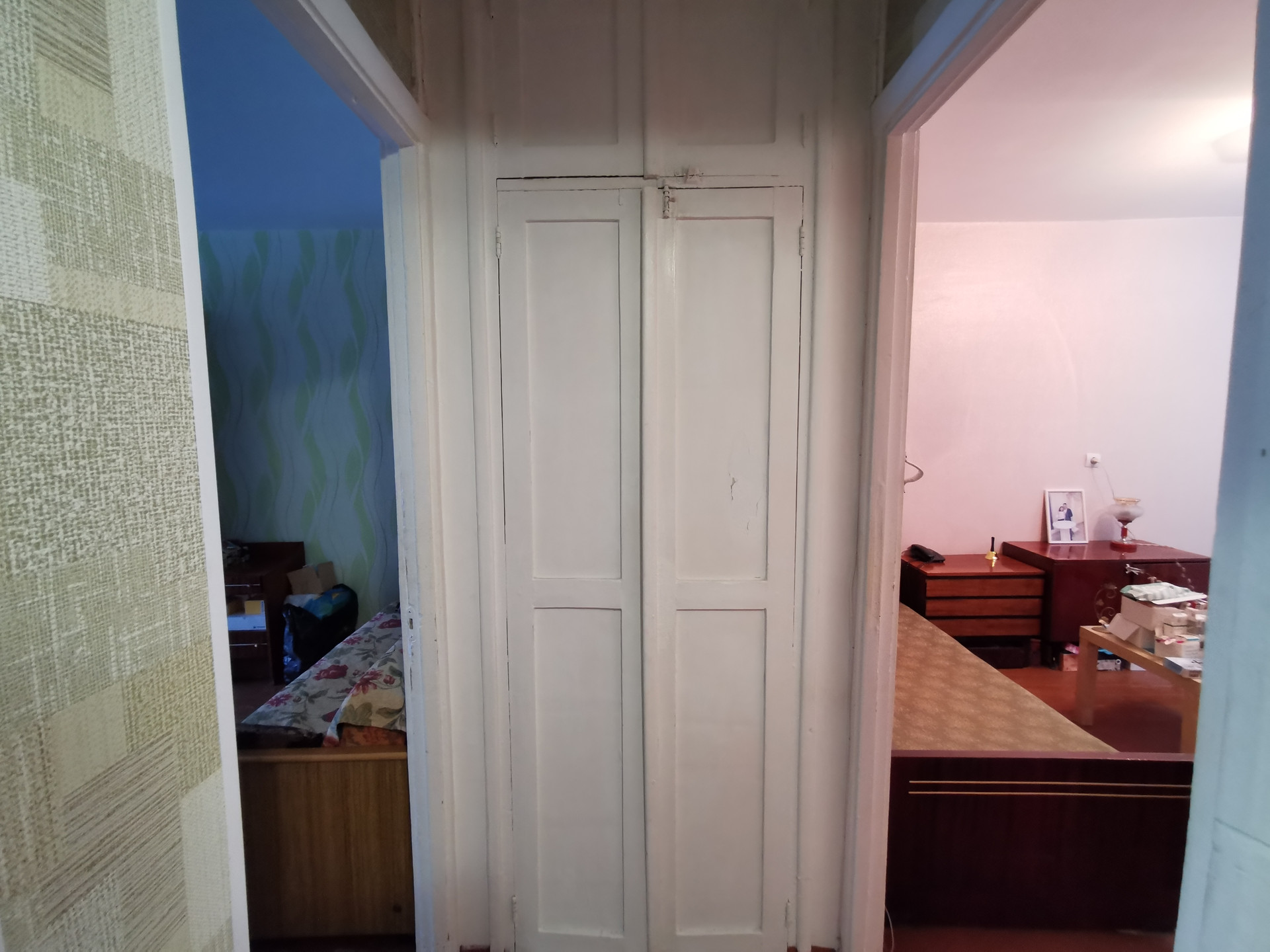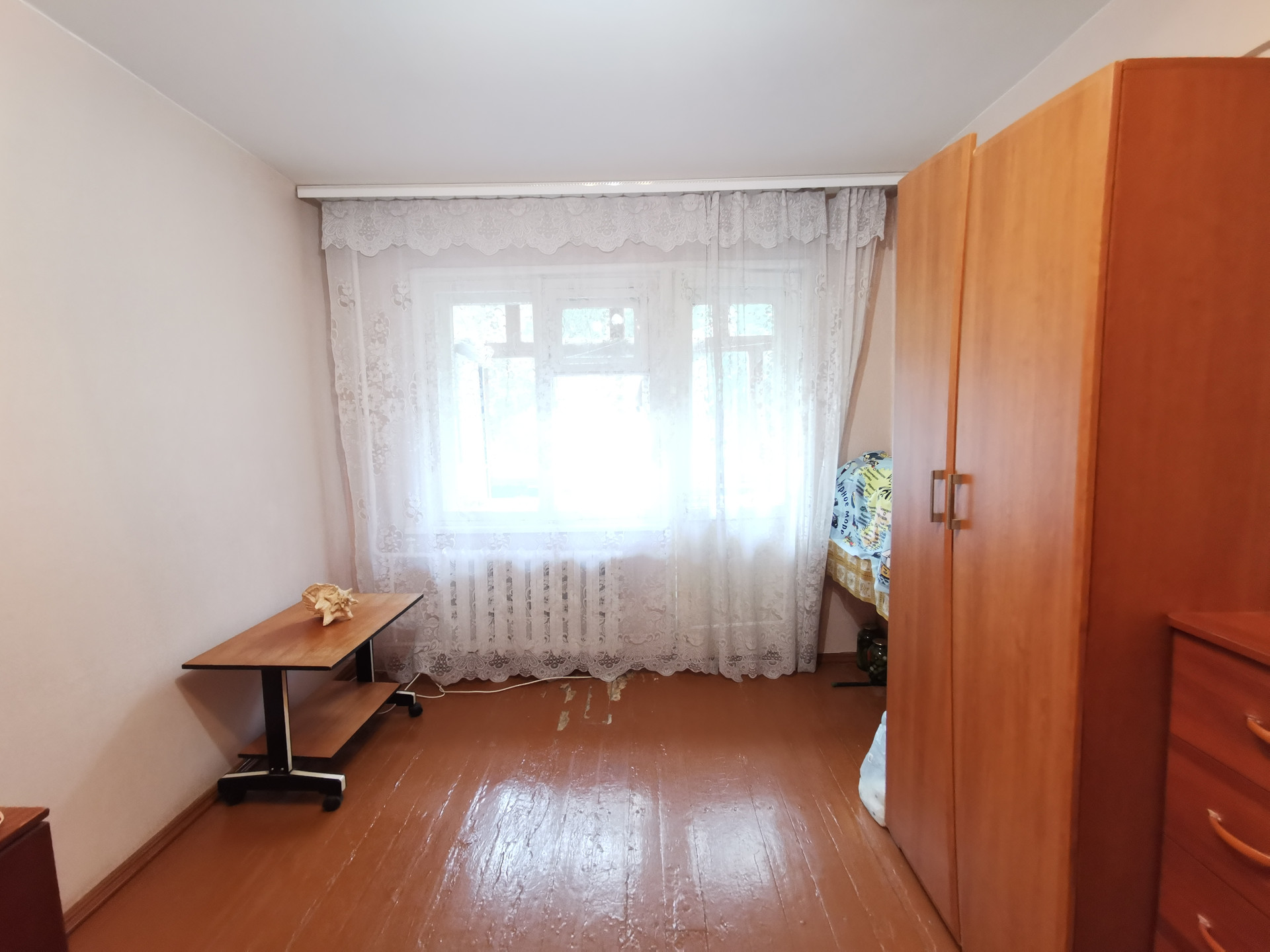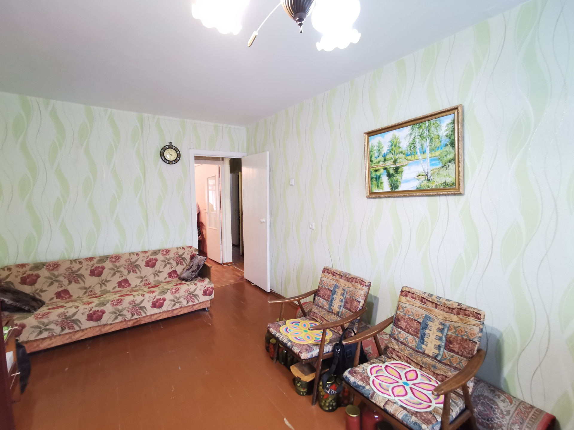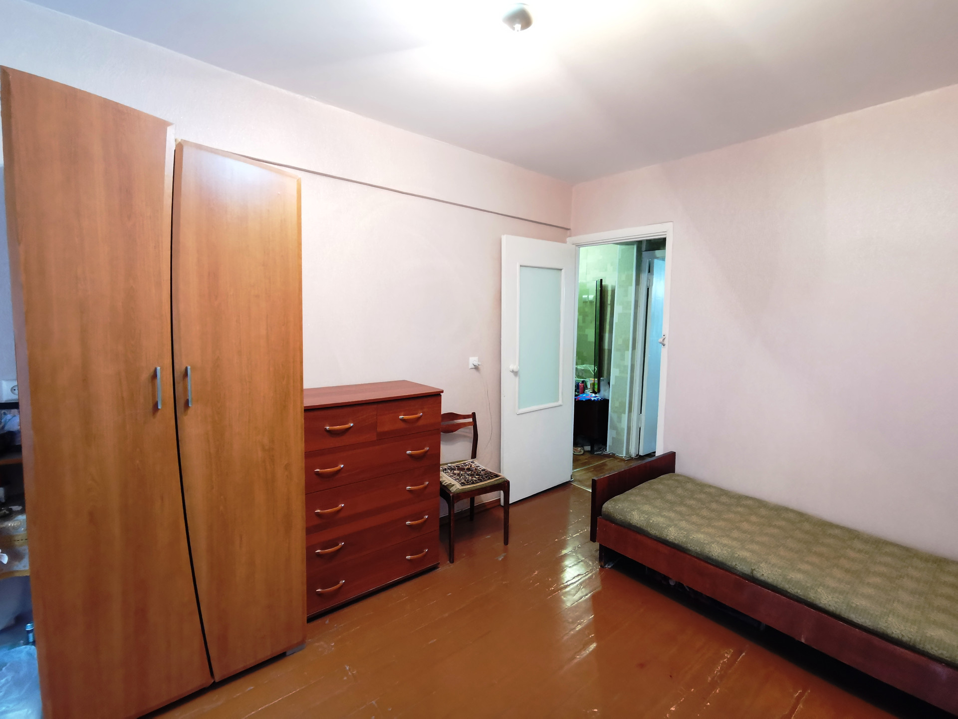 Планировка в квартире удобная: комнаты изолированы, между комнатами кладовая комната. Есть небольшой остекленный балкон для хранения заготовок или хозяйственного инвентаря.