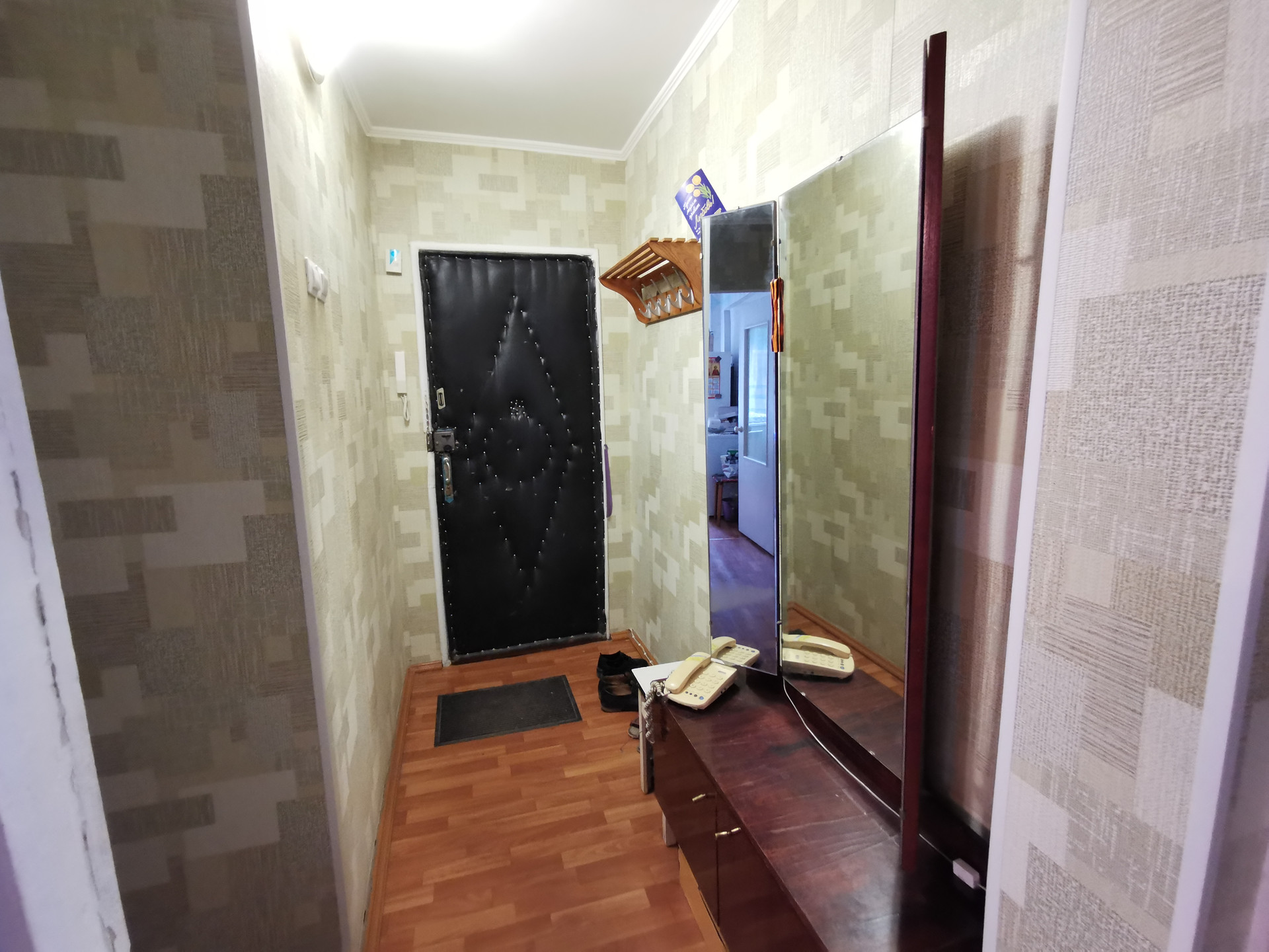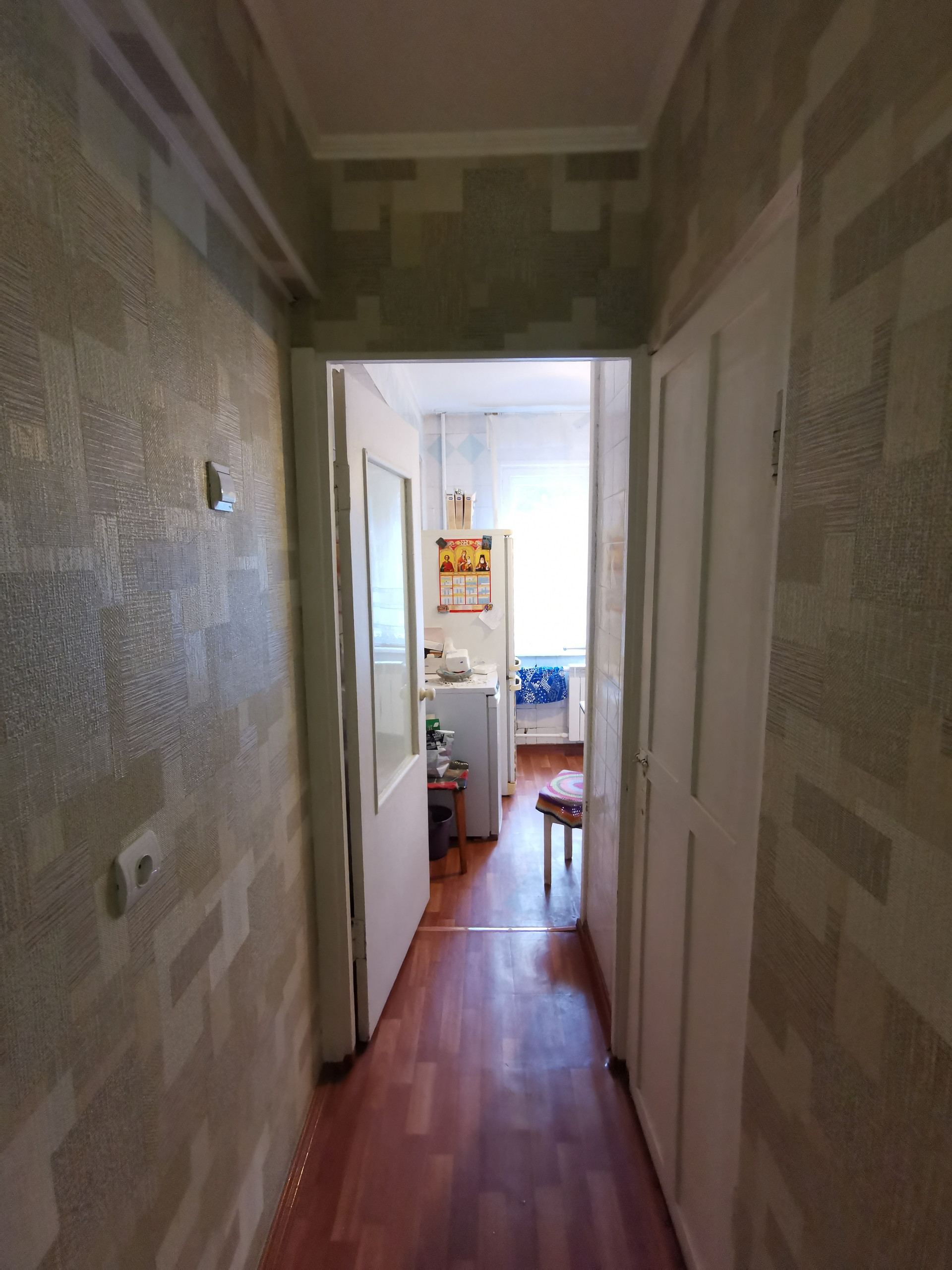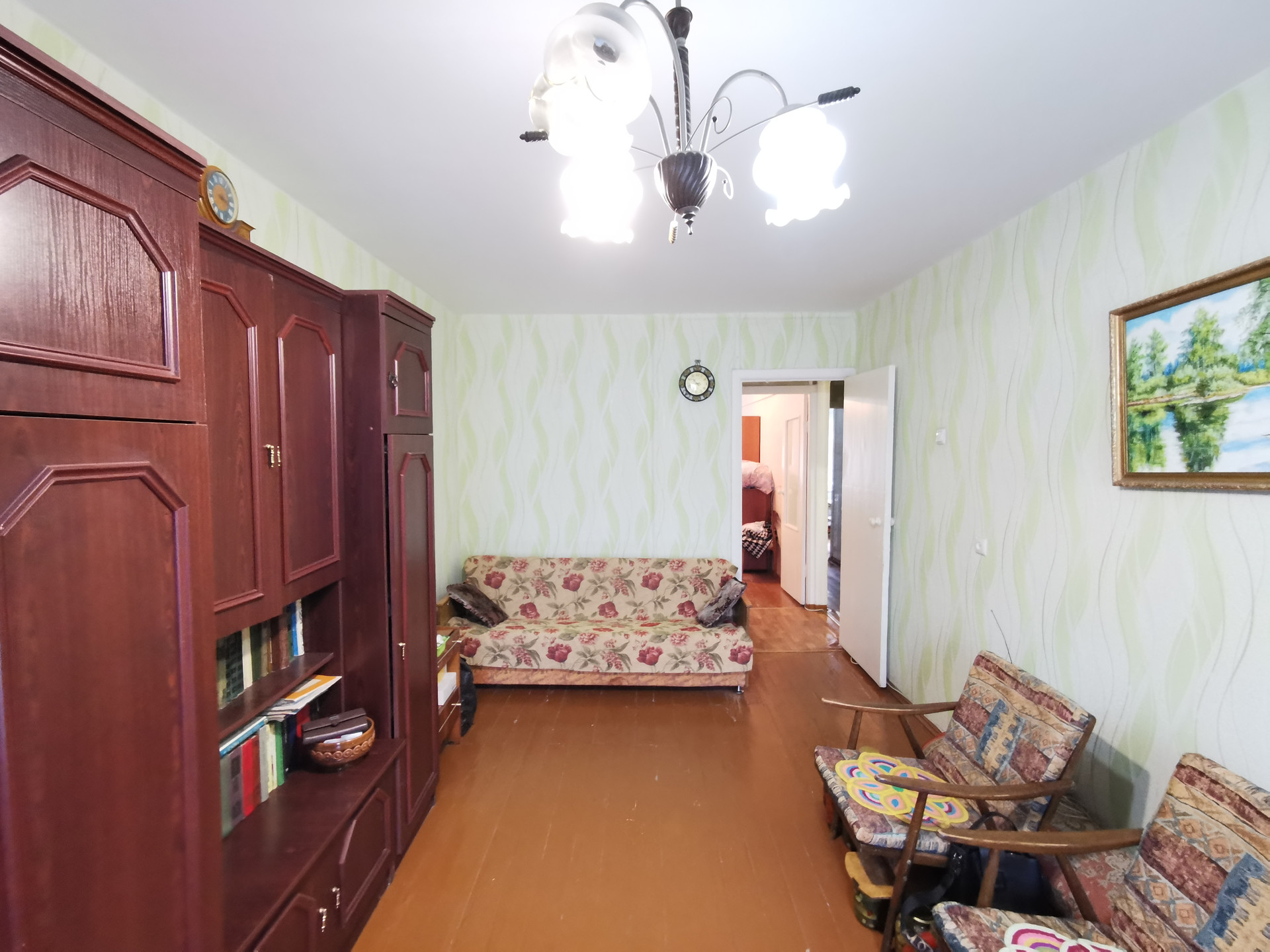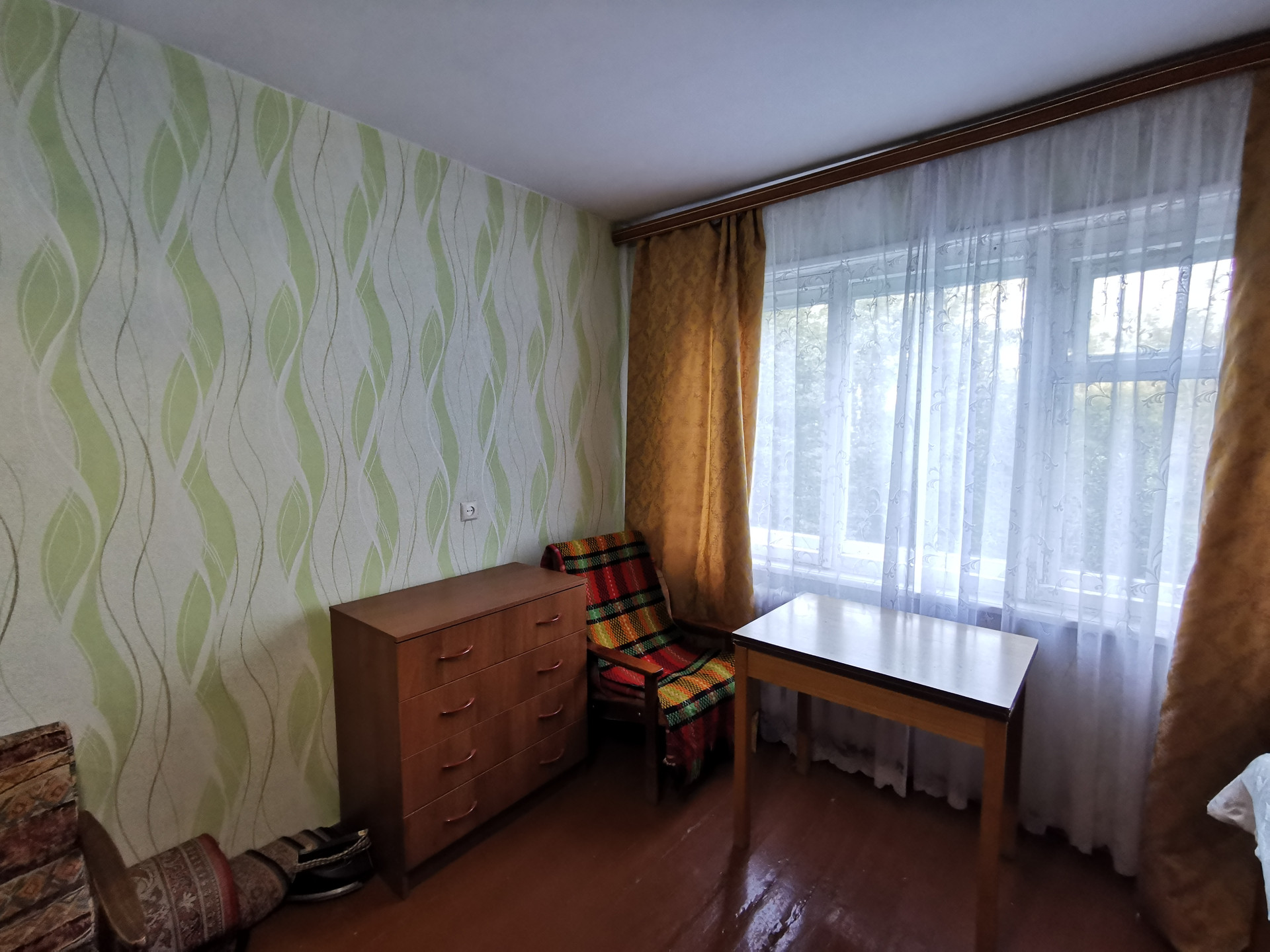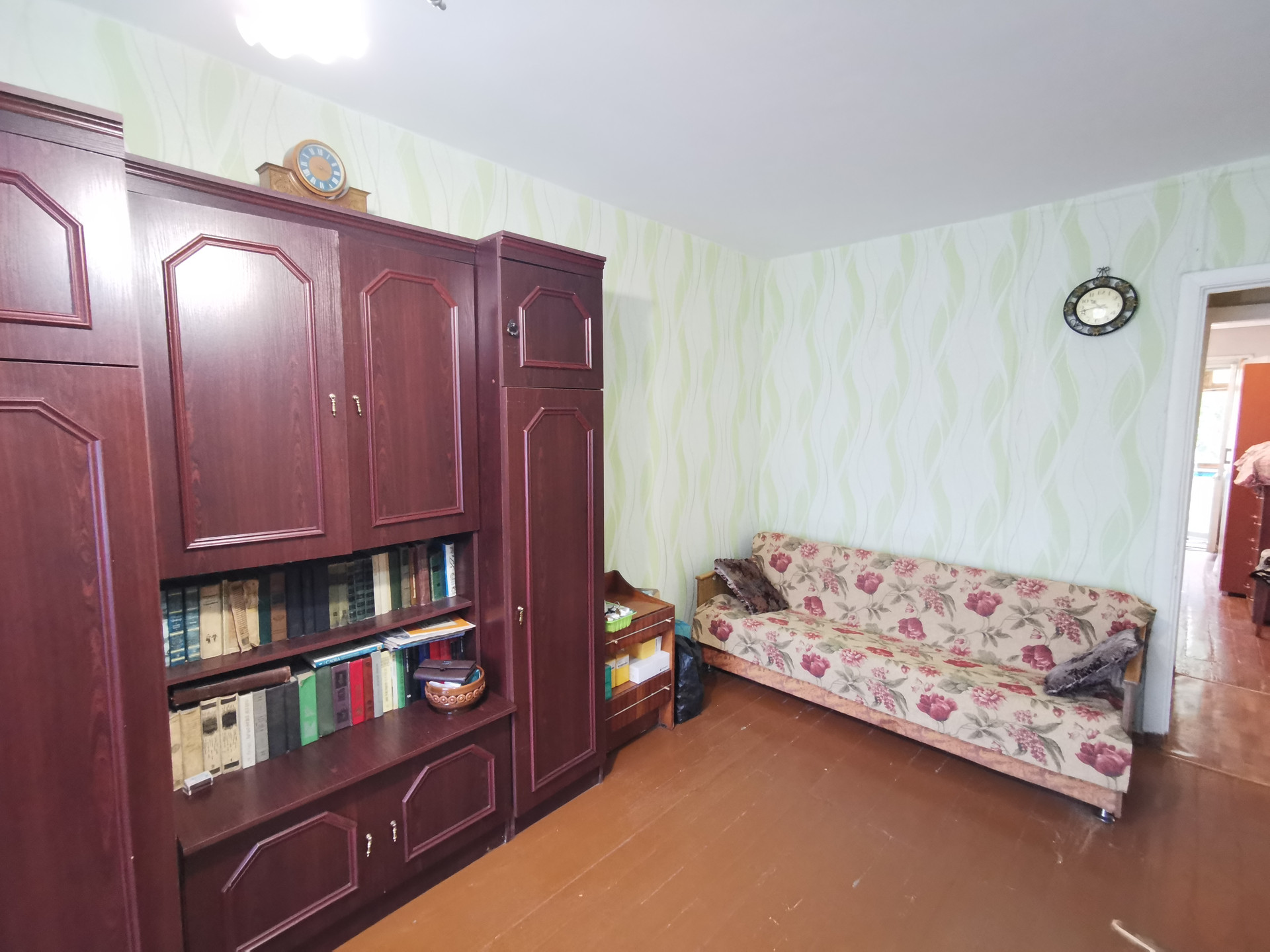 Планировка в квартире удобная: комнаты изолированы, между комнатами кладовая комната. Есть небольшой остекленный балкон для хранения заготовок или хозяйственного инвентаря.