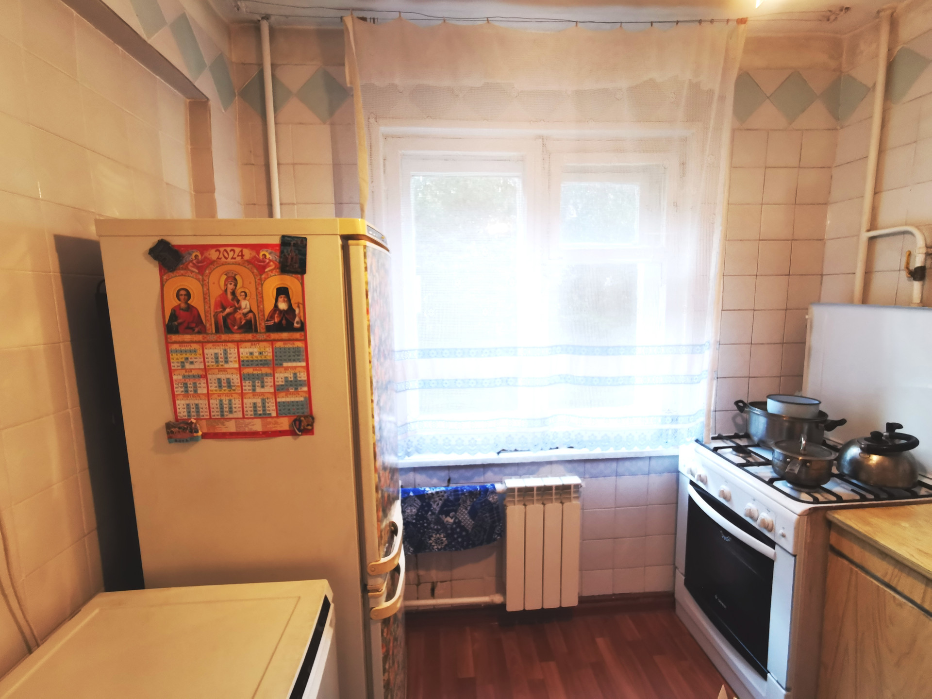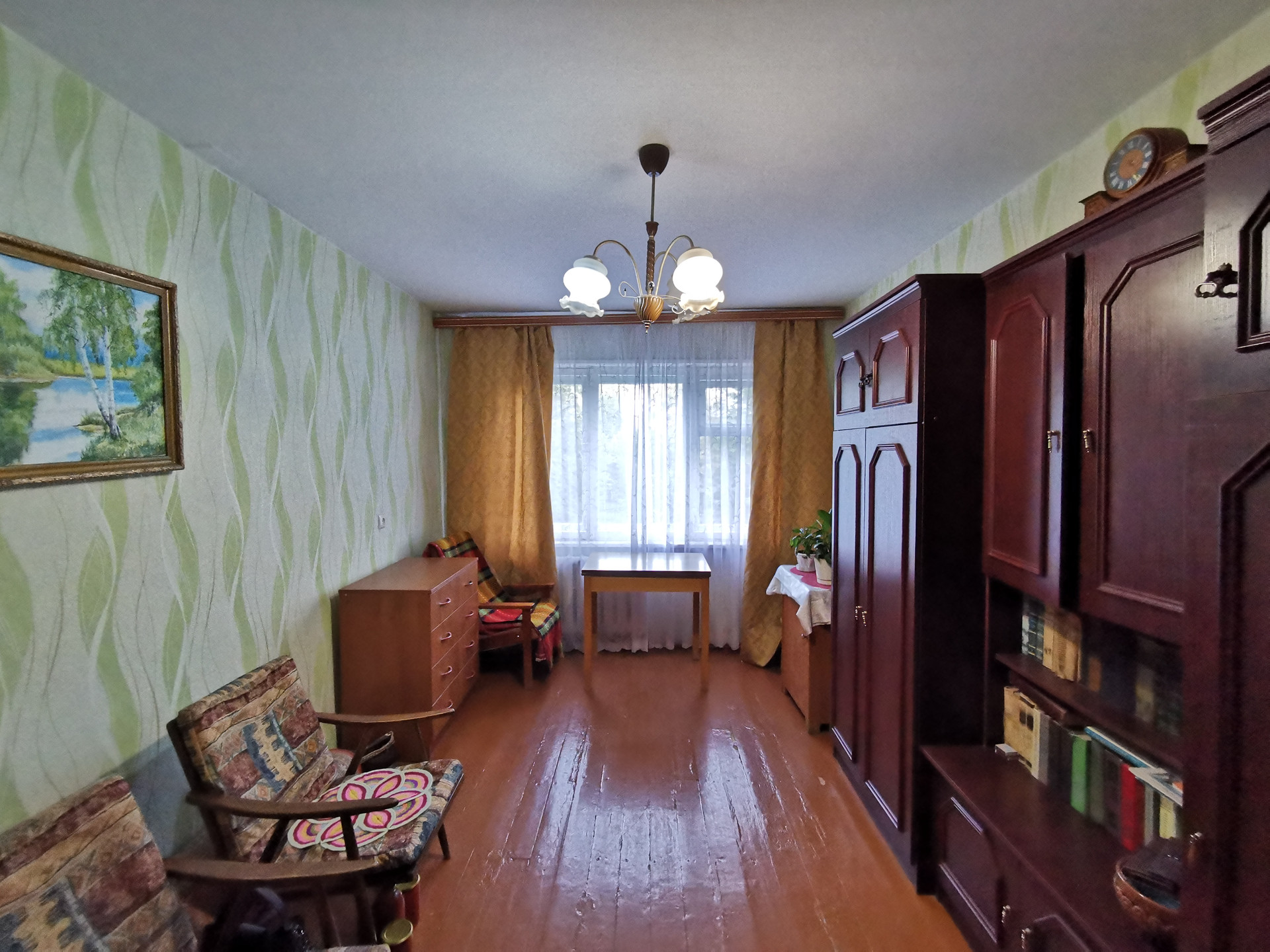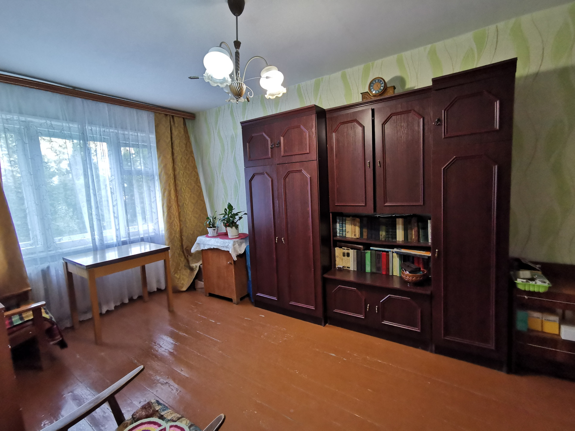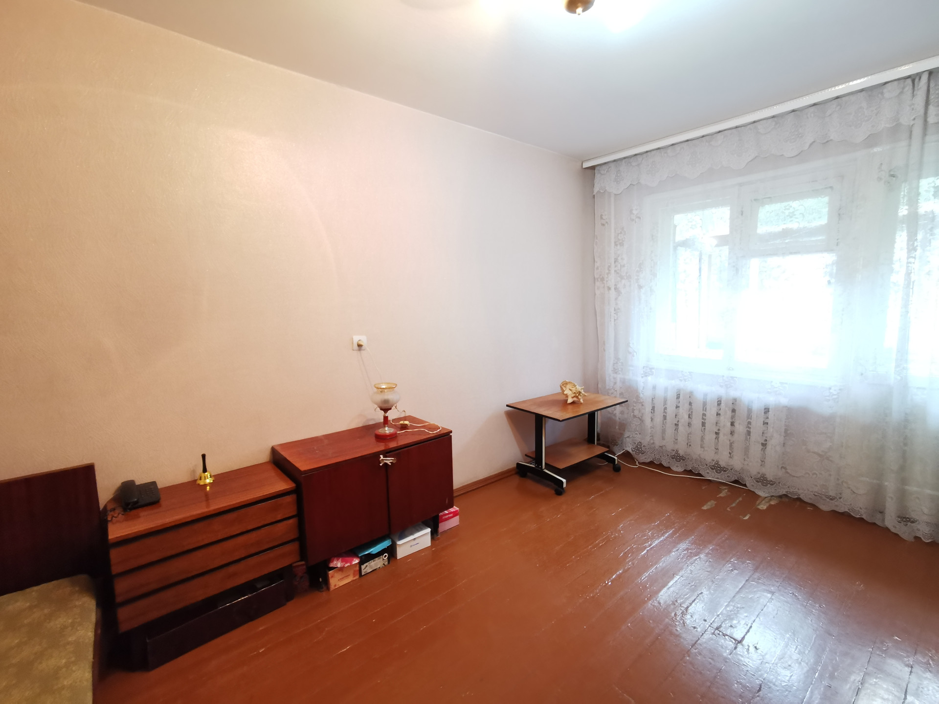 Планировка в квартире удобная: комнаты изолированы, между комнатами кладовая комната. Есть небольшой остекленный балкон для хранения заготовок или хозяйственного инвентаря.