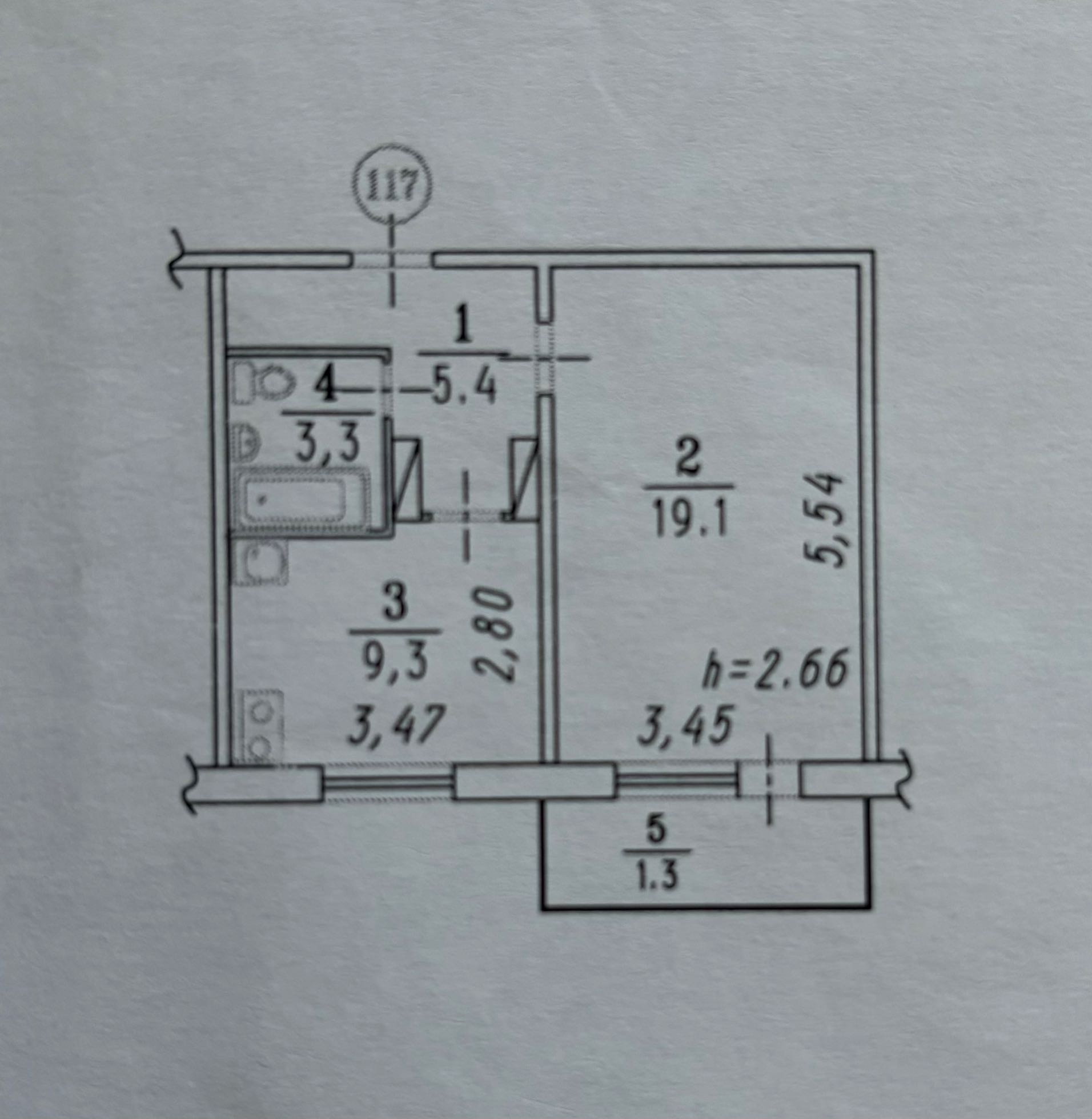 Жилая площадь составляет 19.1 квадратных метров, кухня – 9.3 квадратных метров .