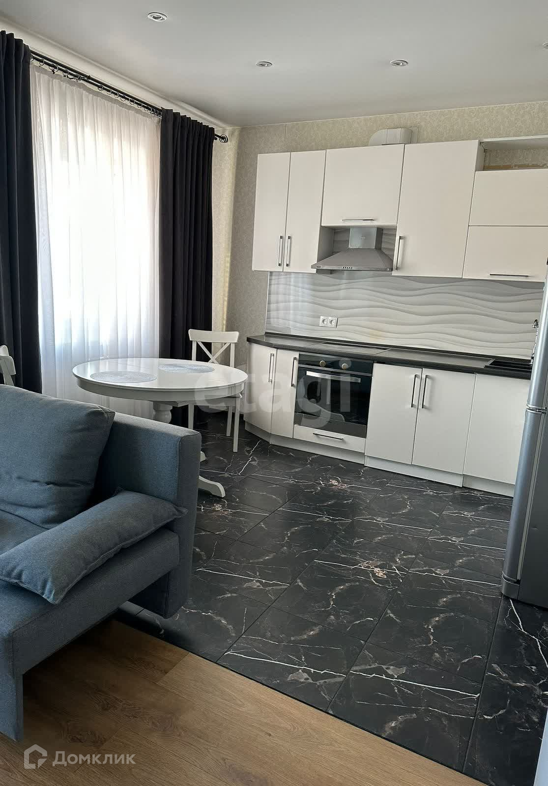 В квартире остается вся техника - новейшая кухня с встроенной техникой, включая холодильник, плиту и духовку, а также стиральная машина, что делает её идеальным вариантом для комфортной жизни.