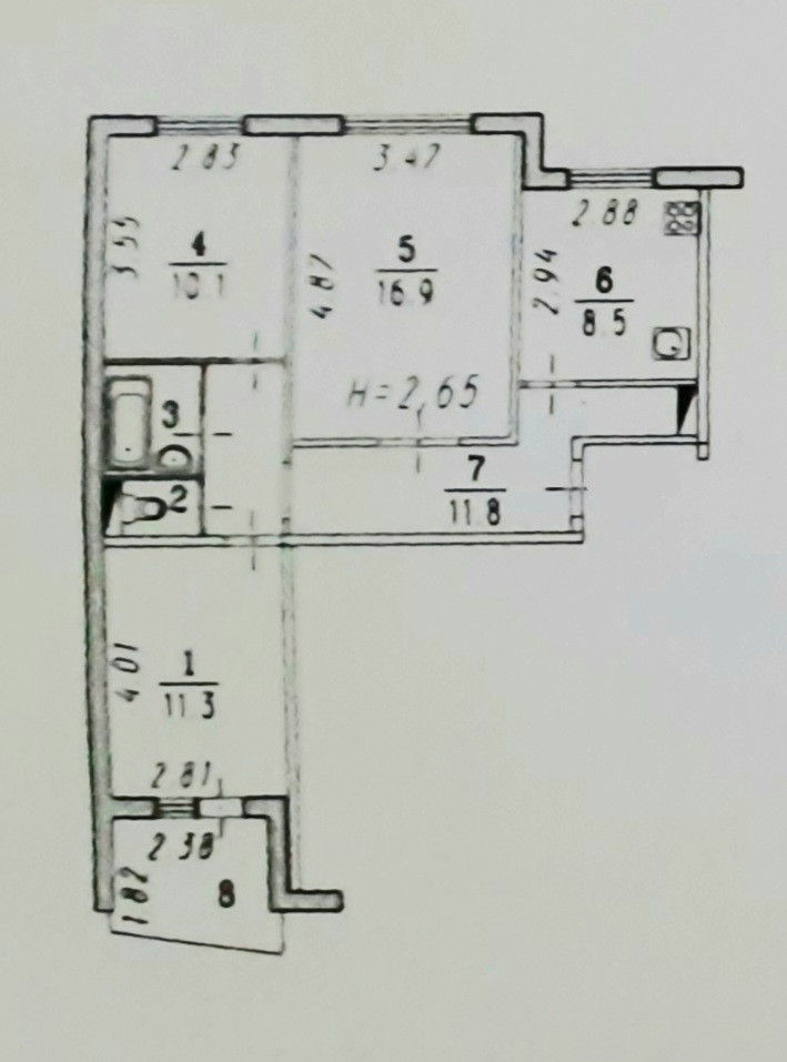 Жилая площадь 38.3 м2