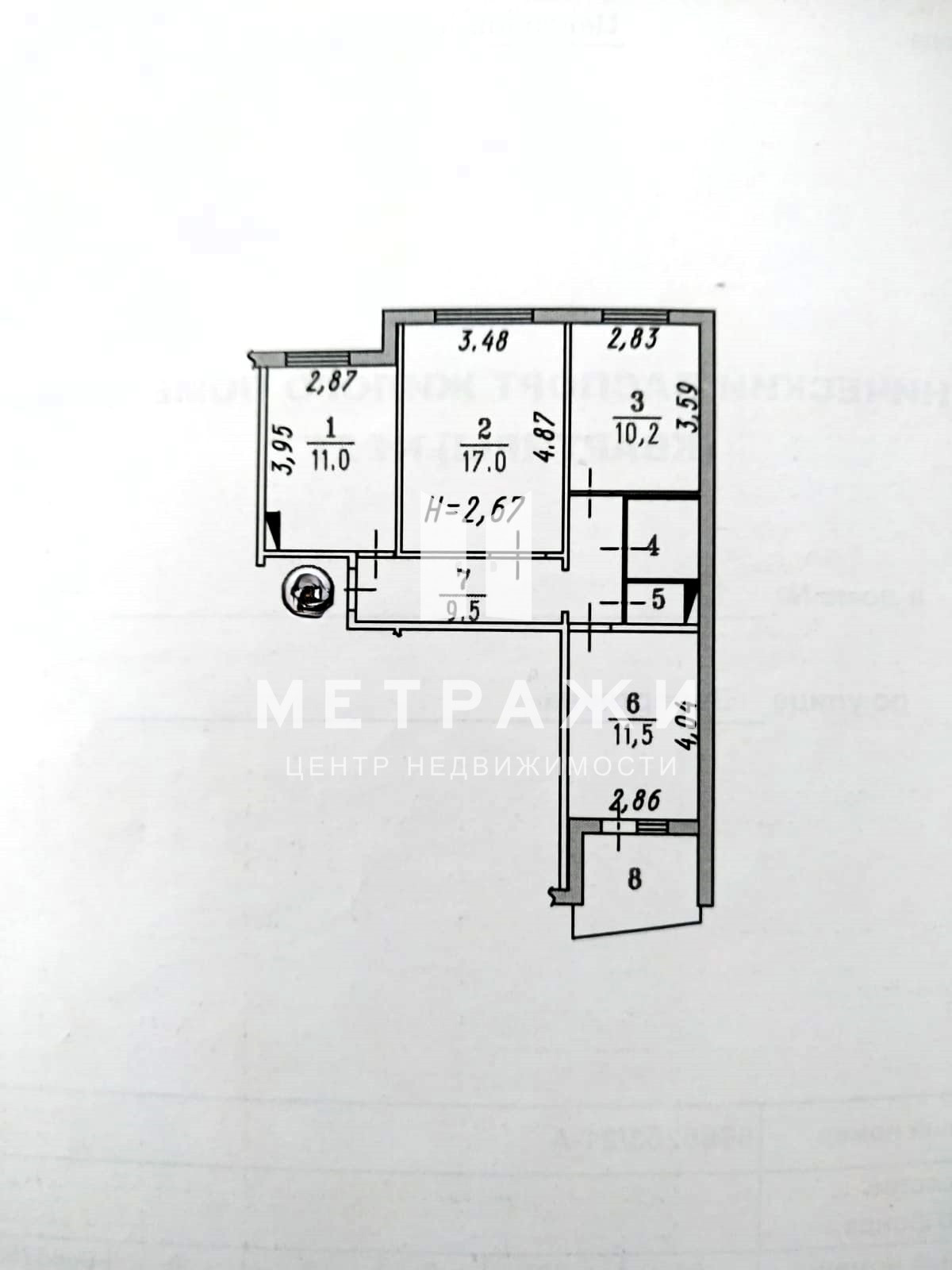 Жилая площадь 38.7 м2