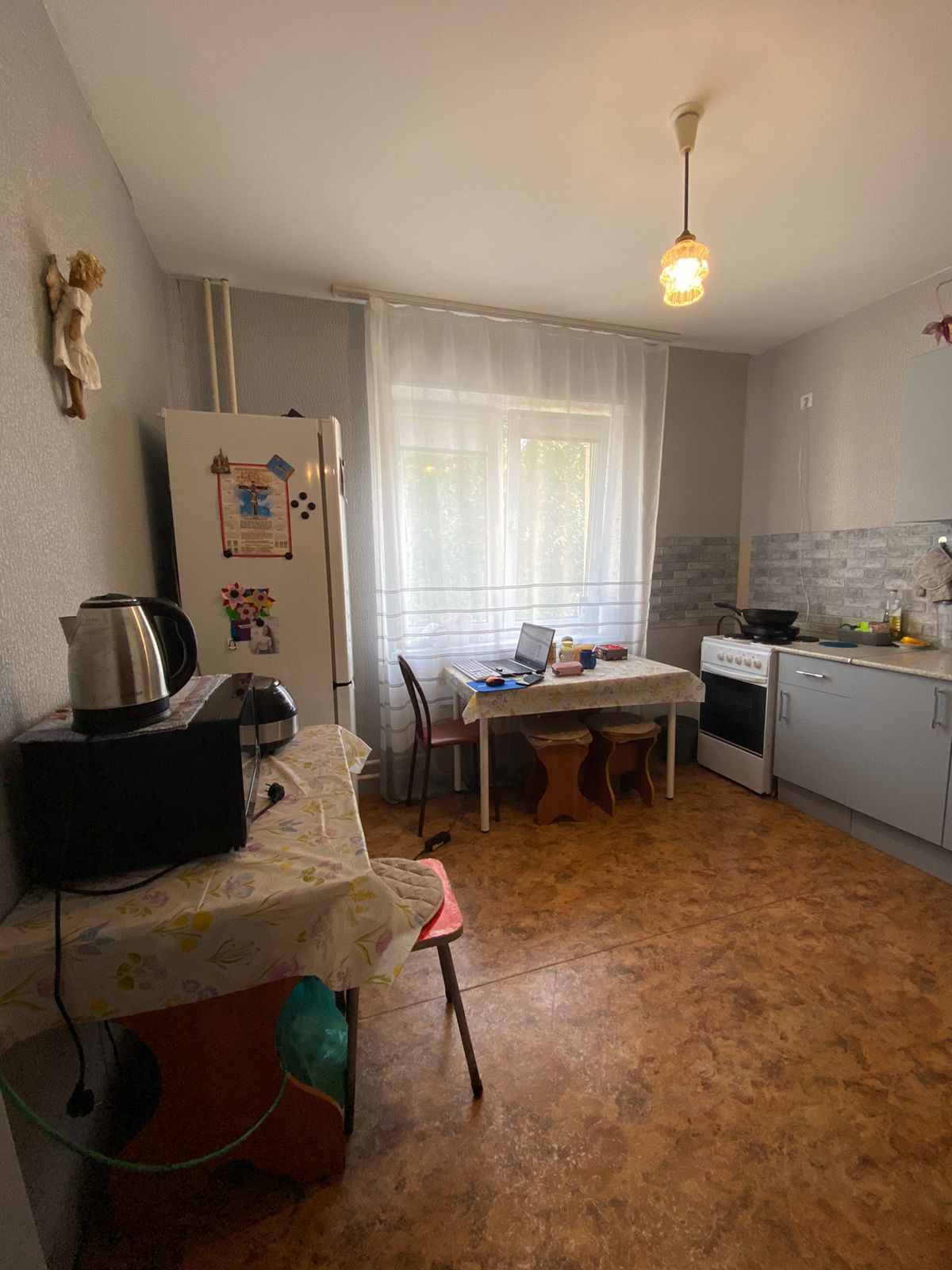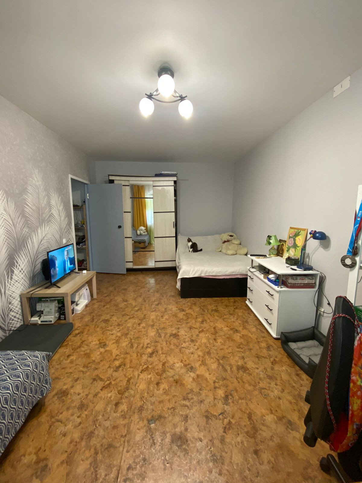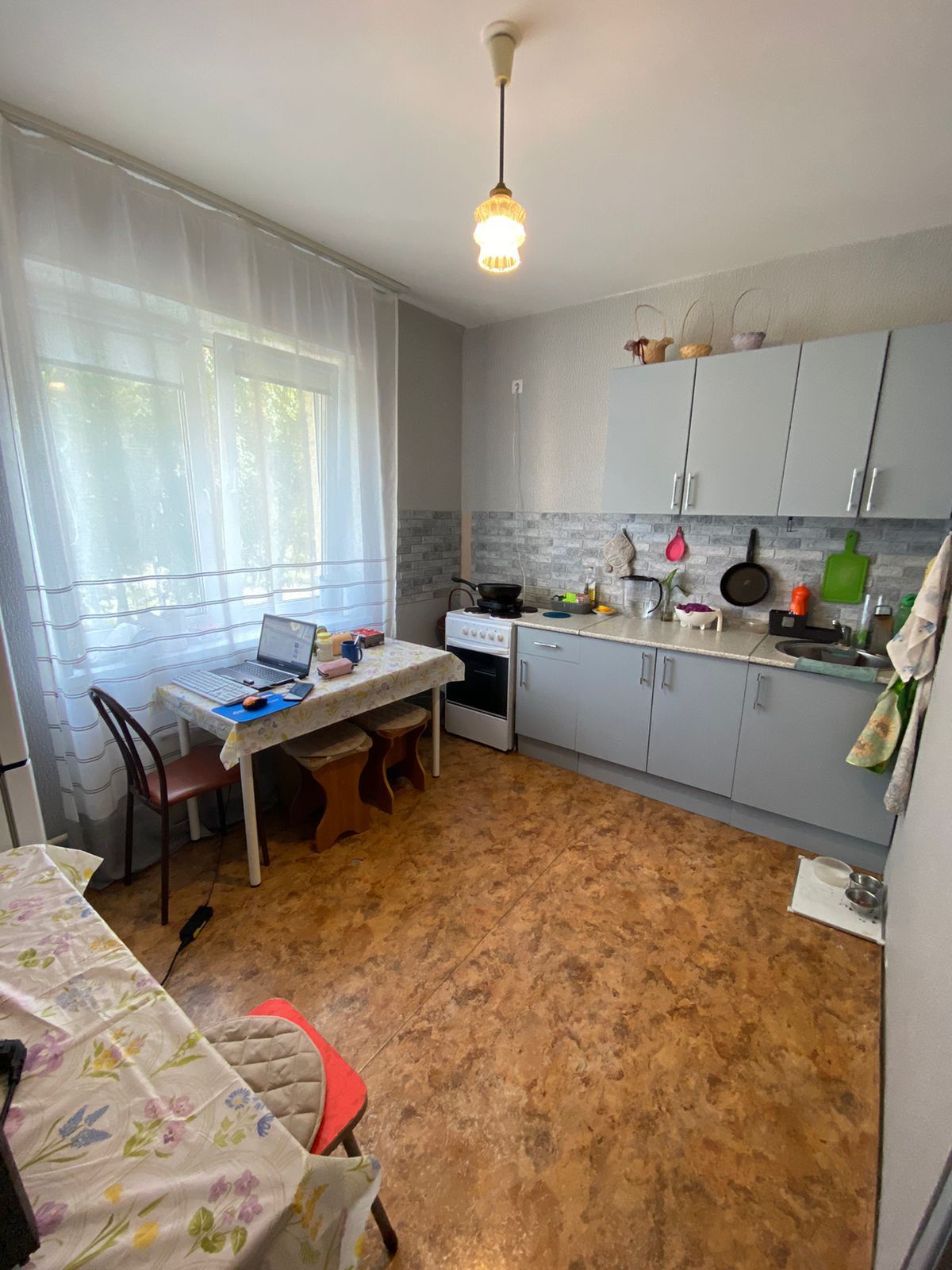 Квартира улучшенной планировки с просторной кухней, где можно также оборудовать дополнительное спальное место. В квартире сделан косметический ремонт