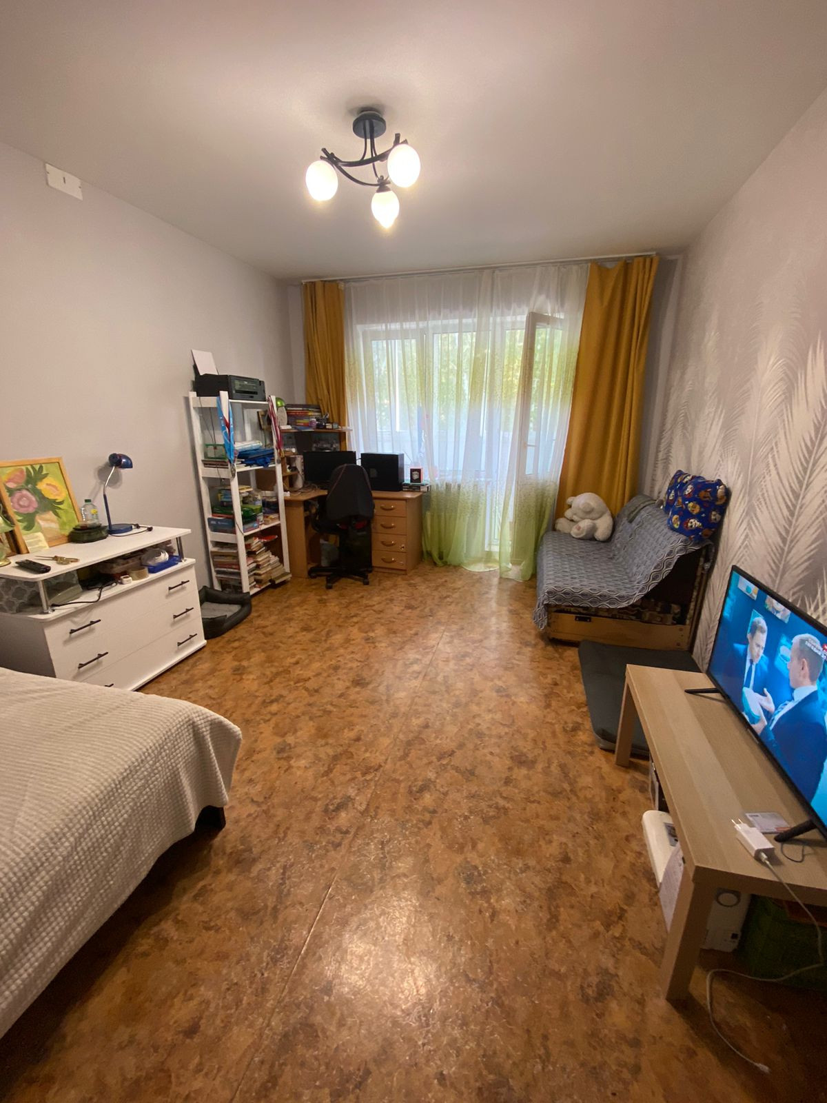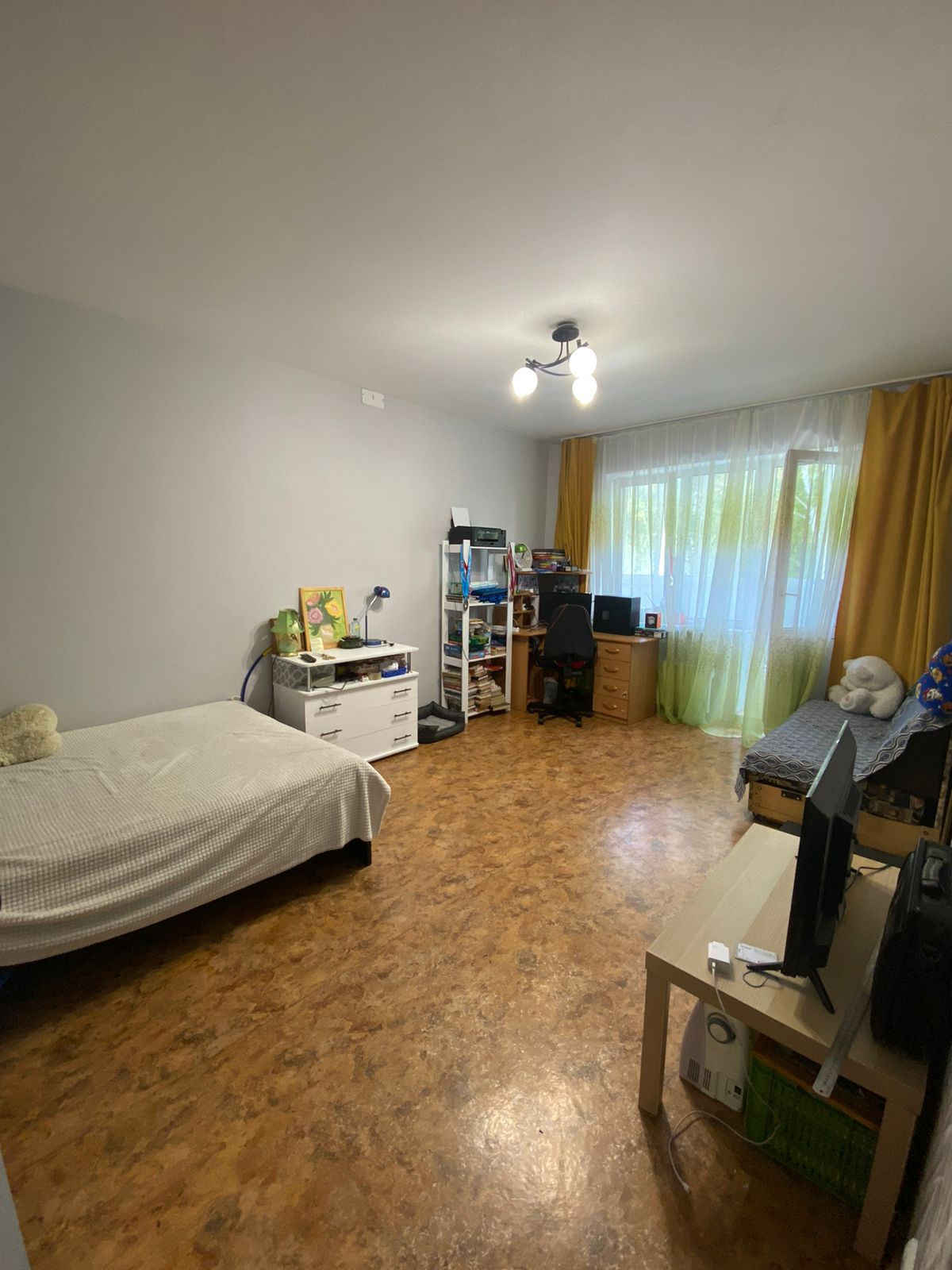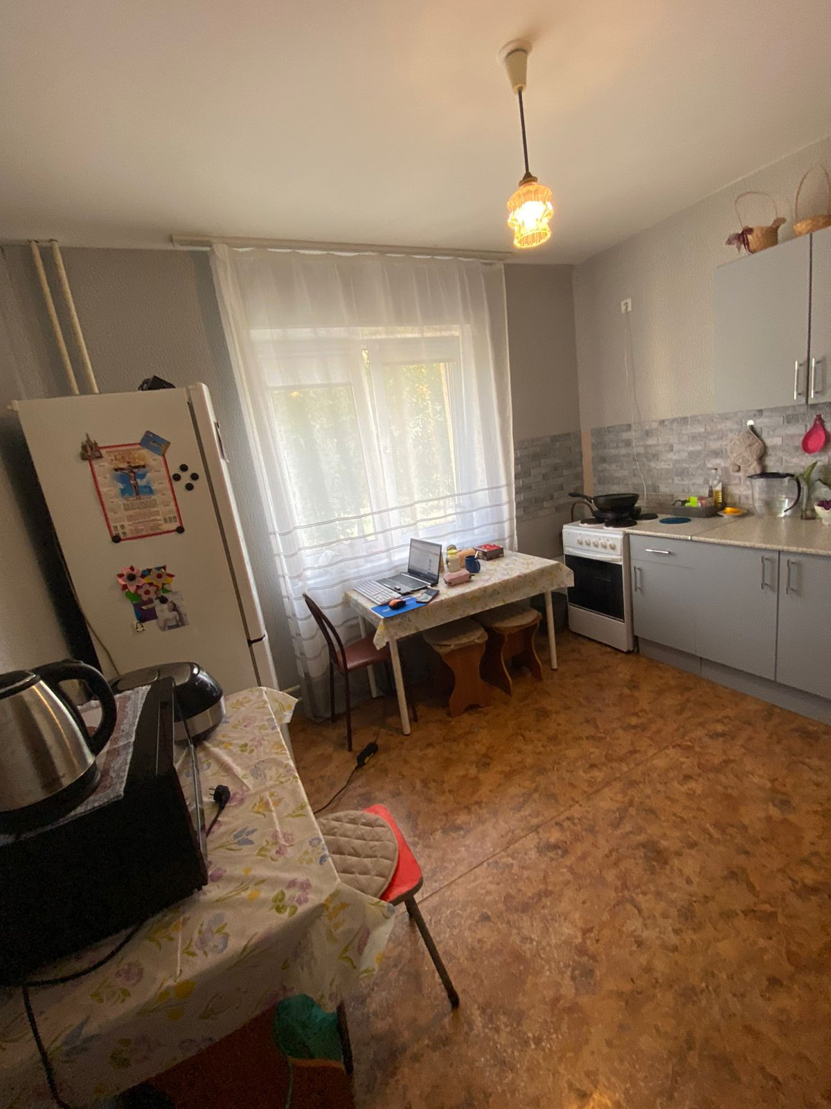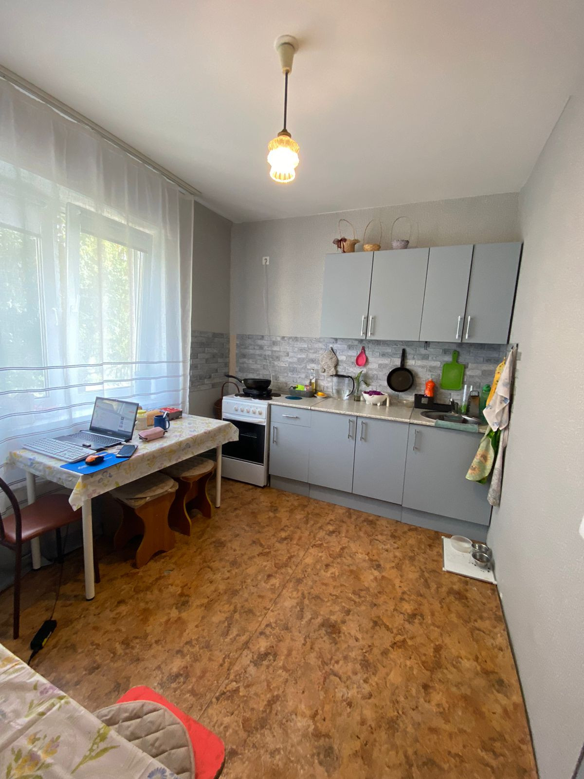 Квартира улучшенной планировки с просторной кухней, где можно также оборудовать дополнительное спальное место. В квартире сделан косметический ремонт