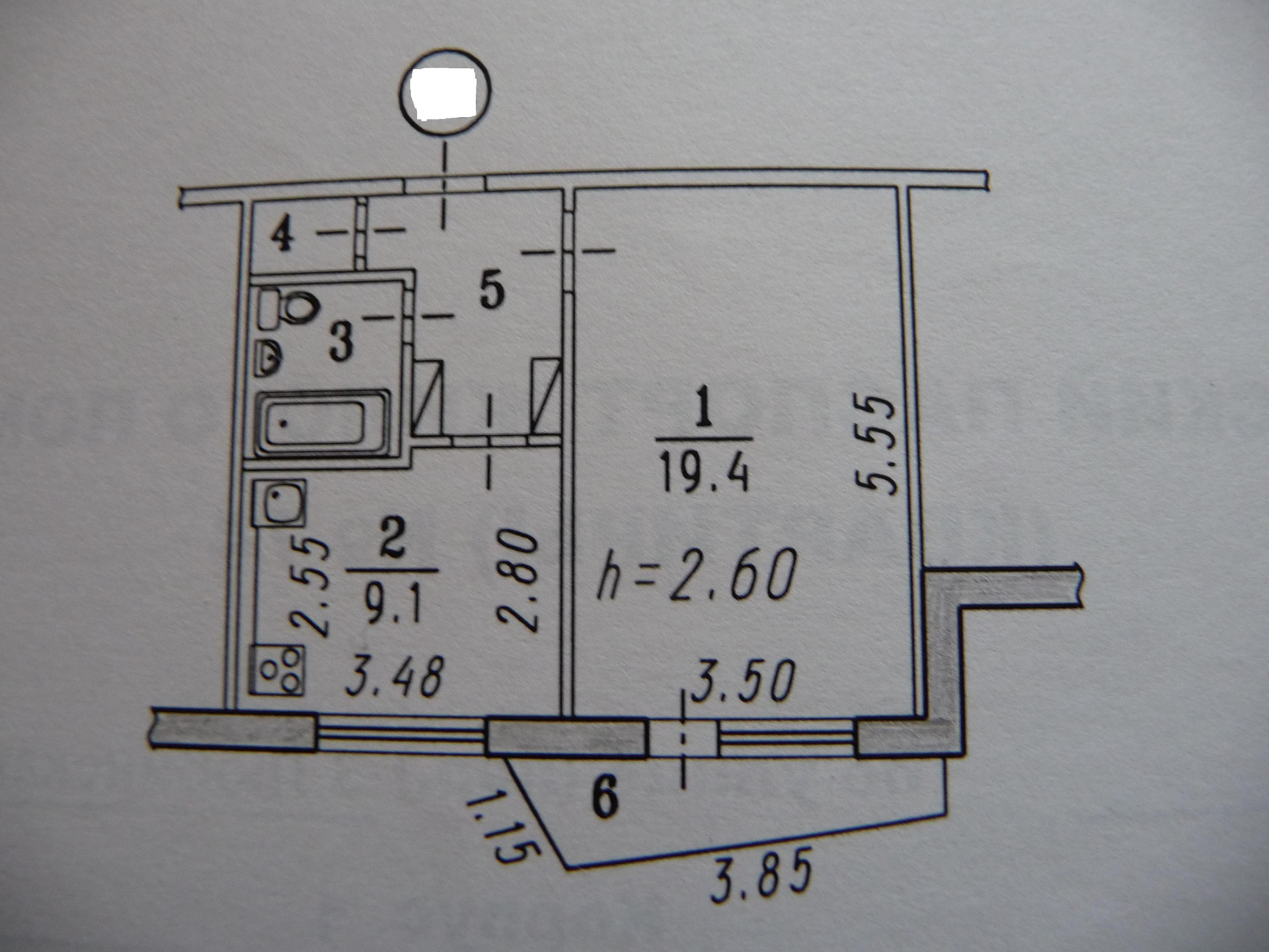 Балкон, лоджия 1 балкон