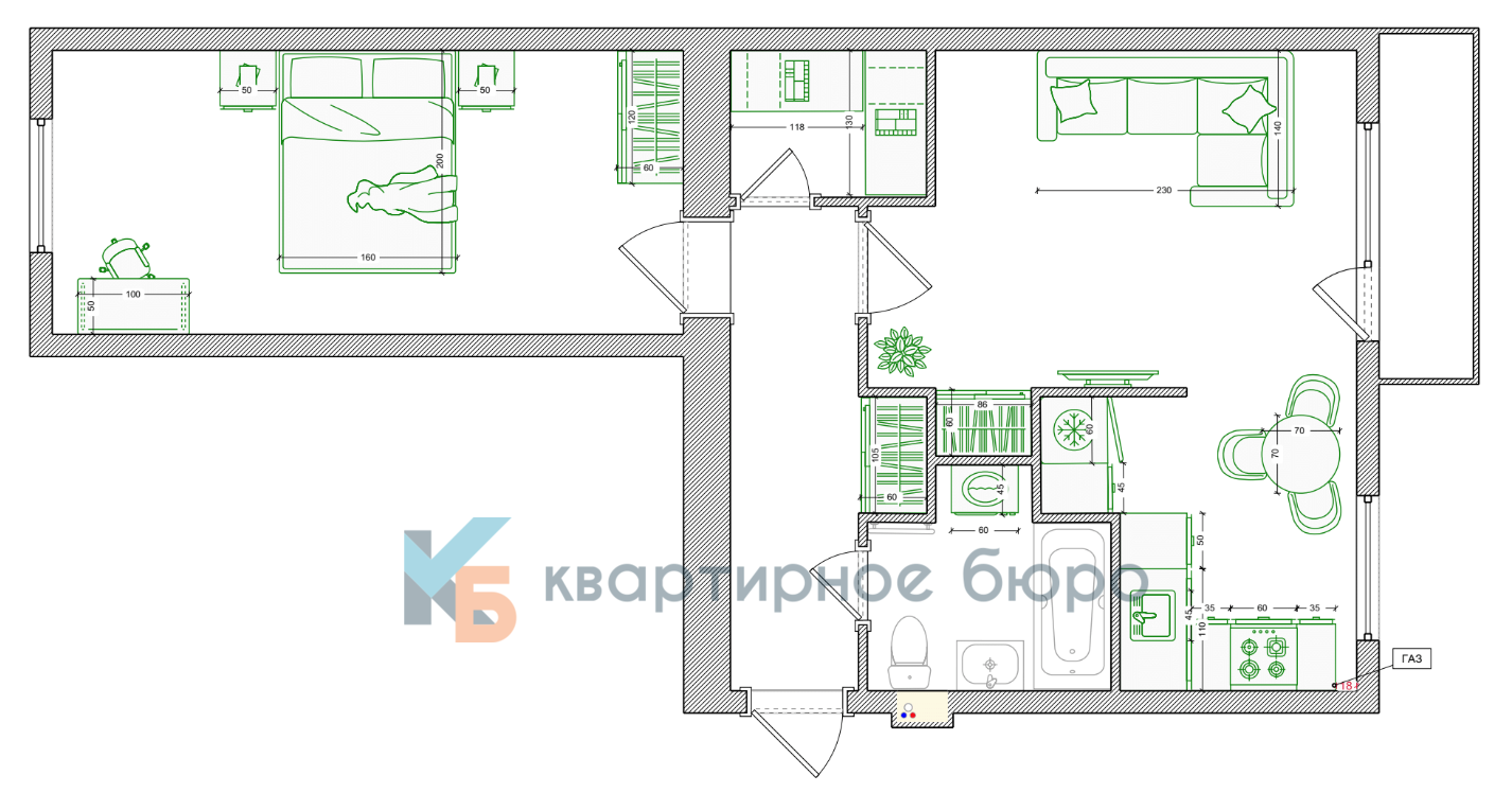 - в квартире реализована эргономичная планировка для комфортной жизни, предусматривающая удобное пользование кухней, наличие мест хранения.