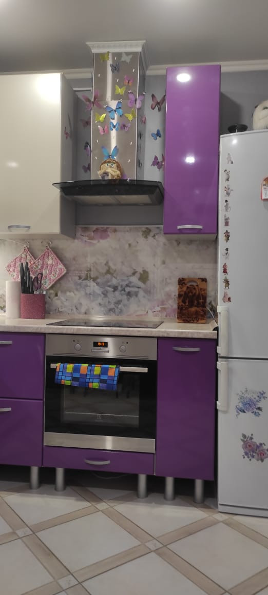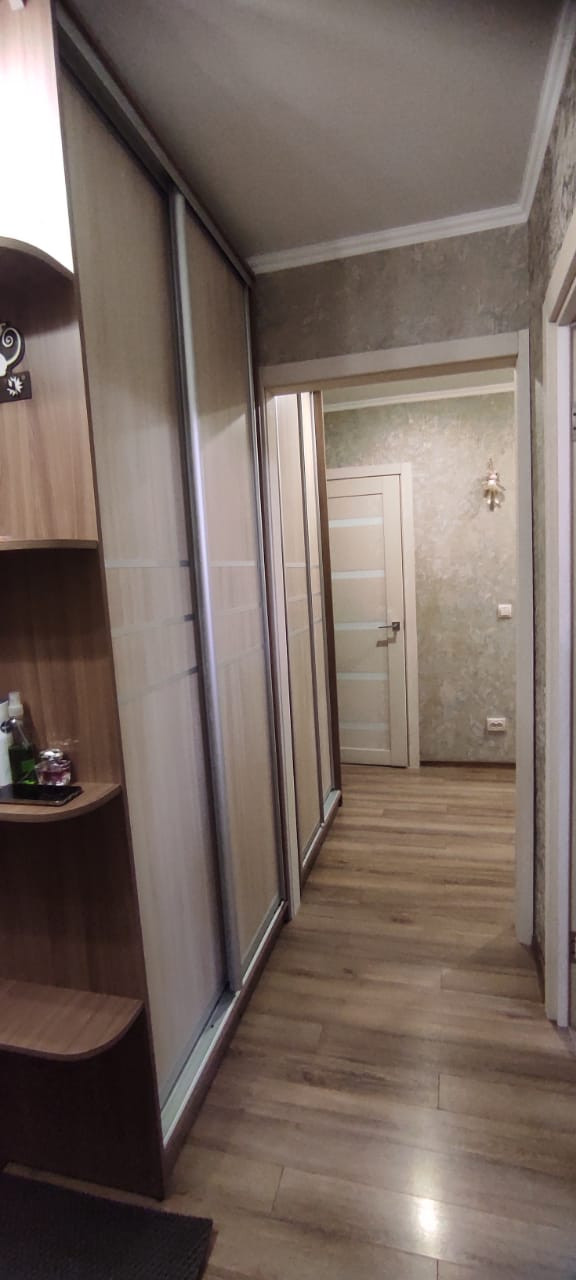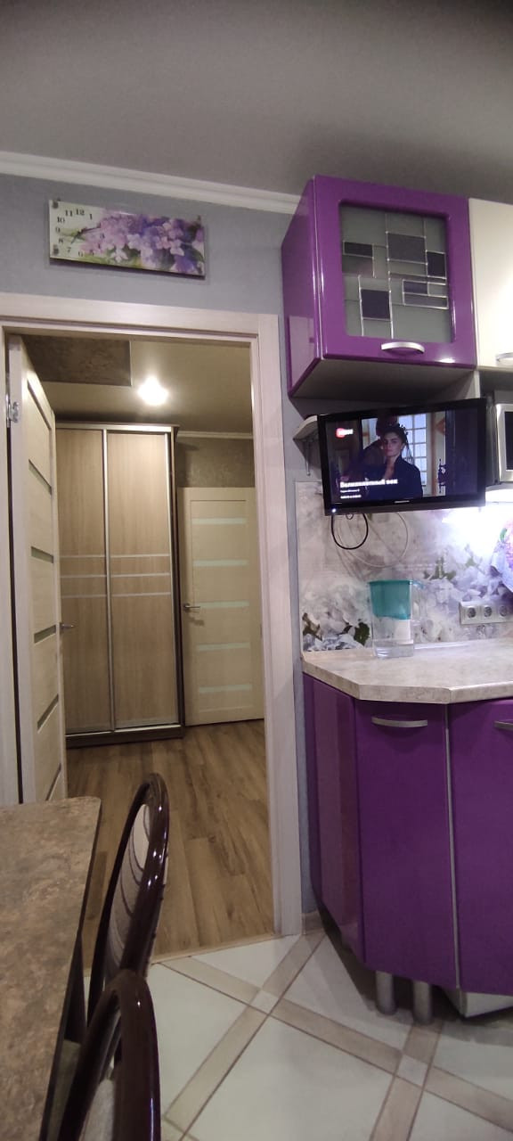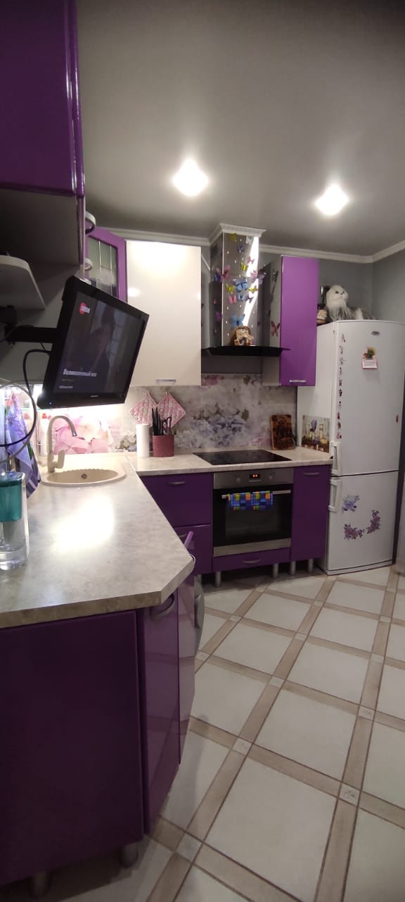 Просторная  кухня  и  современный  кухонный  гарнитур порадуют Новую  Хозяйку! В прихожей  Вам  оставят  два  шкафа-купе. Лоджия  застеклена  и  обшита,  окна ориентированы  на  юго-запад.