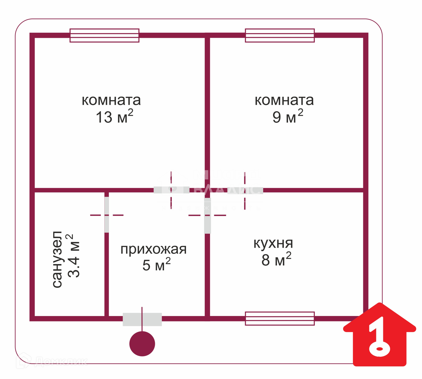 Общая площадь 32.7 м2