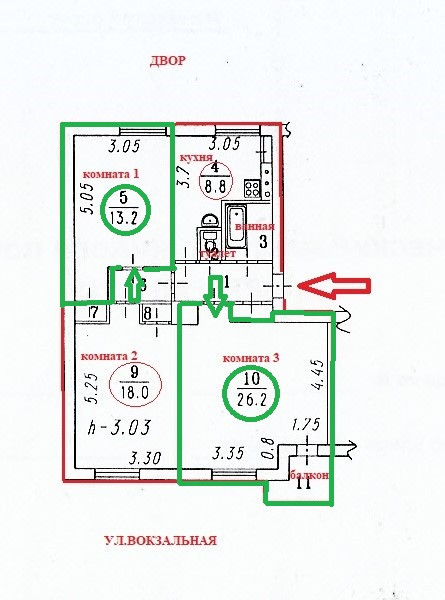 На "Чистой продаже" в Привокзальном р-не полнометражная 3-х комнатная квартира с балконом, высокими потолками и окнами.