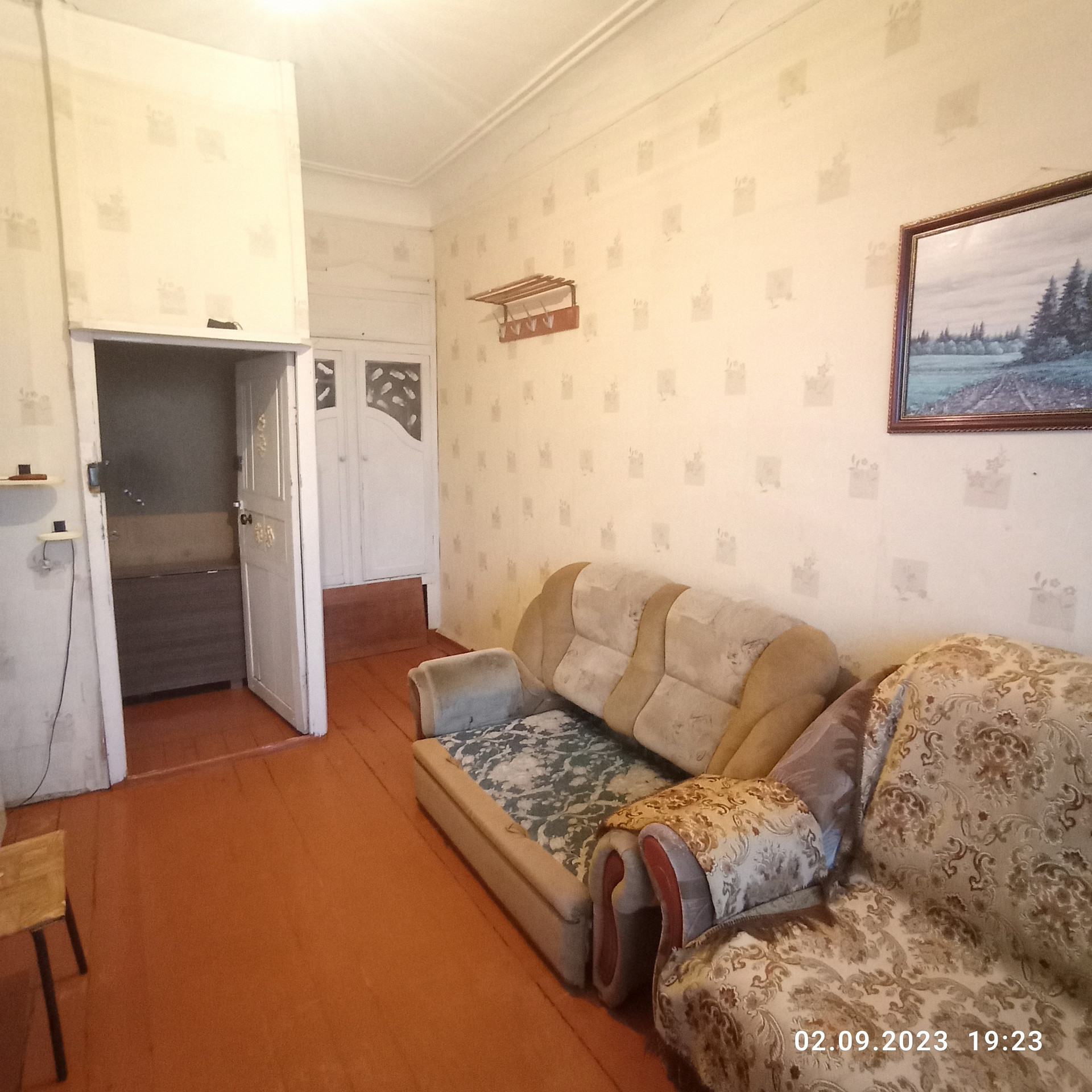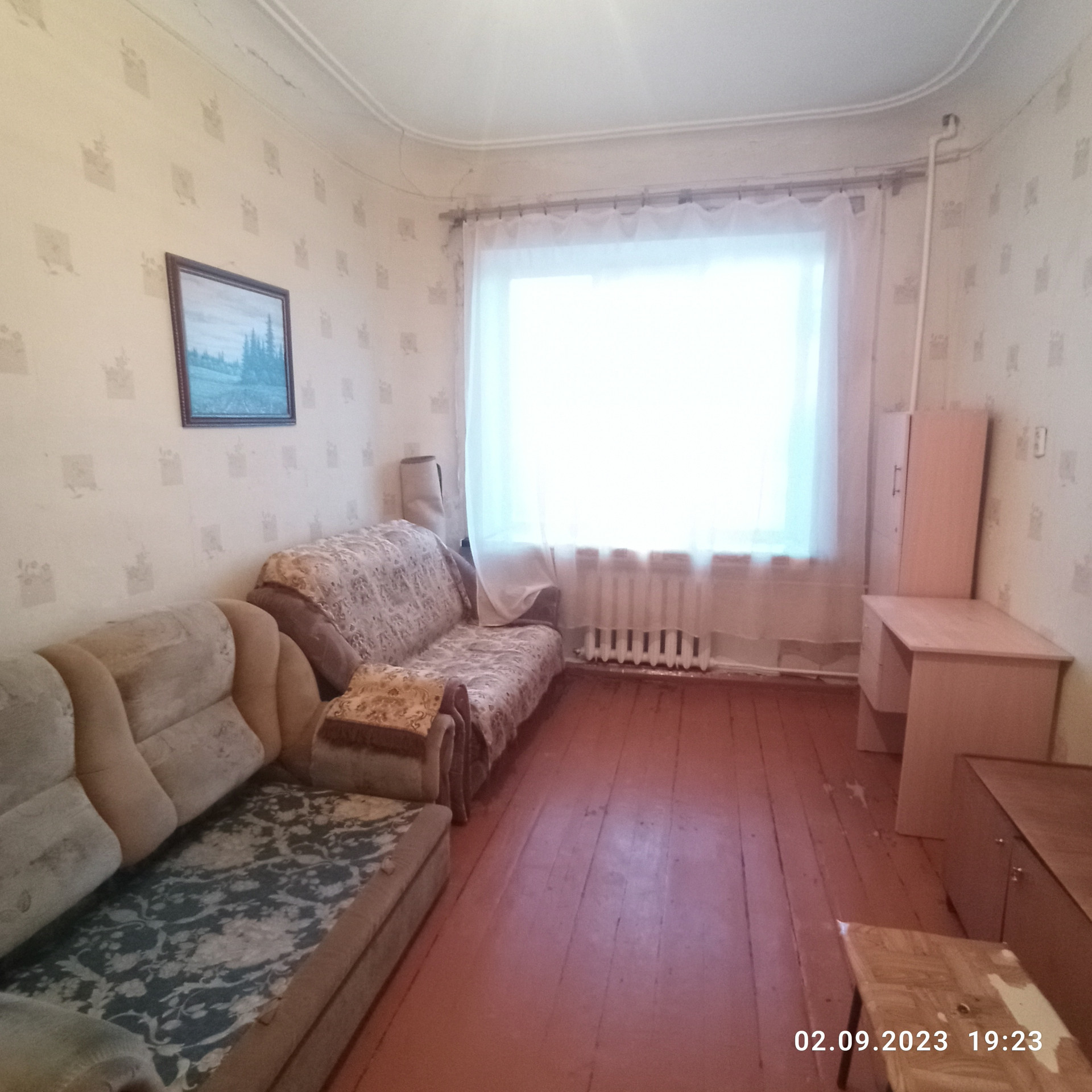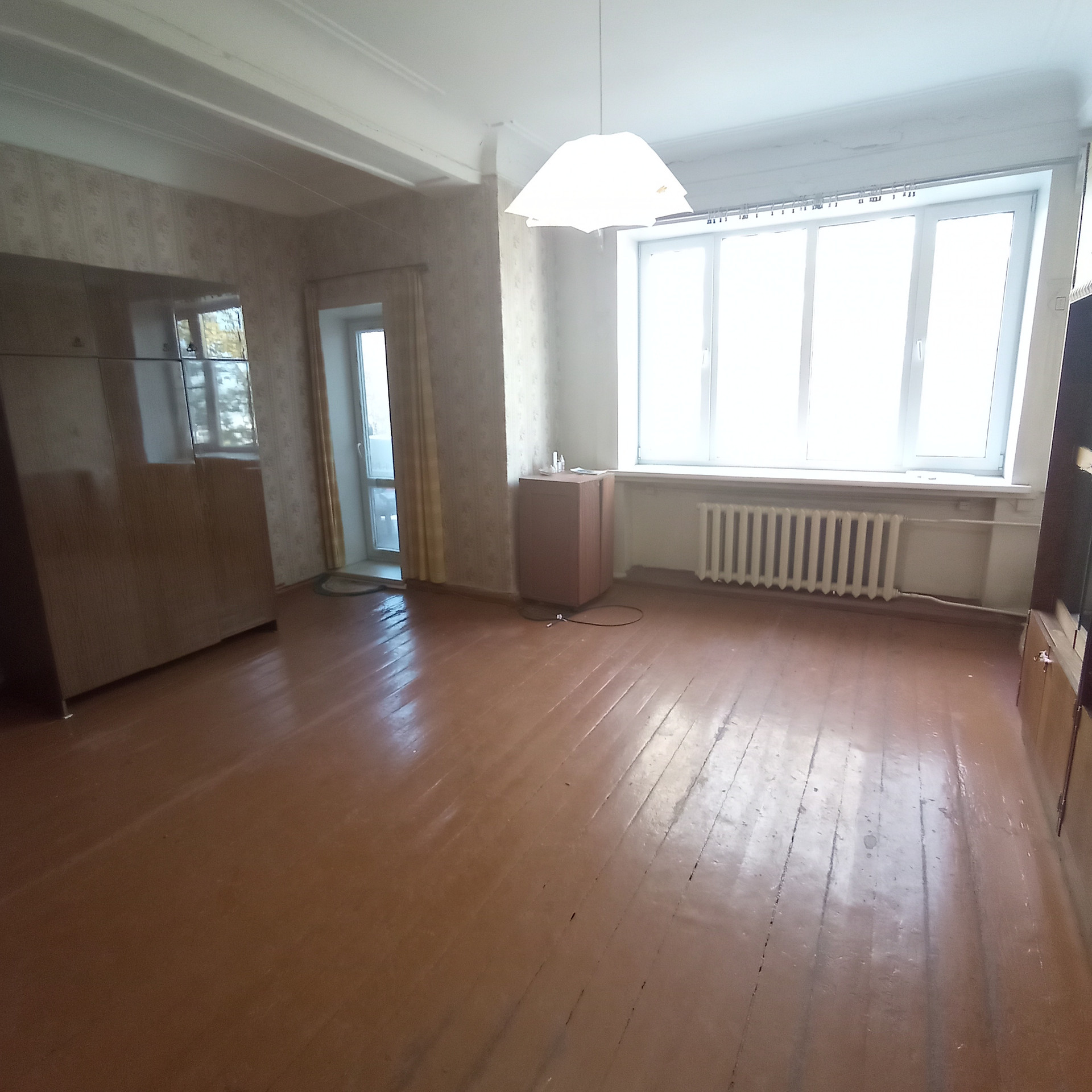 Состояние жилое. Частично окна ПВХ, дверь на балкон ПВХ. На полу половая доска. Потолки окрашены.