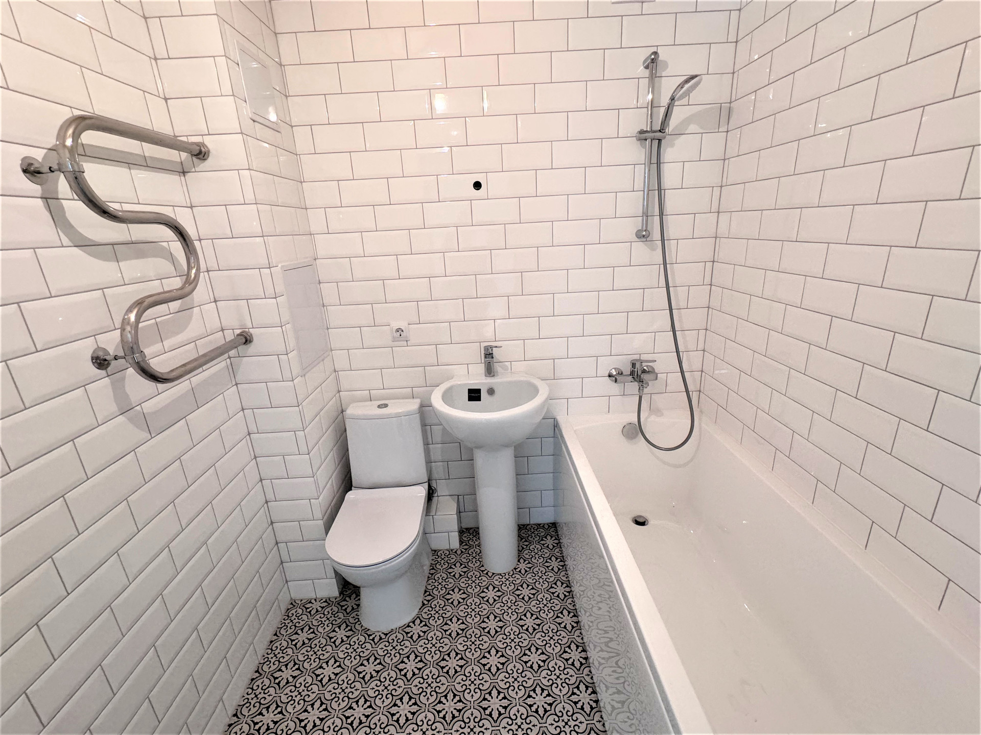 Санузел совмещённый, что экономит пространство и делает его более функциональным.