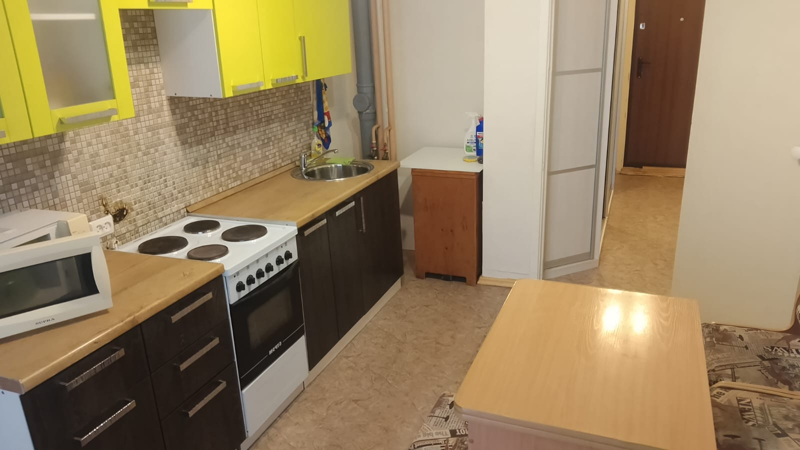 Продается очень теплая однокомнатная квартира , на высоком первом этаже ! С большим застеленным балконом. кухонный гарнитур и большой встроенный шкаф остаются. В обременении банка. Показ в удобное время